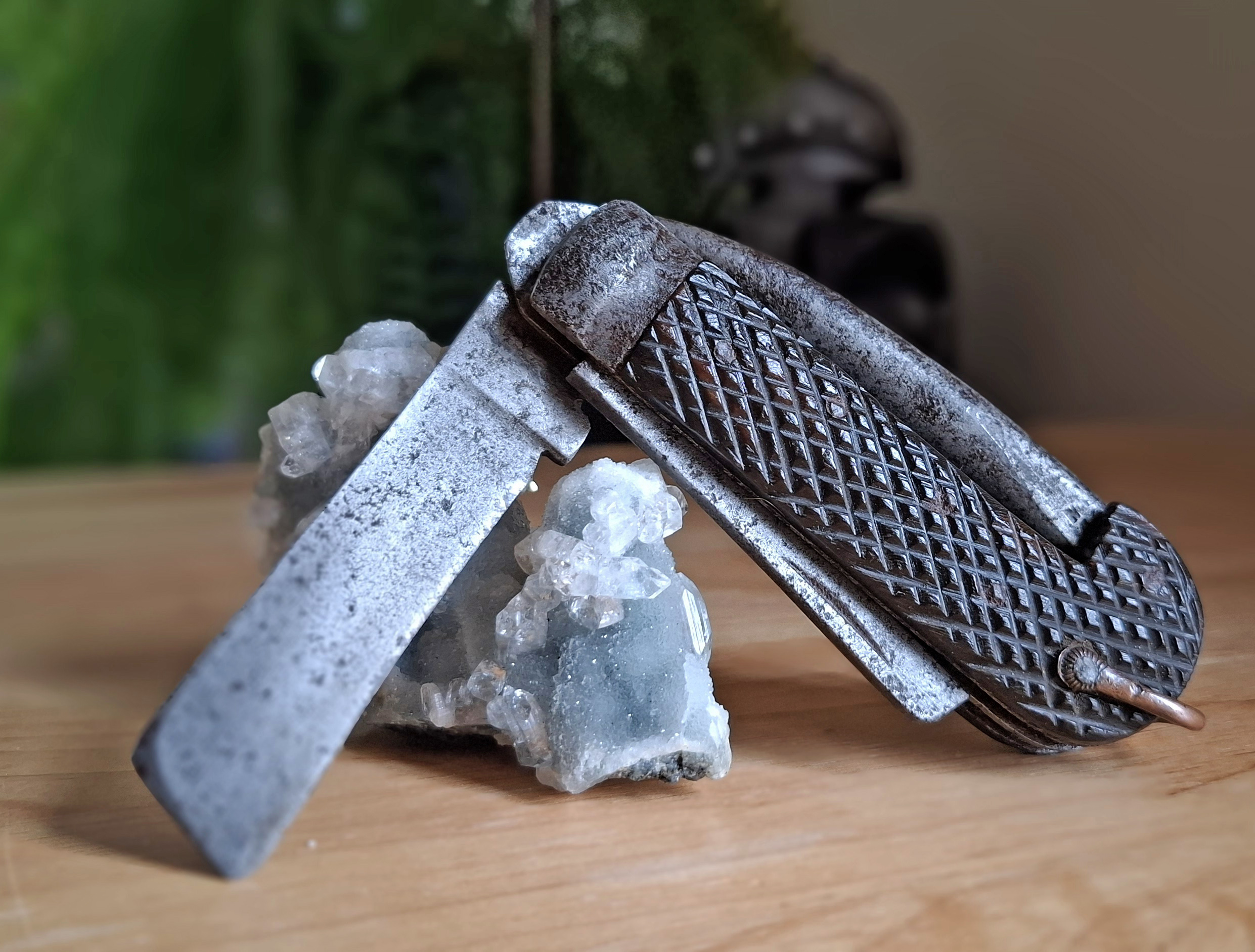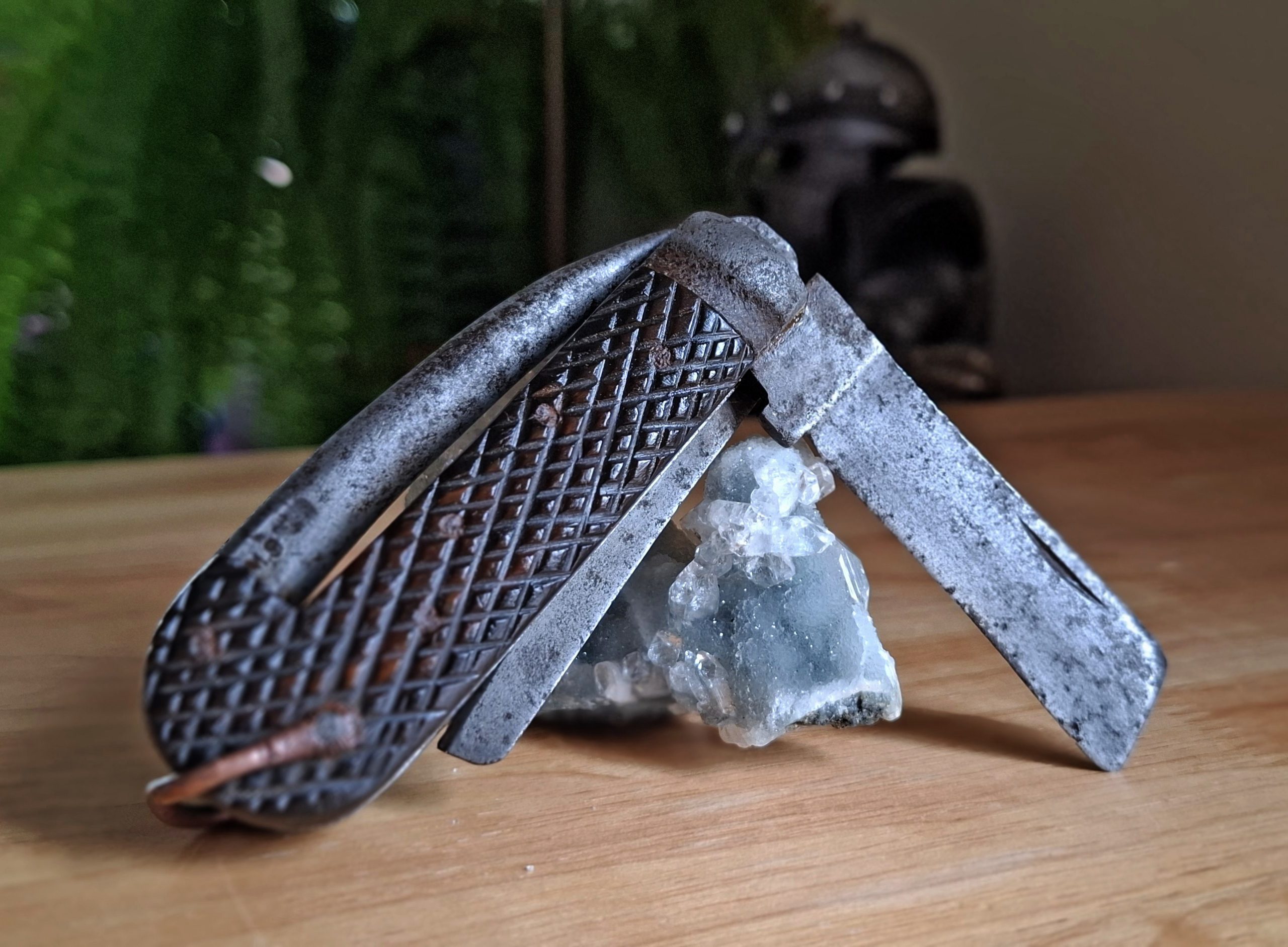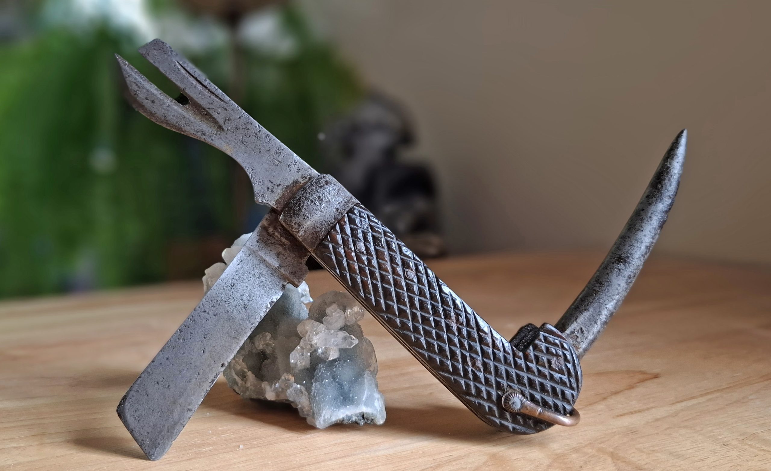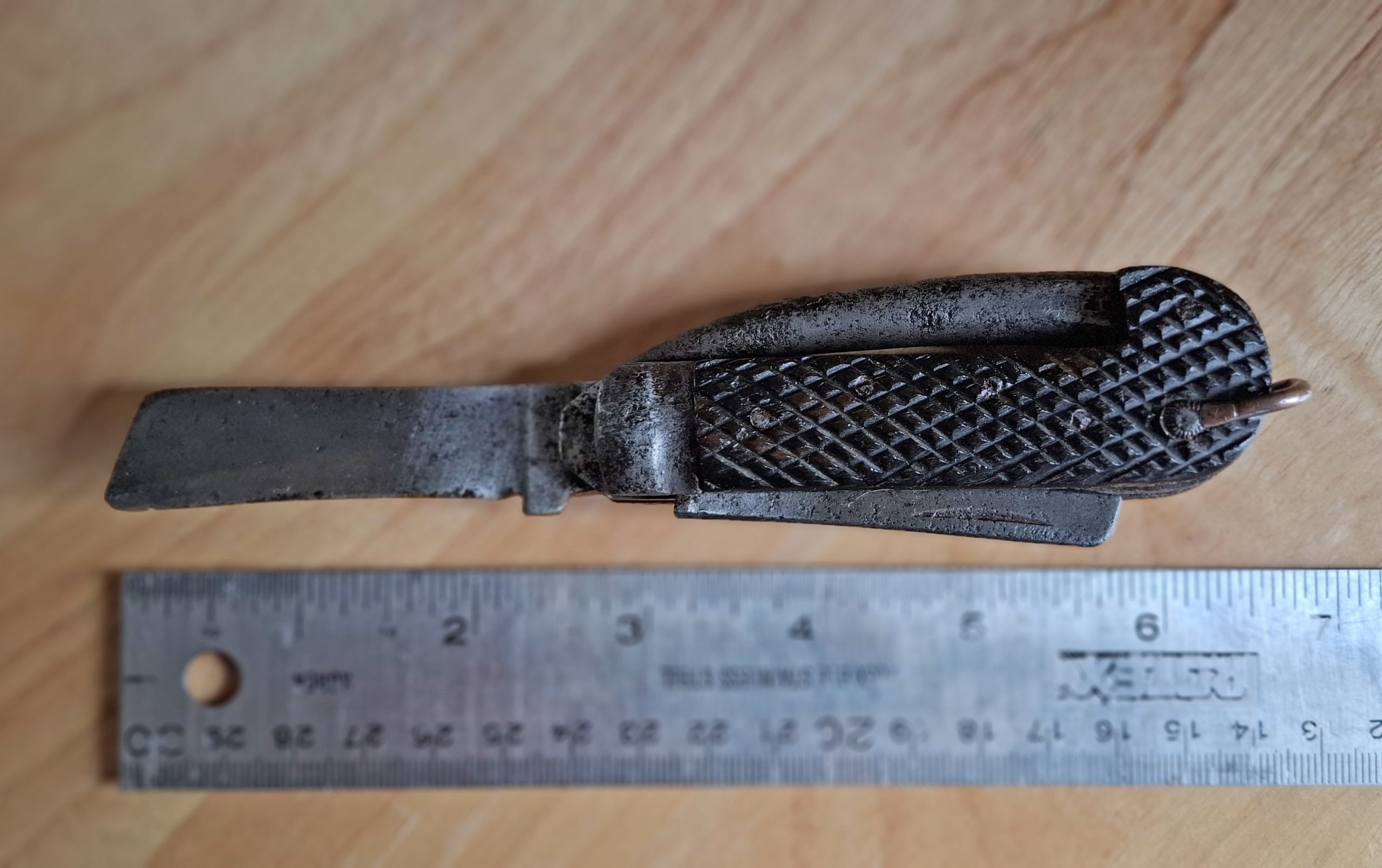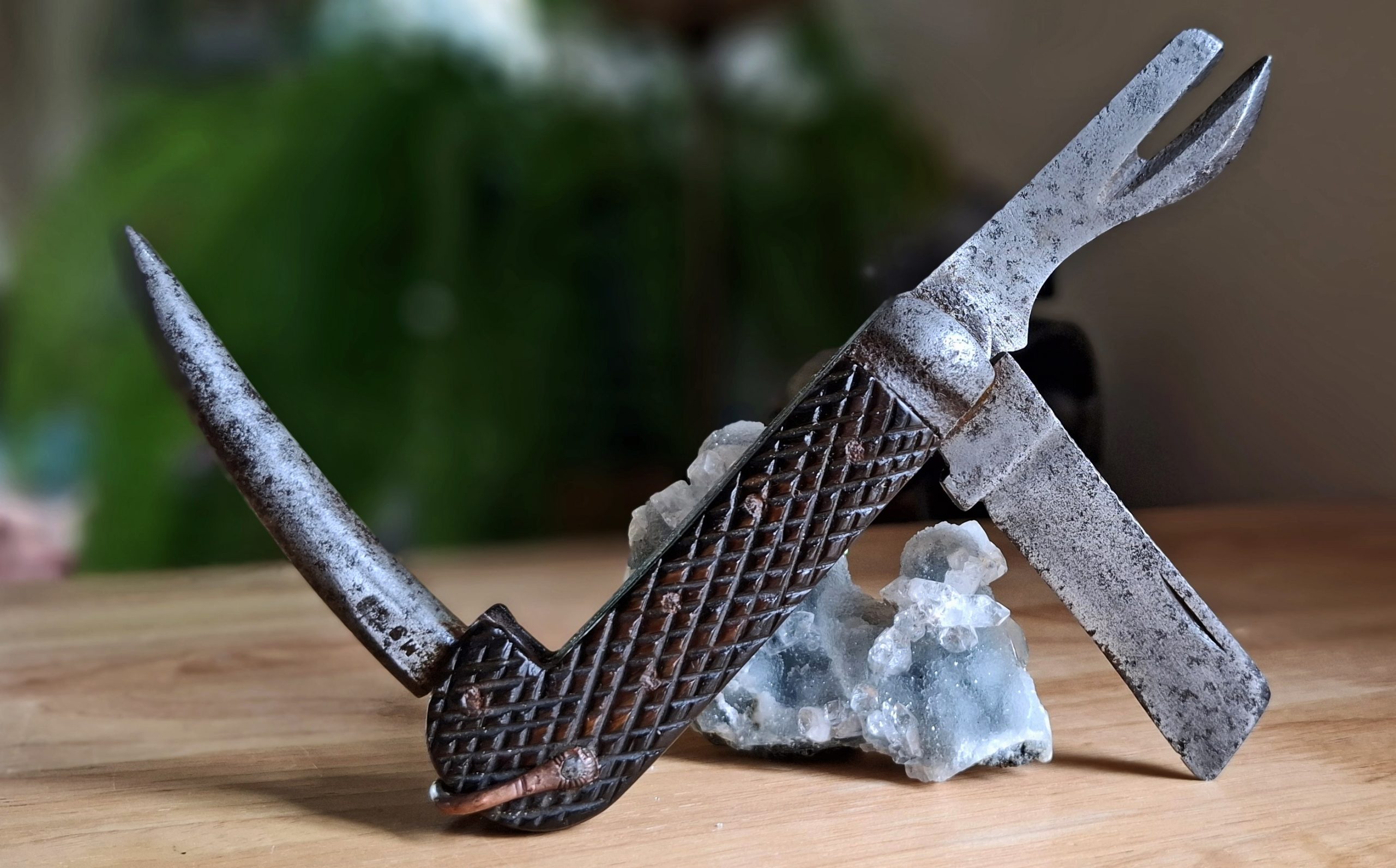 Clasp Knife with Merlin spike, tin opener and screwdriver tip.