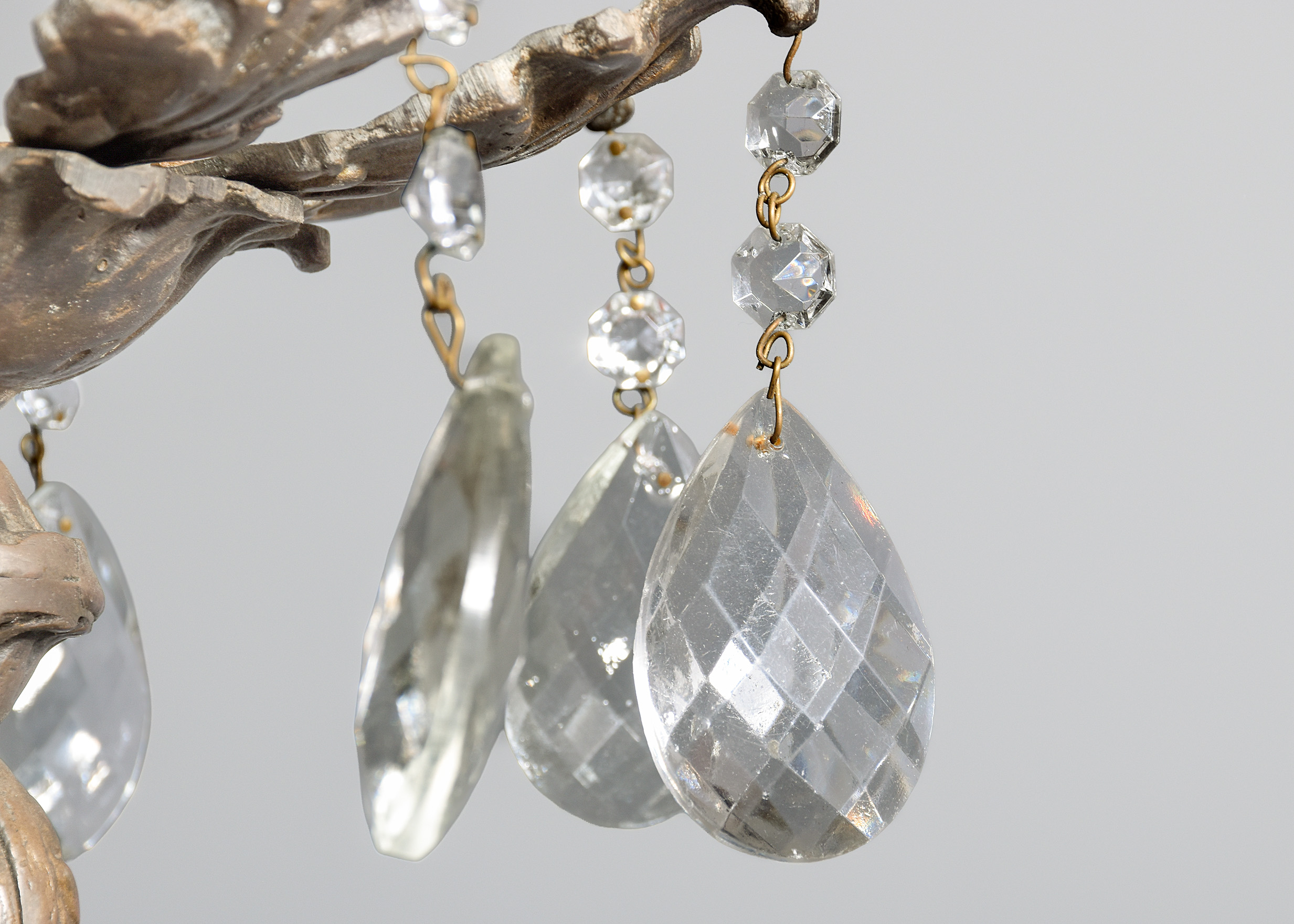 Recently cleaned are rewired, ready to be hung.
