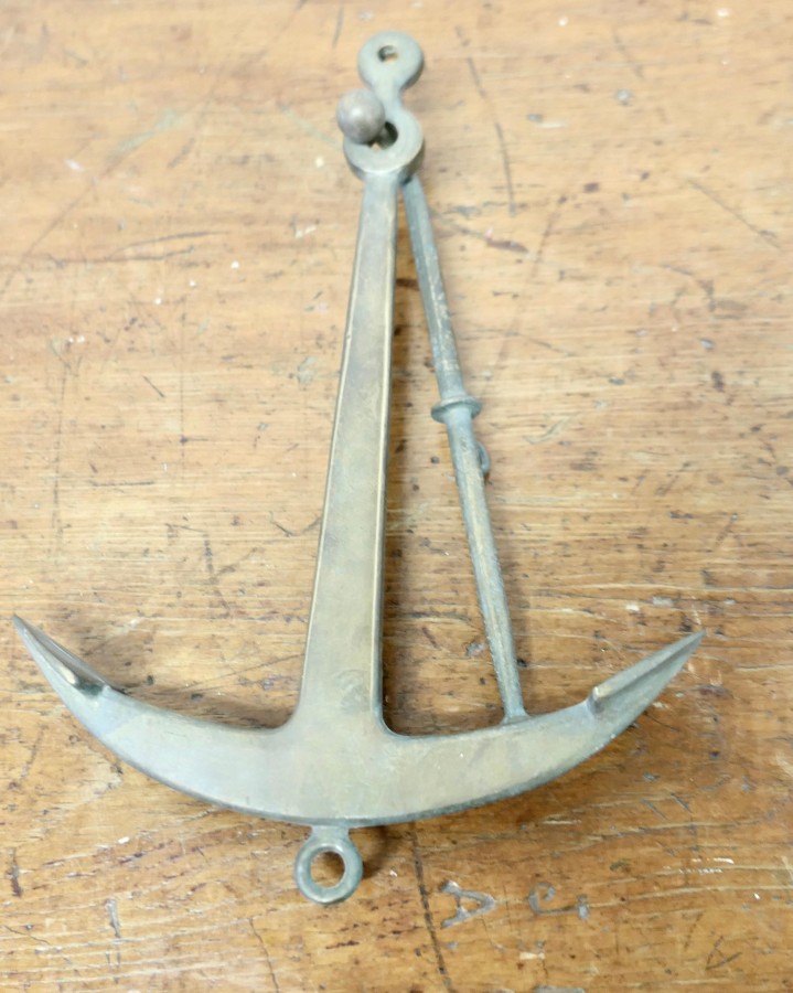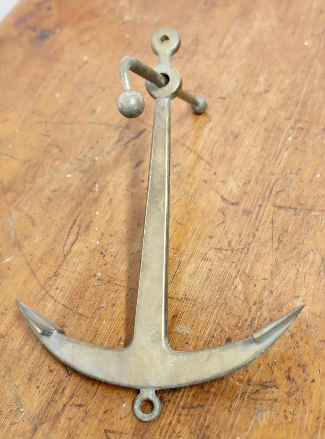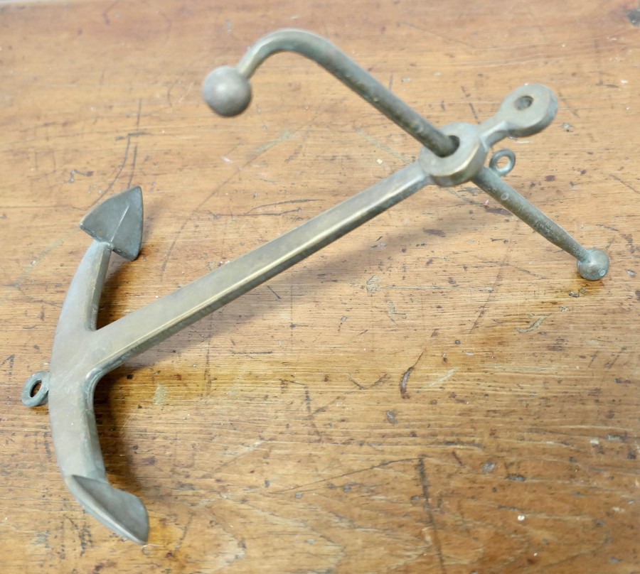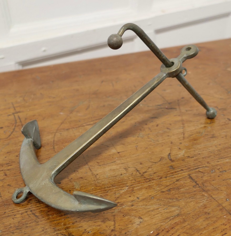Bronze Yacht Anchor, Desk Ornament This is a lovely piece a working miniature The Yacht Anchor is fully articulated and lends itself yo making a useful. Paper weight for the Yachts man who has a desk job A statement piece and a superb gift for the man who has everything else in his office The Anchor is 12” long, 9” wide and 10 deep MS268 Manufacture Date : 1900 Materials : Bronze