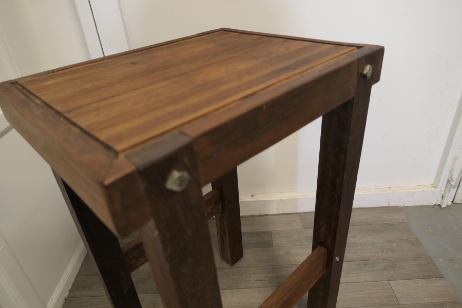 Butchers cutting block food prep table This is a useful size and sturdy piece, the heavy thick top has a liquid groove around the whole piece which is very necessary when cutting fresh fruits etc. The base is very heavy and it has large strong bolts connecting the legs and cross stretchers The block is 36” high, it is is 24” long and 19” deep JK245. Manufacture Date : 1960 Materials : Maple