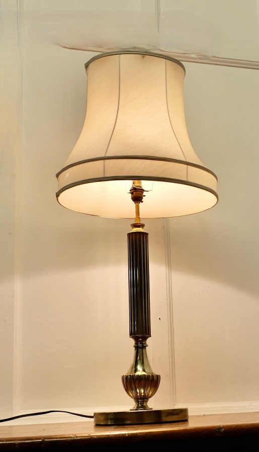 Central Brass Column Table Lamp This is an attractive lamp it has a single fluted column and is set on a round brass base The lamp is in good condition, working and with a bright patina, the shade can be included if requested. The lamp is 23” tall and 9” in diameter TSW316 Manufacture Date : 1960 Materials : Brass