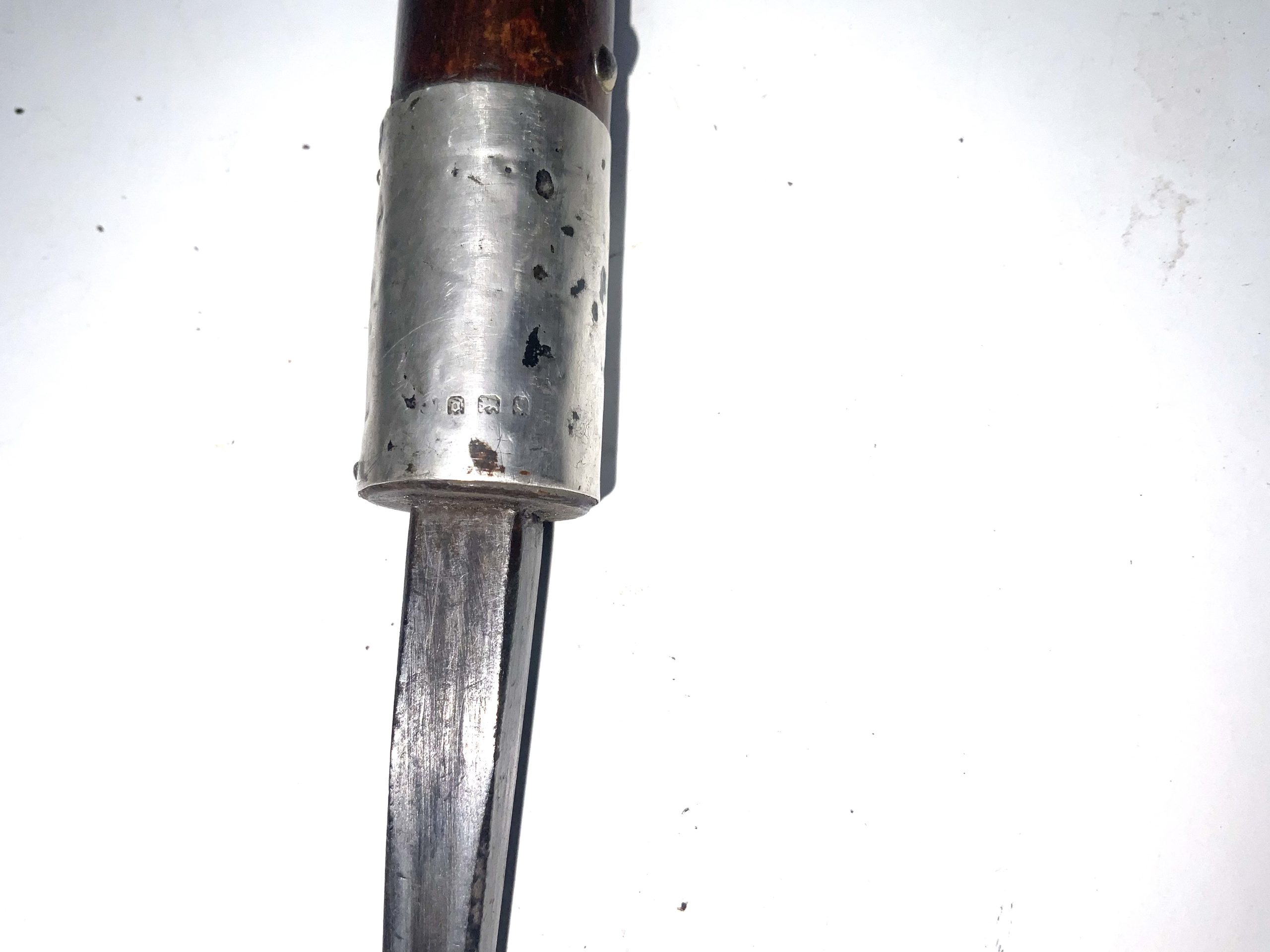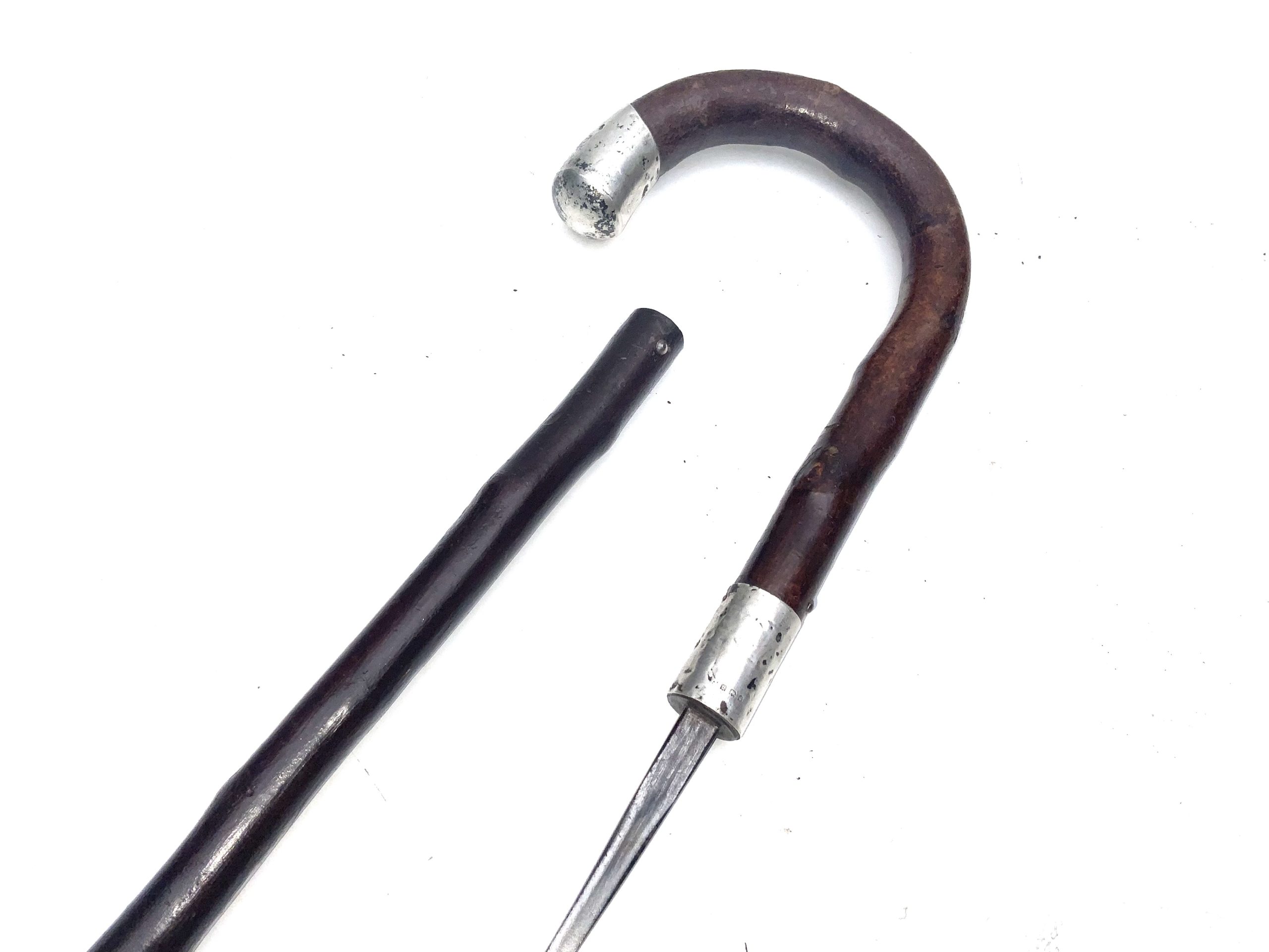Silver mounts London 1919 the Cherrywood sticks in nice condition total length being 89 cm across crook handles 12 cm sticks diameter from handle 2 cm tapering down to ferrule 1.5 cm from steels tip is 81 cm to top of the handle, offering free Worldwide delivery reference AF1. Tel: +44 7505 165 843 We accept online payments for all our items listed: Bank transfer cash on collection personal cheques or if wishing over the phone using your debit or credit cards, also doing layby payments plan, or email giving your address details & contact number and we shall send you your items invoice to make payment with your card. Send your request to – john.strong2@gmail.com