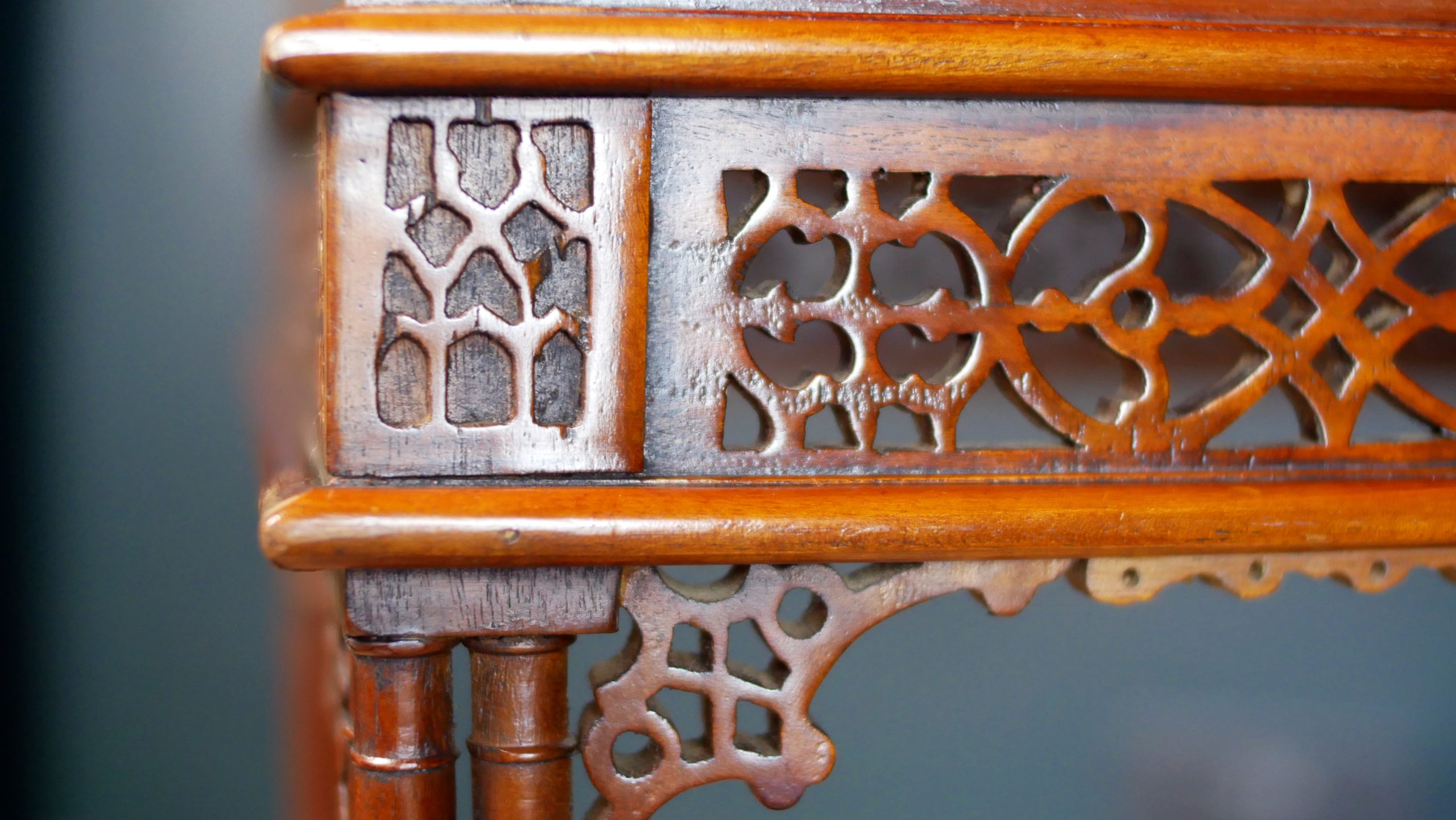 * Intricate fretwork gallery and apron