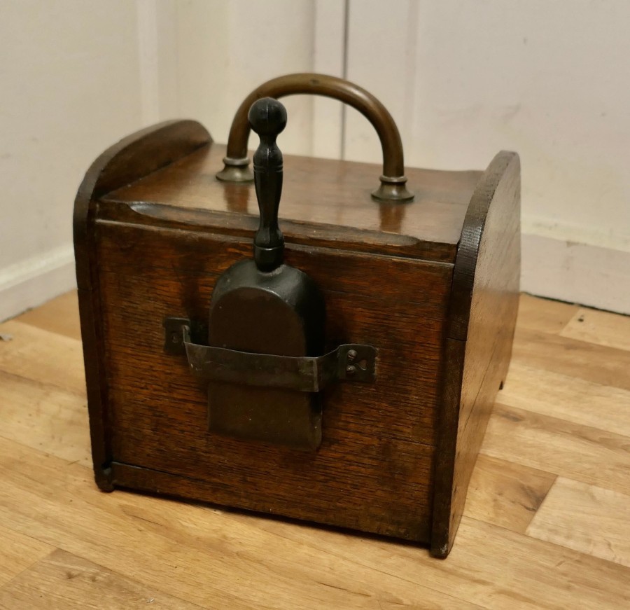 Chunky Victorian Oak Coal Box with Liner and Shovel