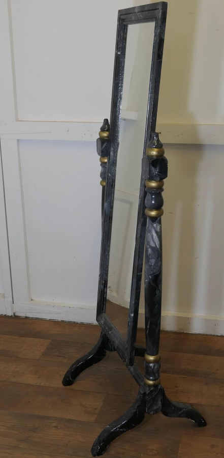 Clothing Outfitters Marble Effect Cheval Mirror This is a very stylish dressing mirror, the mirror can be tilted to all angles giving a good view to the user and as it is double sided it can be flipped over for an entirely different view or used from both sides This is a good quality piece and it is in very good condition The Mirror is 64” tall, 22” wide and 19” deep at floor level TCS144 Manufacture Date : 1920 Materials : Walnut