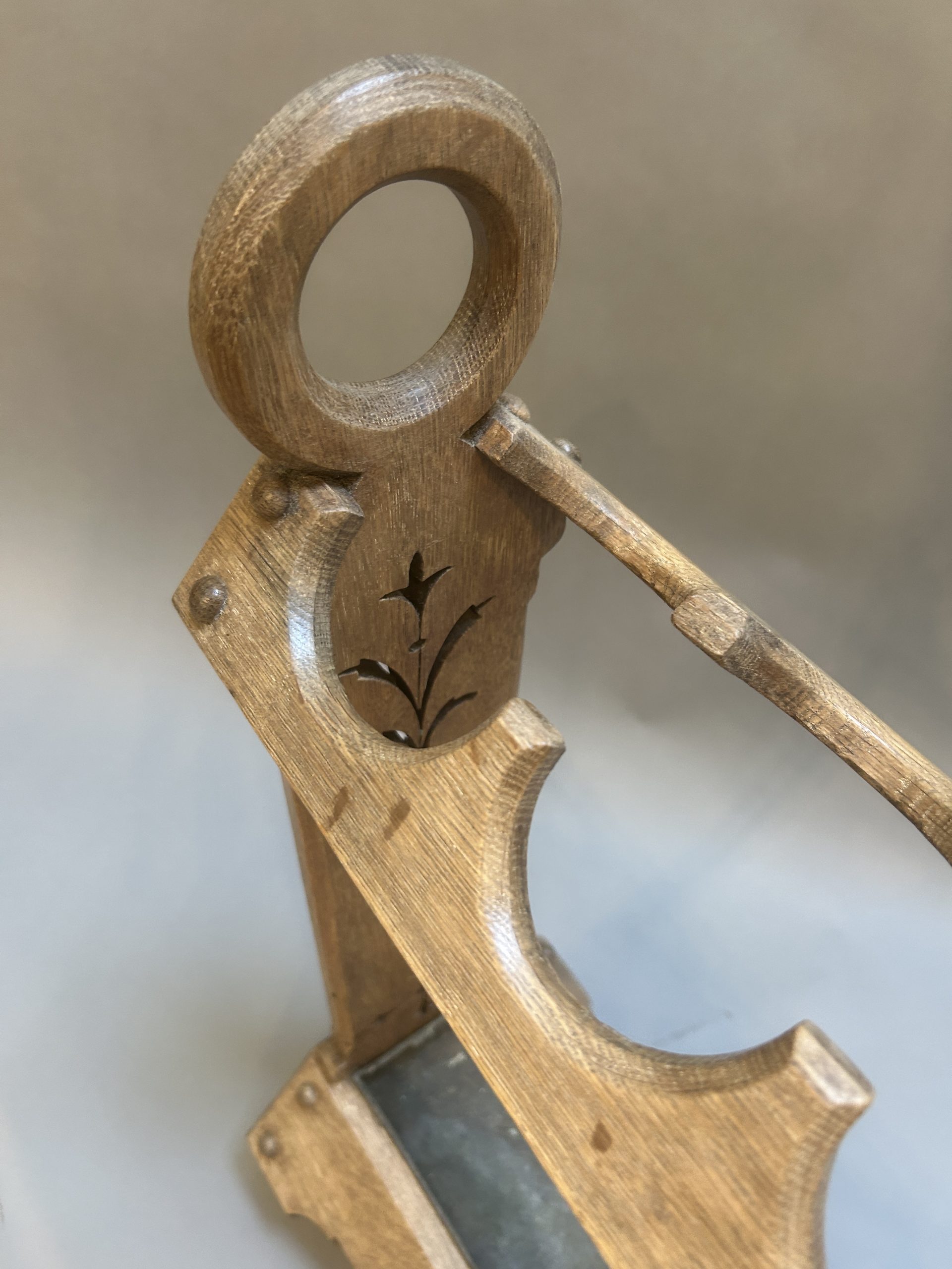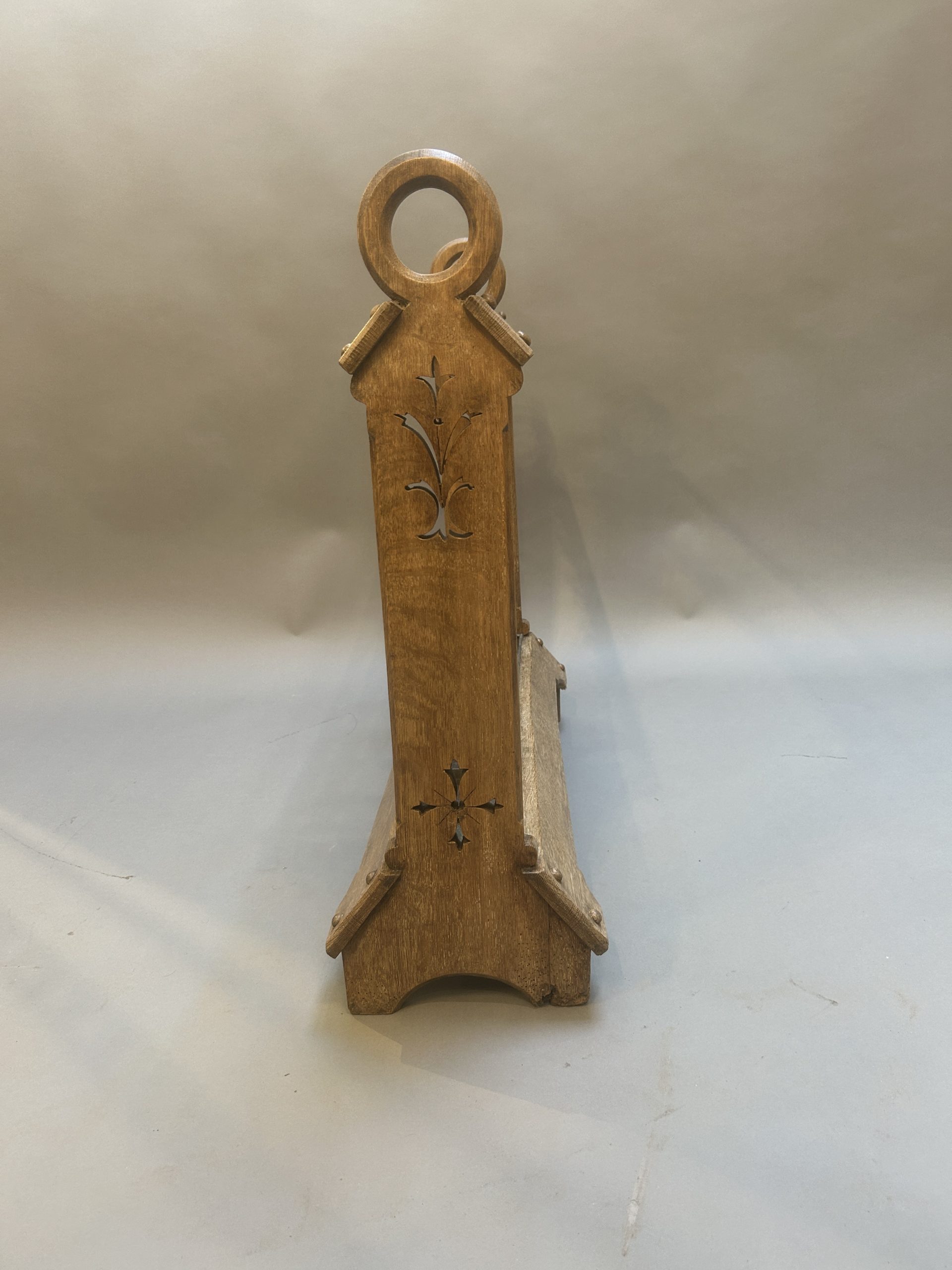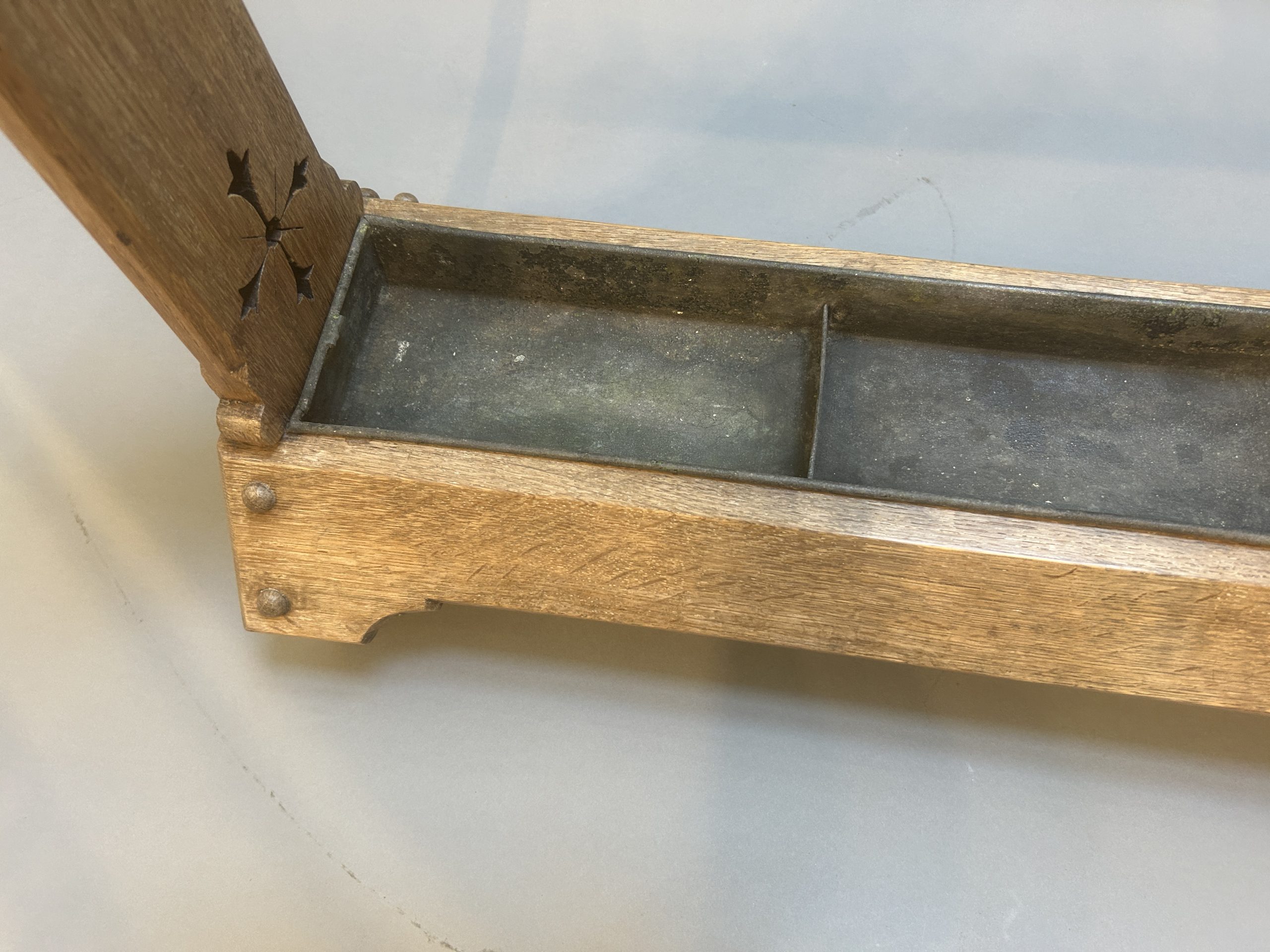 Victorian oak with scalloped stretchers on end supports with pierced detail to base fitted original drip tray.