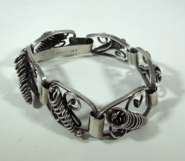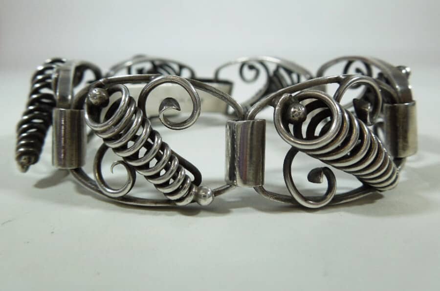 This vintage bracelet would date from around the 1920’s or 30’s. Research on this silversmith has yielded very little which is surprising considering the intricacy of his work.