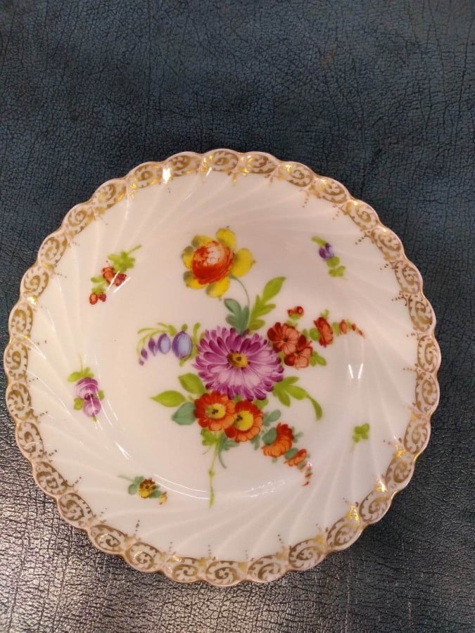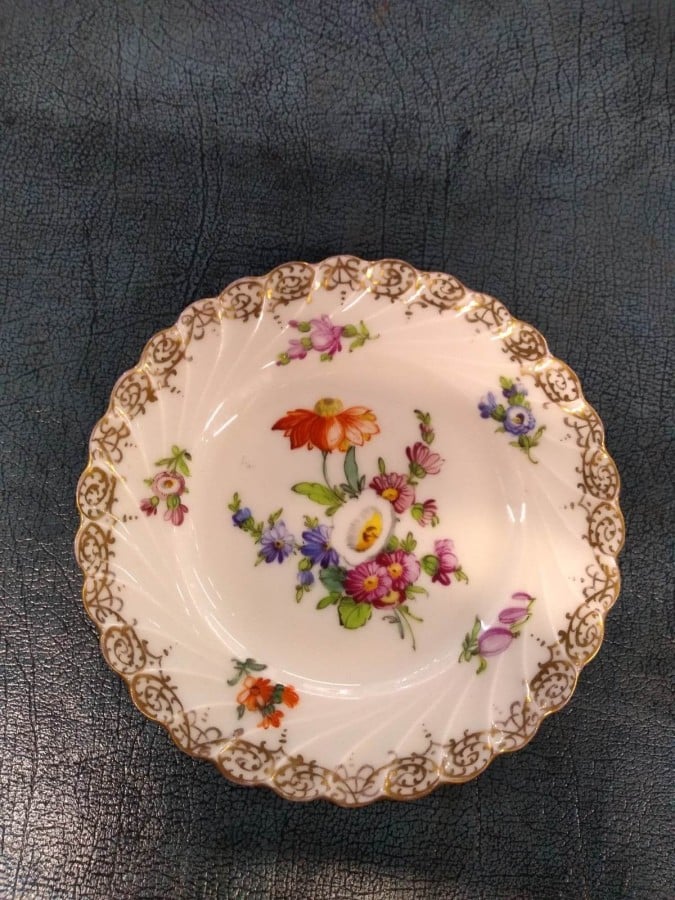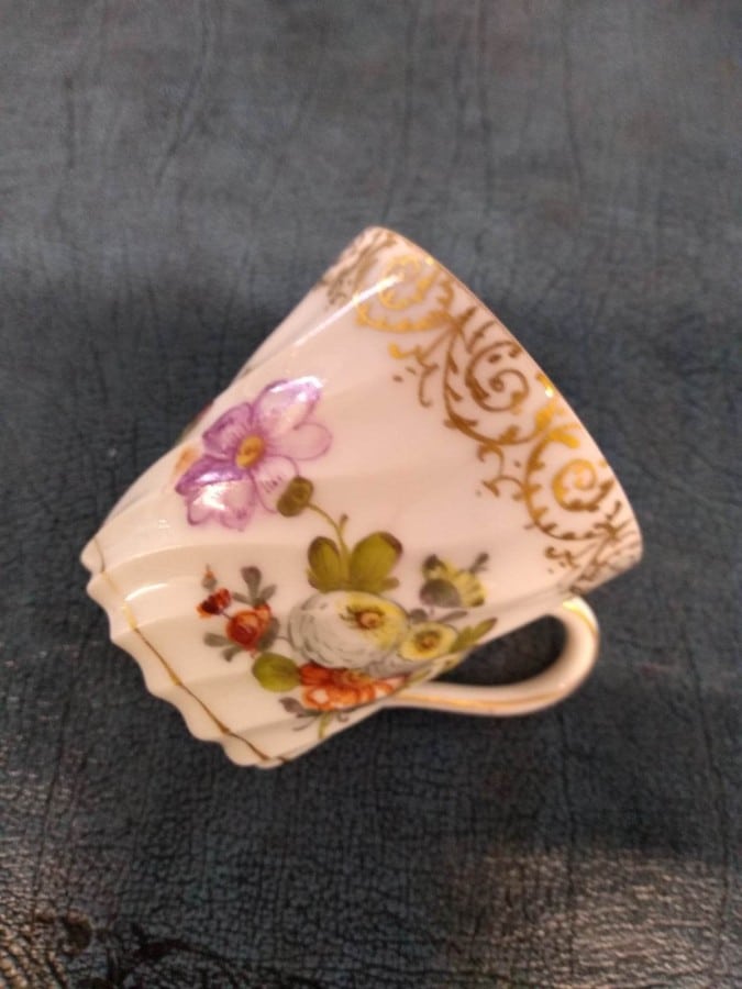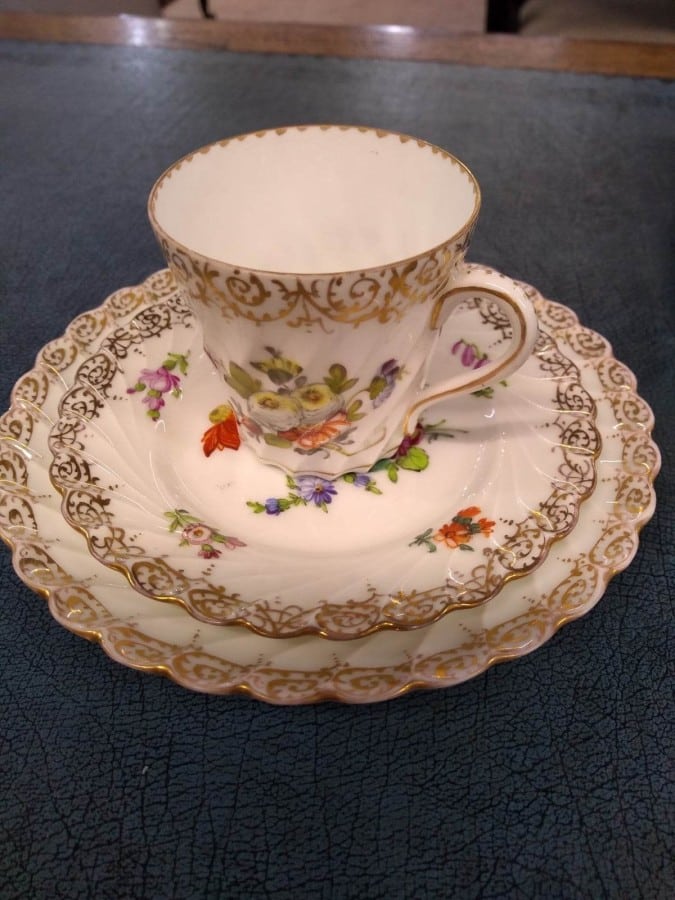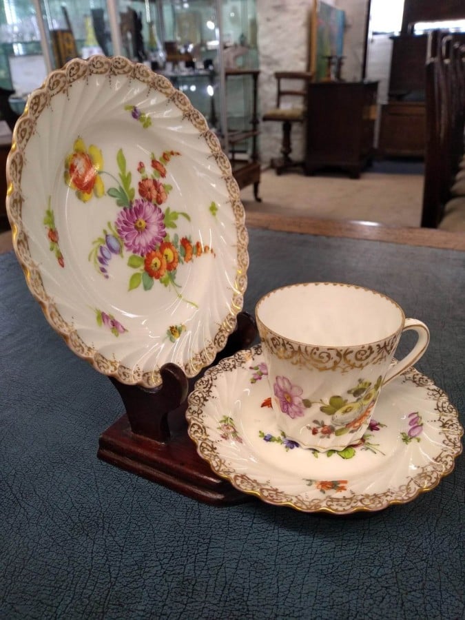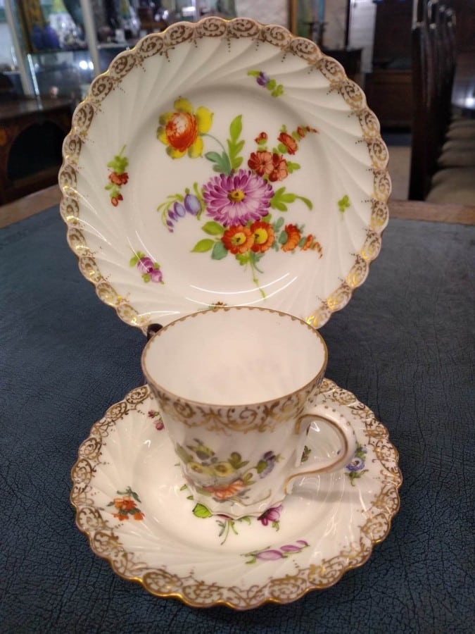 A Dresden Hammersley “Dresden Sprays” Trio.  Decorated with a floral pattern with scalloped and gilded edges.