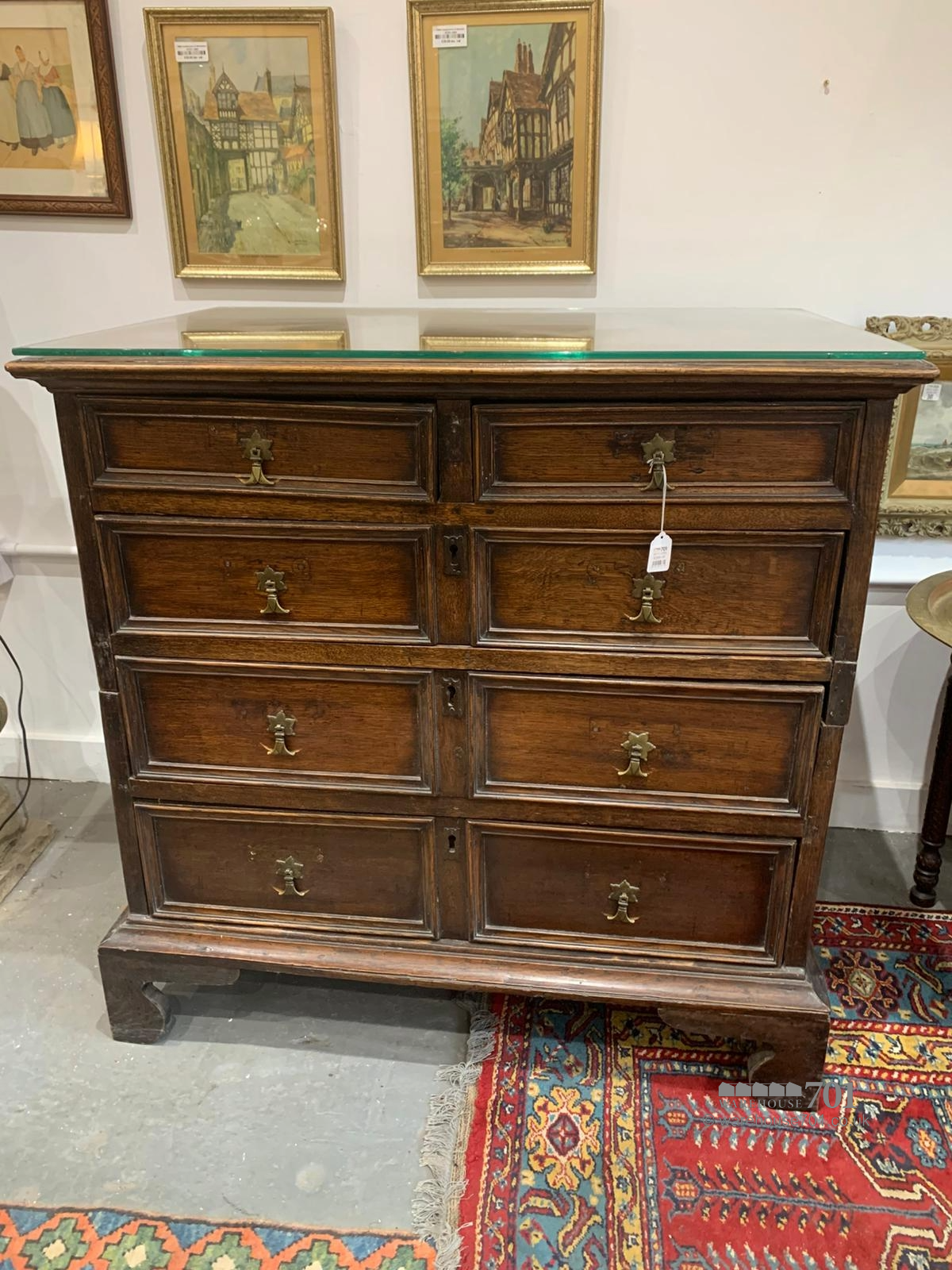 A quietly handsome example of early-19th-century British cabinetry, this oak five-drawer chest exudes restrained elegance and timeless practicality. Crafted from solid oak, the piece displays a warm, mellow patina that only decades of use can bestow — the grain mellow and rich, the surfaces bearing gentle signs of age with the kind of modest wear that speaks of long service and careful keeping. The drawer configuration (two smaller drawers above three deep, full-width drawers) offers generous storage without sacrificing proportion or subtlety — ideal for a bedroom, hallway or living room. With its sturdy build, gentlemanly proportions and the comforting weight of solid timber, the chest offers a quiet sense of permanence. It’s the sort of piece that doesn’t shout for attention — it simply belongs, and invites you to appreciate quality, function and heritage.