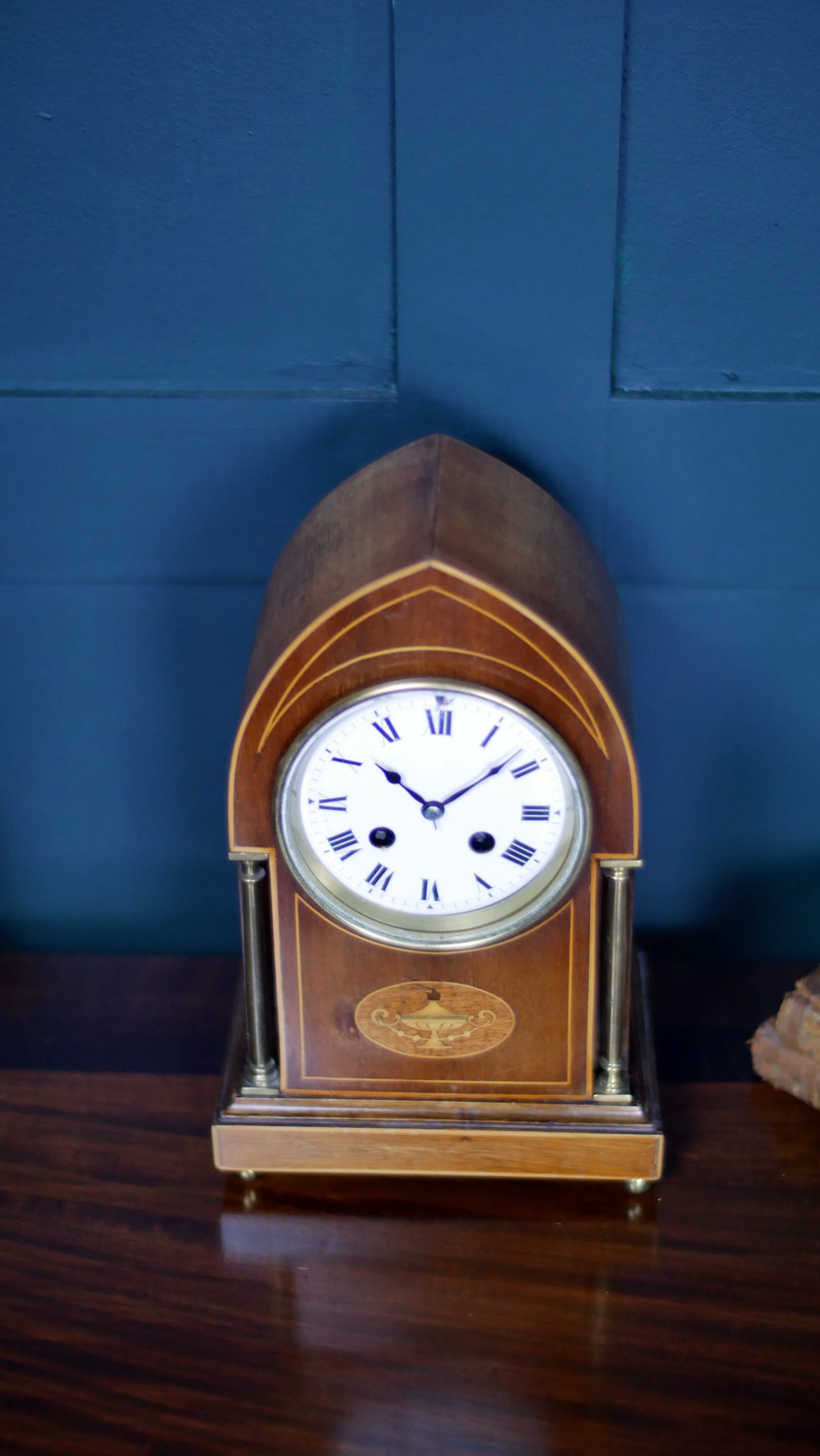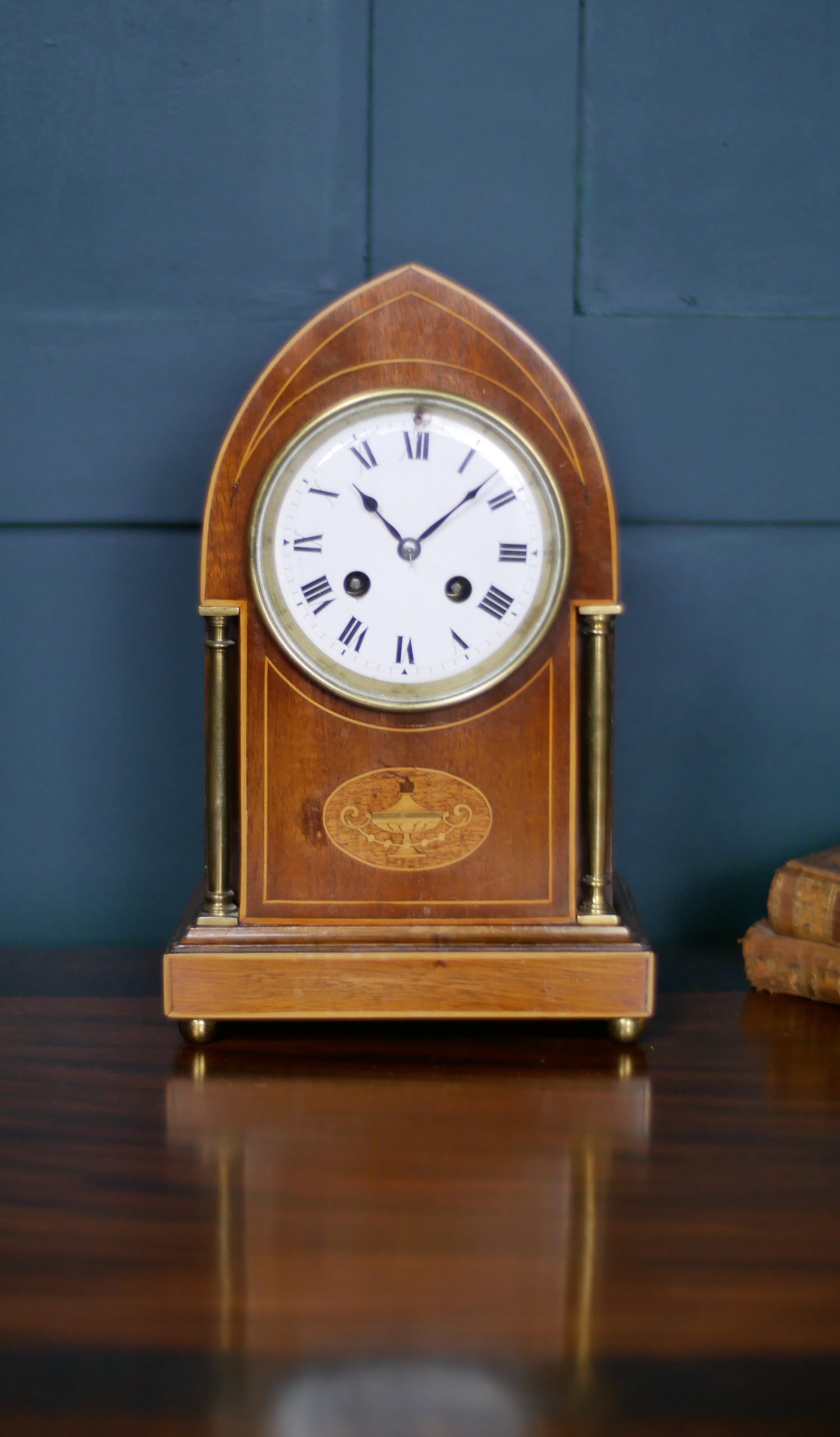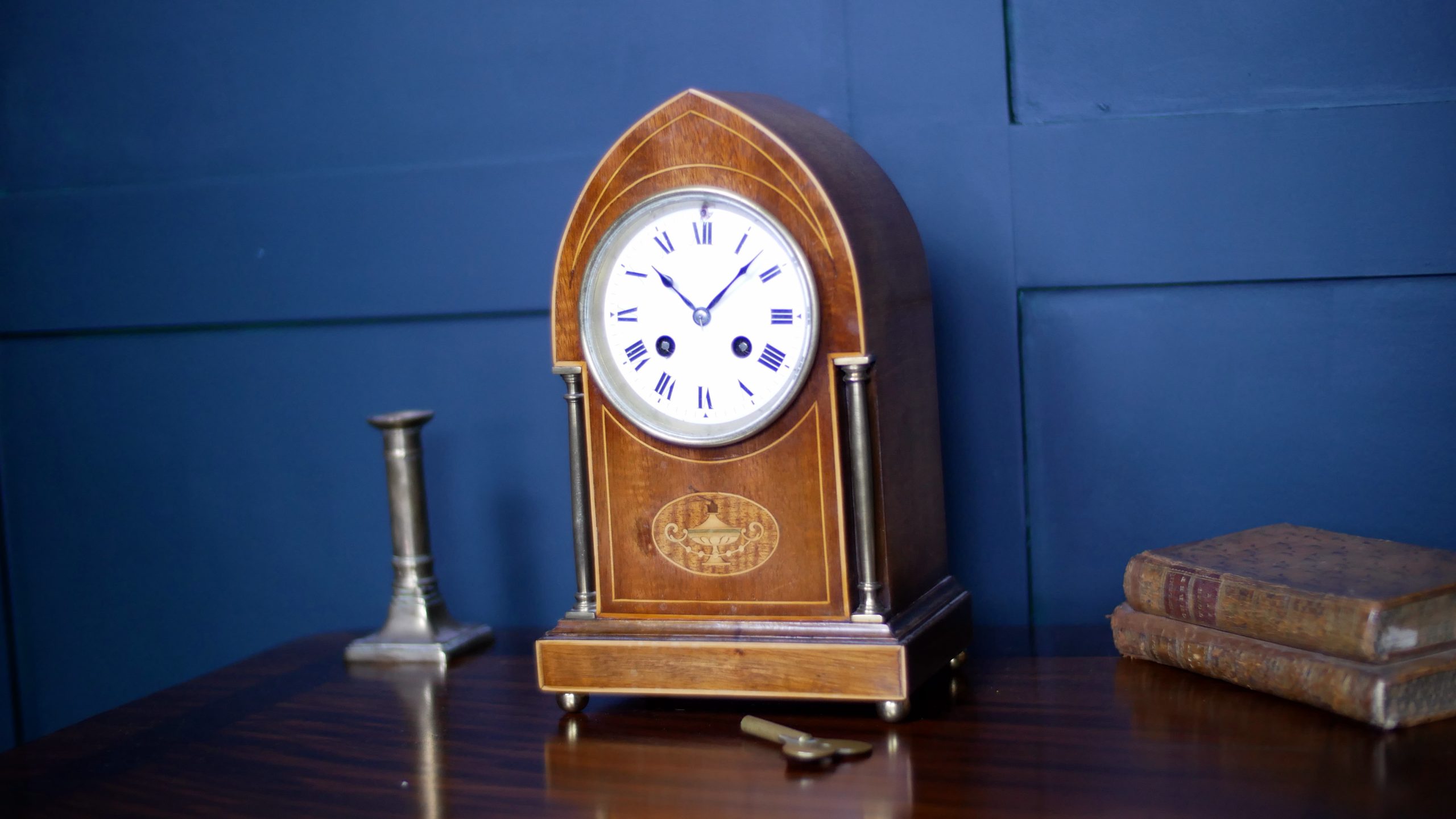 Timeless Sophistication: An Edwardian Inlaid Mahogany Mantel Clock