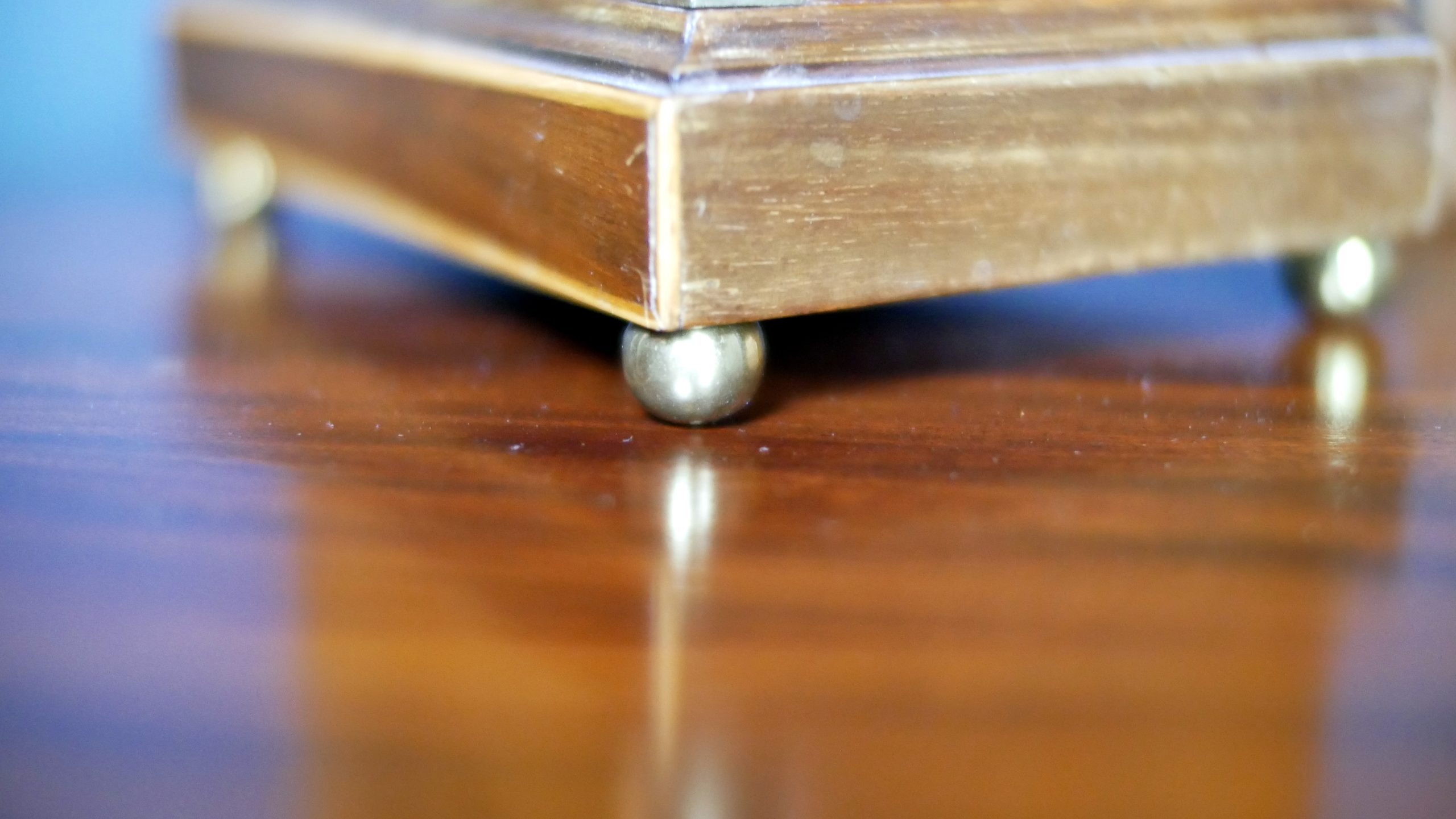 Foundation: Supported by traditional brass ball feet, lending a slight lift and a polished finish.