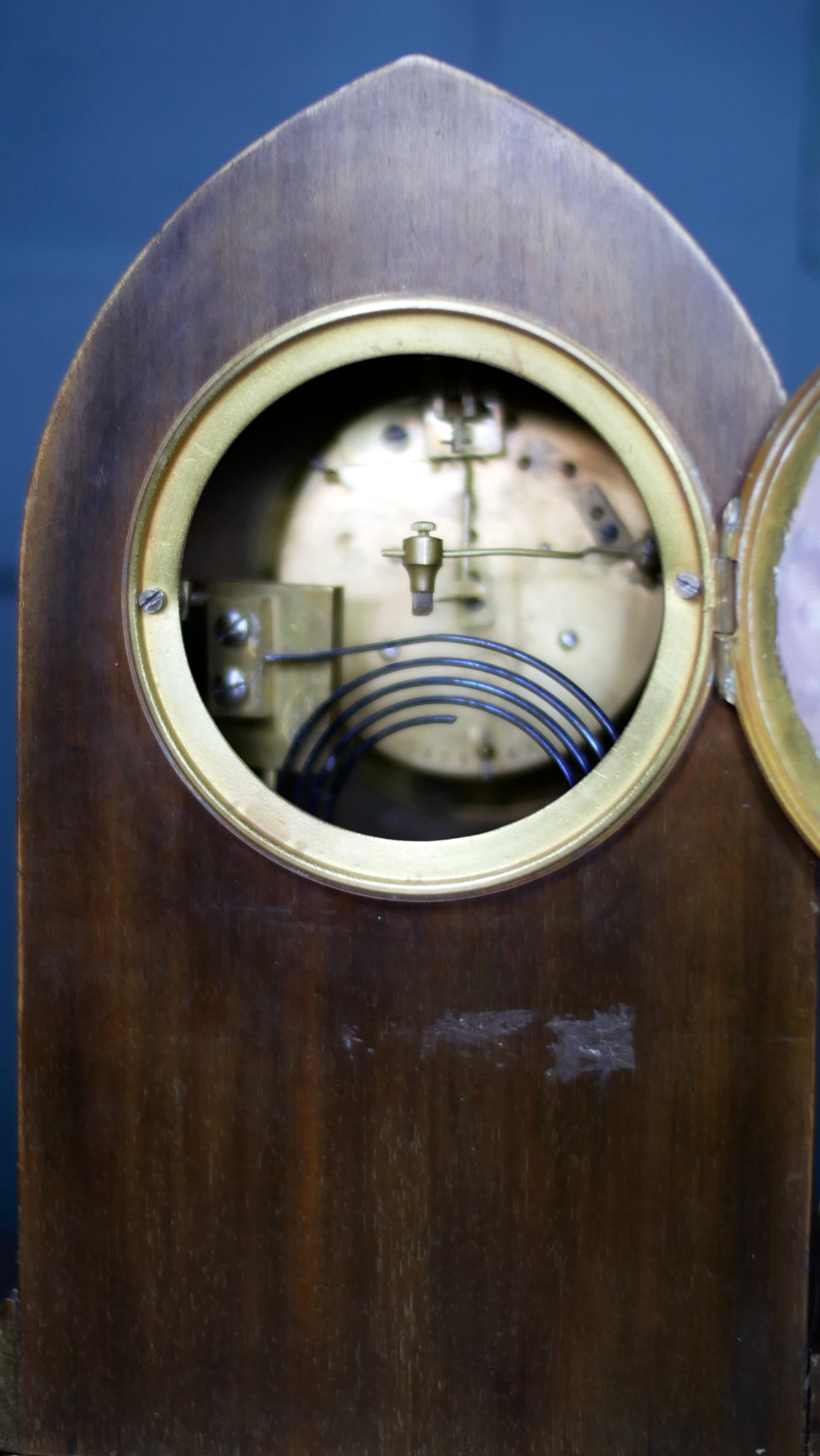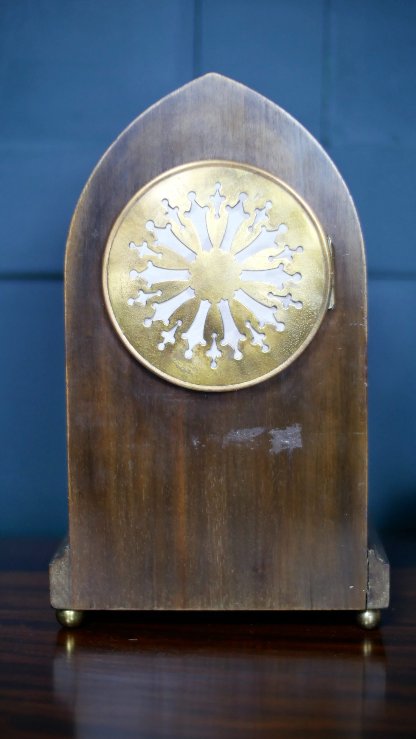 Case: Solid mahogany with architectural lancet top.