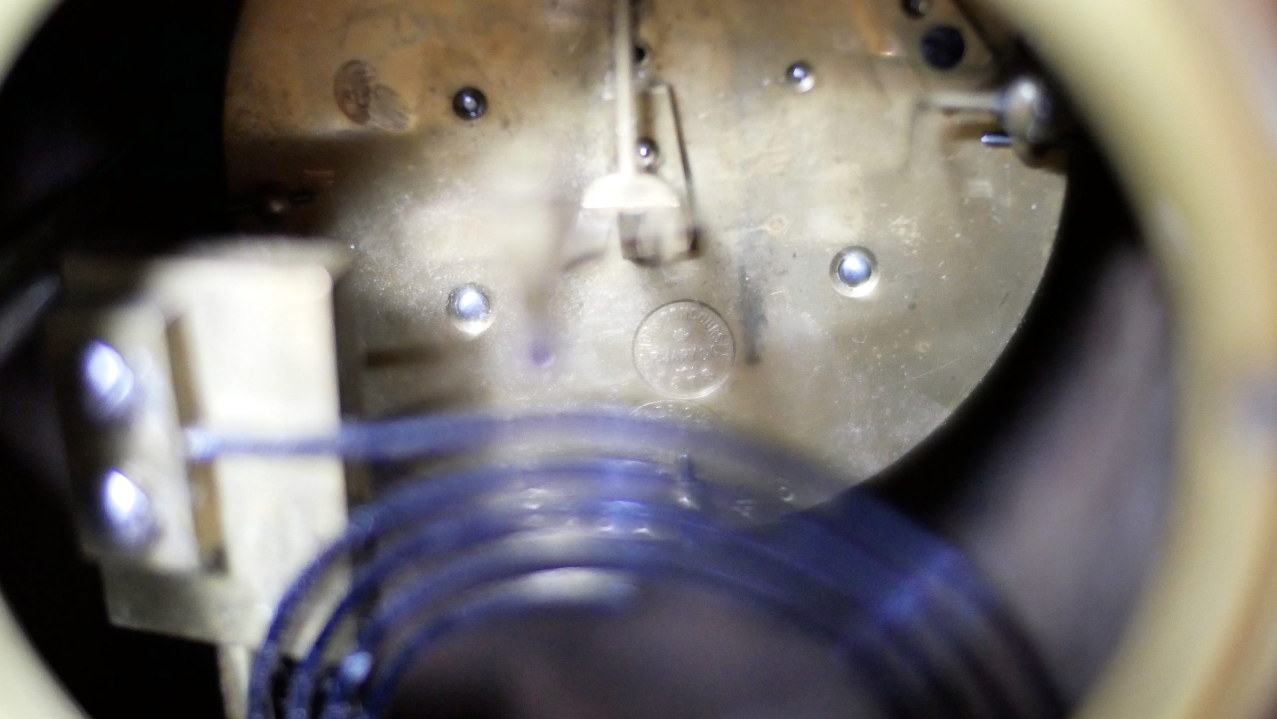 Dial: Crisp white enamel face with classic Roman numerals and elegant spade hands, protected by a polished brass-rimmed glass bezel.