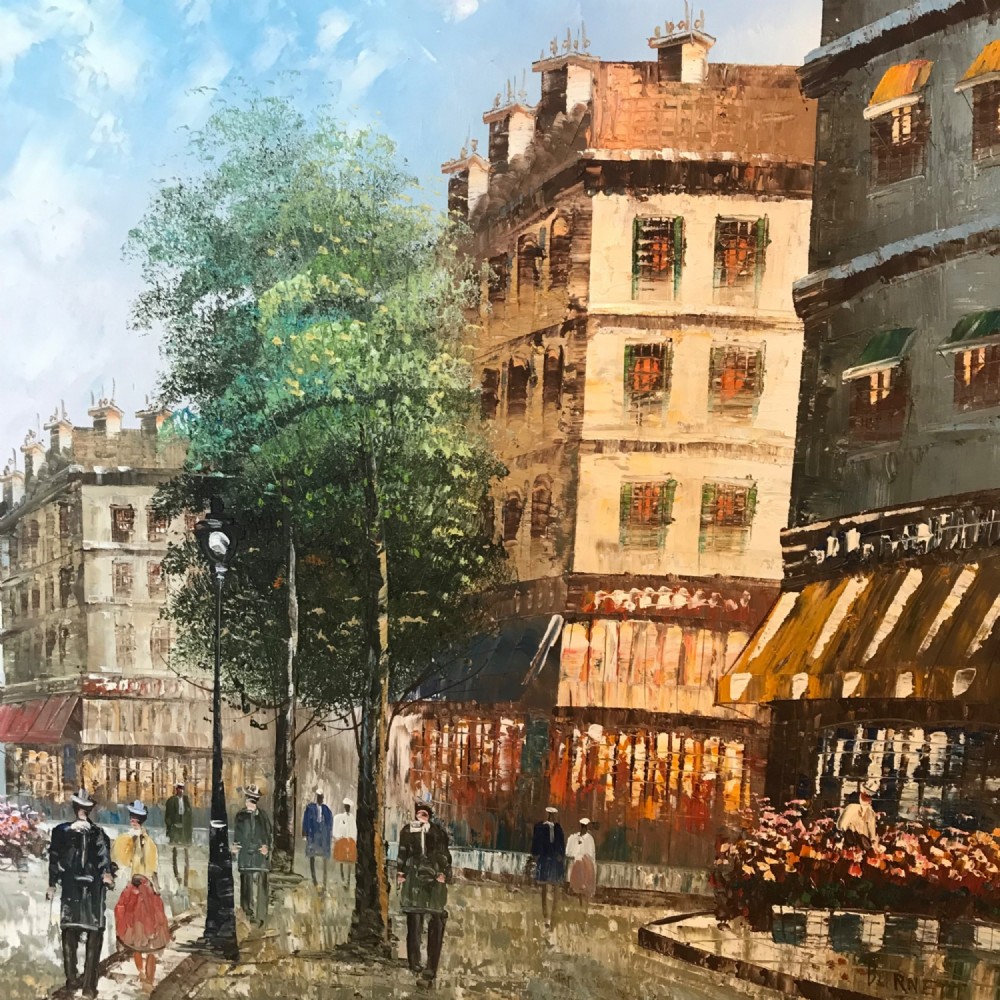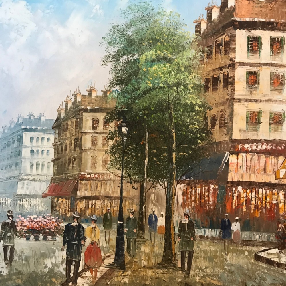 This painting perfectly depicts life in the ””City of Lights”” with its restaurants, busy streets, cafes and wonderful architecture.