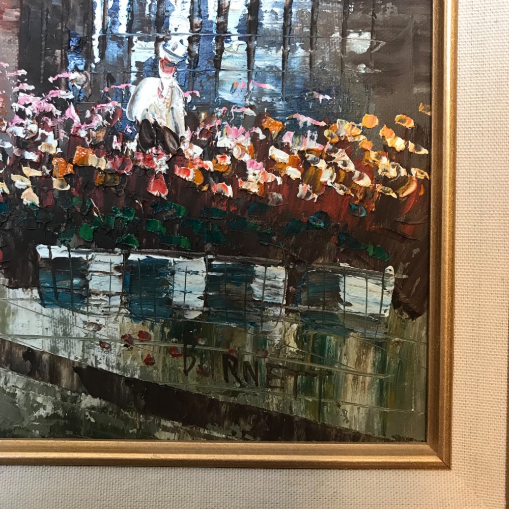 This lively piece of artwork would enhance any setting with its Post-Impressionist style. Signed Burnett.