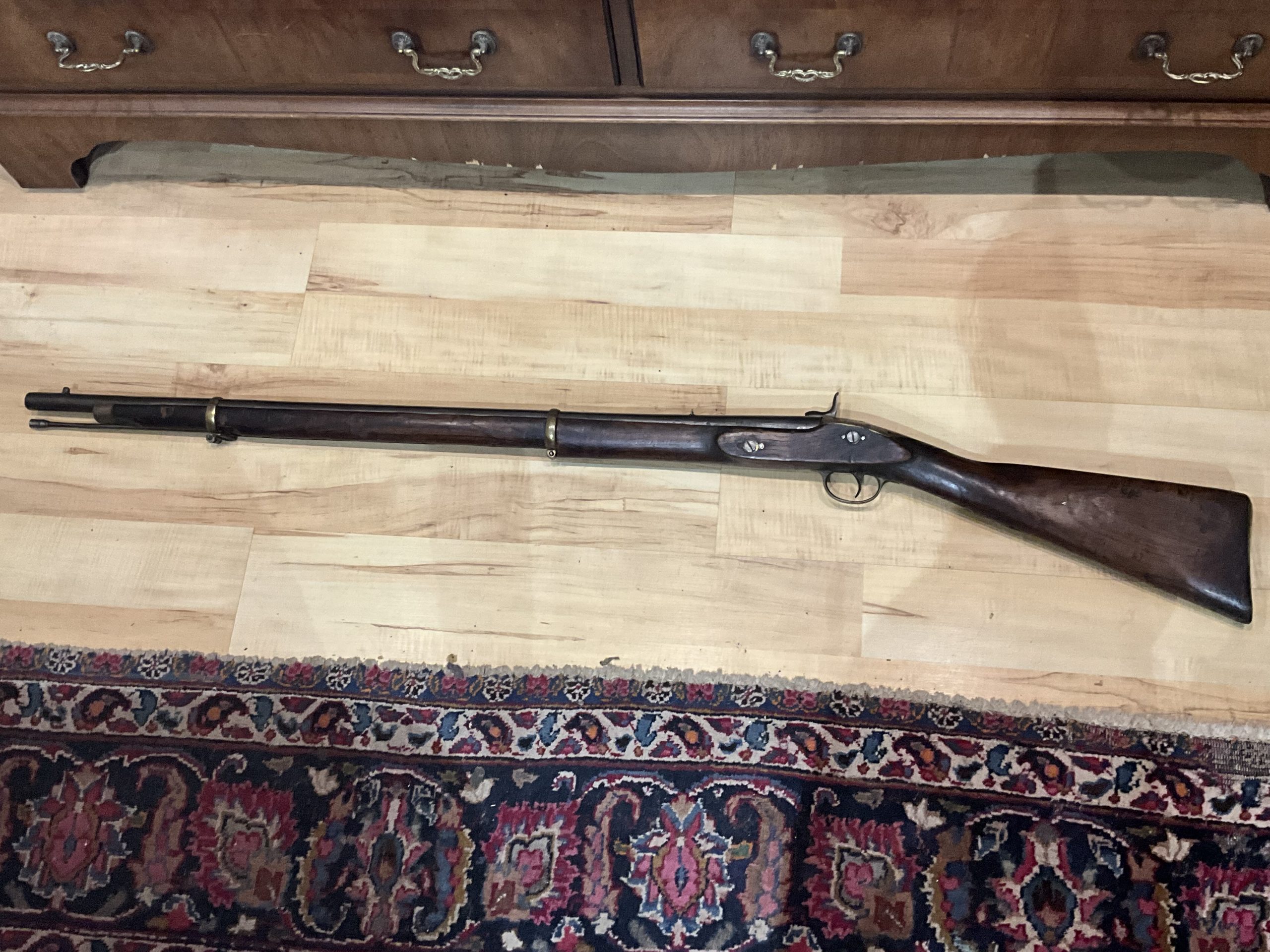 British army 1853 era 2 band Enfield rifle, condition is quite good and action working as it should, ideal display rifle, having length of 130 cm height 20 cm depth being 6 cm, has some nice decorative brass work, offering free delivery reference IML. TEL +44 7505 165 843 We accept online payments for all our items listed: Bank transfer cash on collection personal cheques or if wishing over the phone using your debit or credit cards, also doing layby payments plan, or email giving your address details & contact number and we shall send you your items invoice to make payment with your card. Send your request to – john.strong2@gmail.com