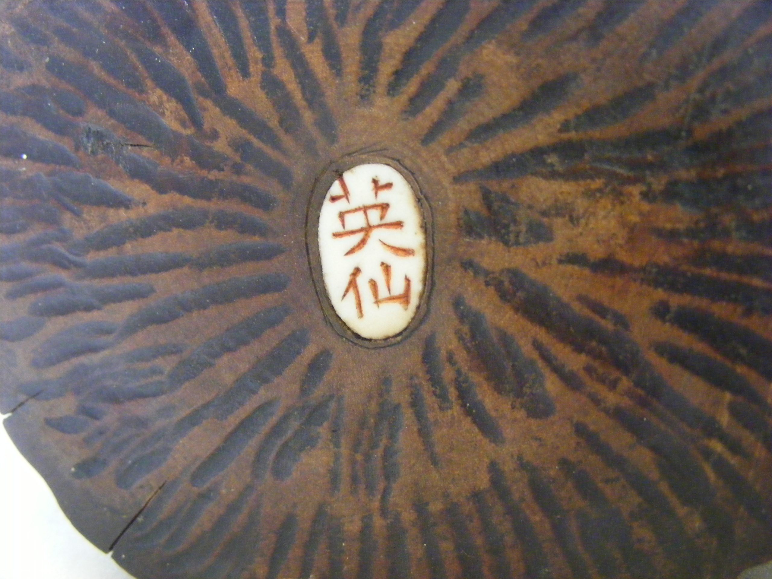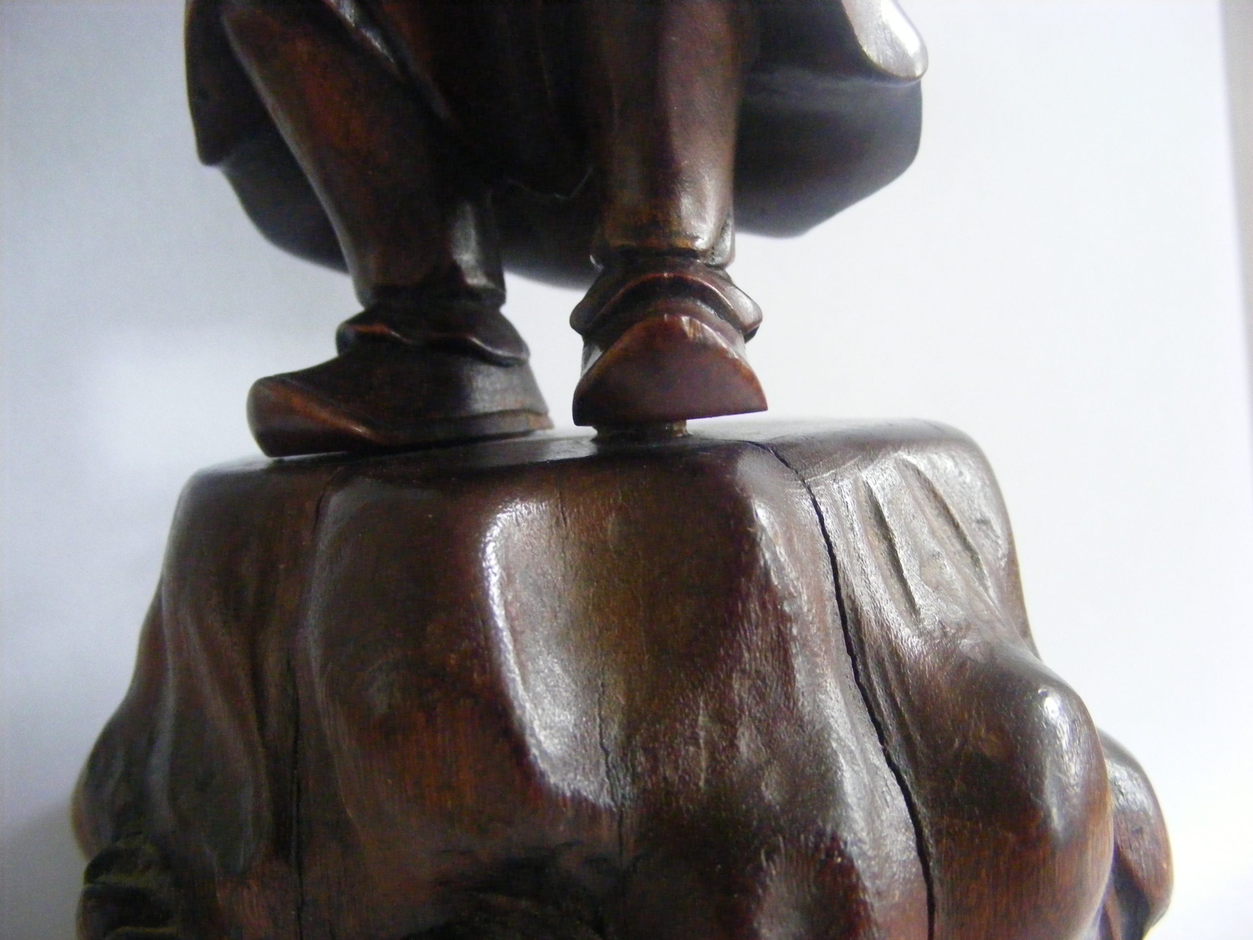 This exceptional carved wood ‘okimono’ has a two character signature inlaid on the underside of the base: Eiz-Sen.