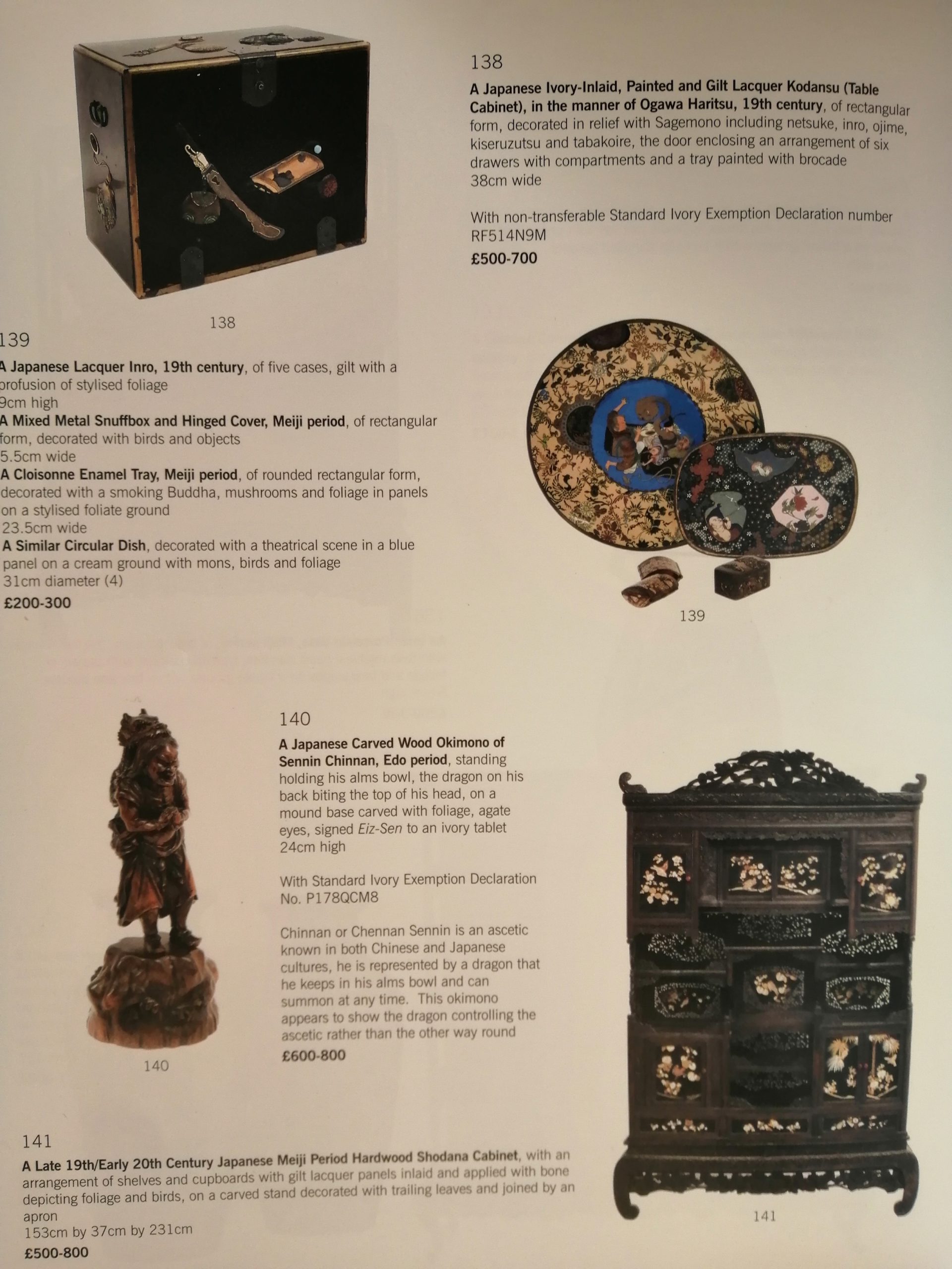 Bonhams sold a much smaller and lower quality carved wood Chennan Sennin (2020) for US$1,200.