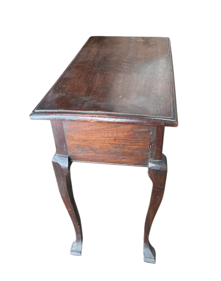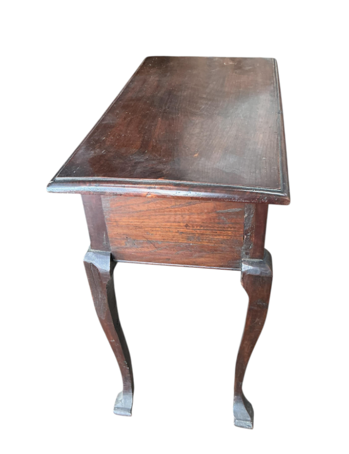 Resting on graceful cabriole legs and featuring a single deep drawer adorned with traditional brass pulls, the table perfectly balances refinement with practical storage. Its proportions make it ideal as a hallway statement piece, a bedside companion, or an accent table in a sitting room where its character can shine.