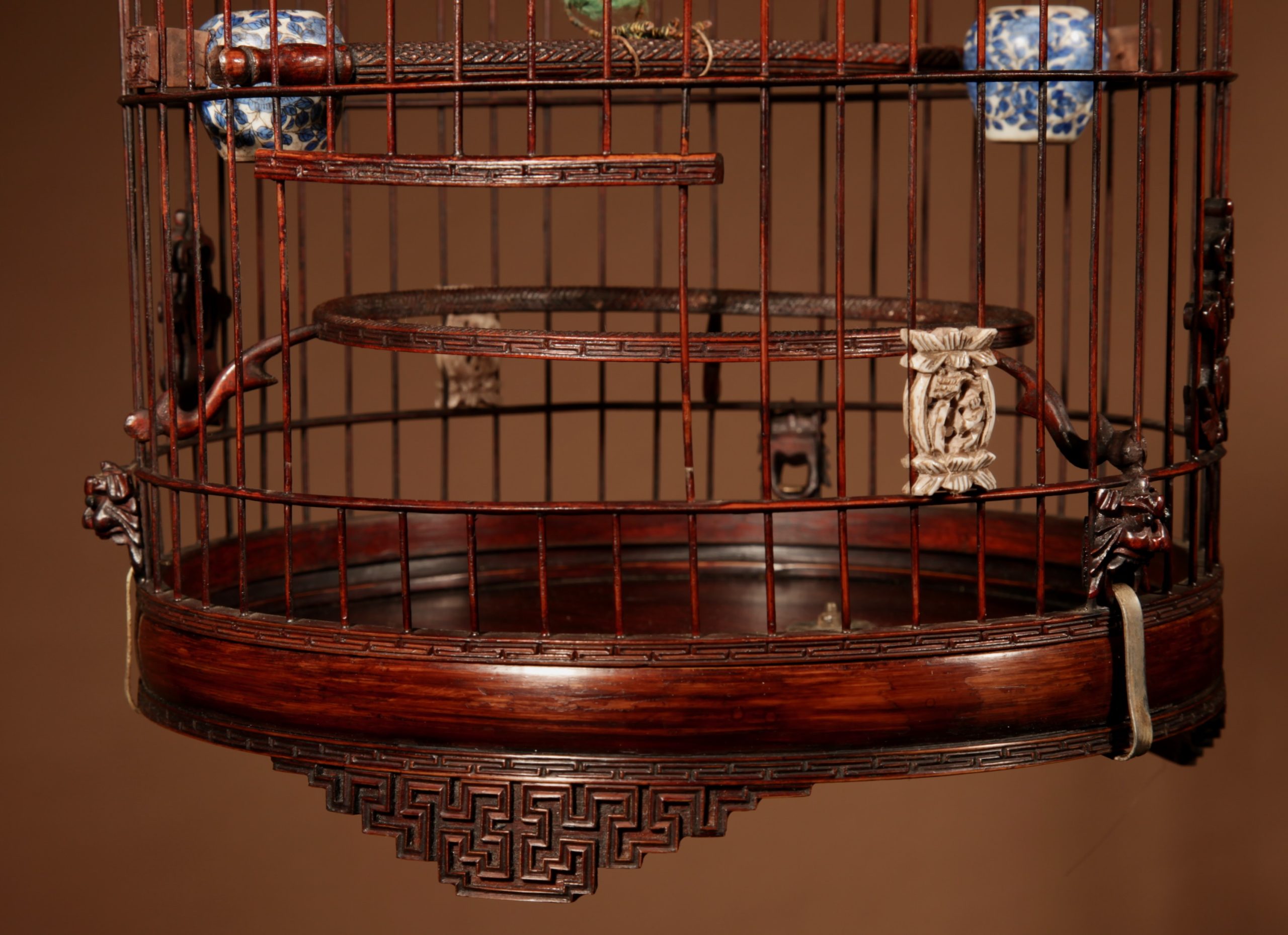 Fine Made And Carved Chinese Bamboo Bird Cage