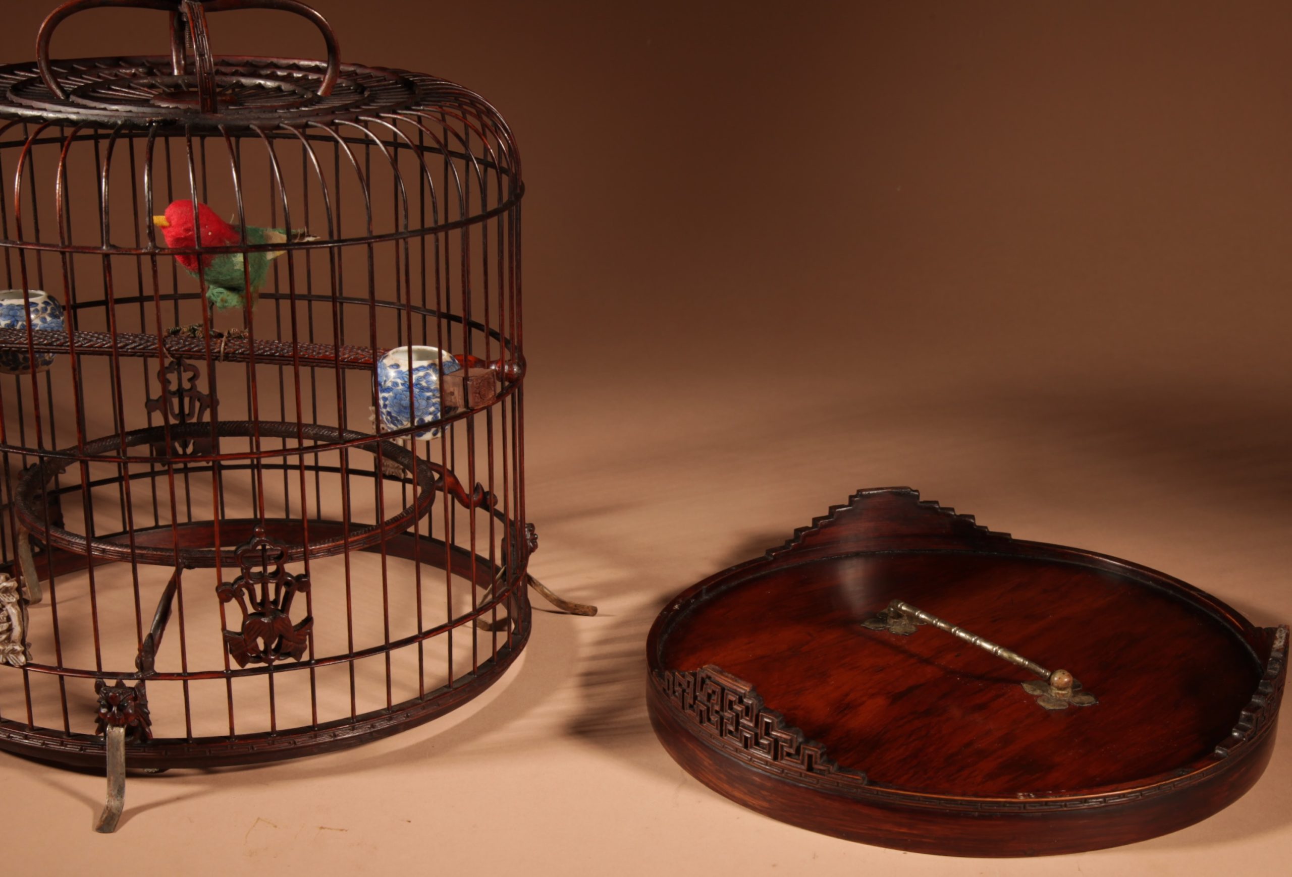 Fine Made And Carved Chinese Bamboo Bird Cage.