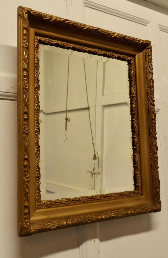Fine Quality Rectangular Gilt Wall Mirror The mirror is in a 3.5” wide beautifully decorated Gilt Frame, it is a good size and has a wide bevelled glass Both the glass and the frame are in good antique condition The overall size is 26” high x 22” wide FB124 Manufacture Date : 19th Century Materials : Giltwood