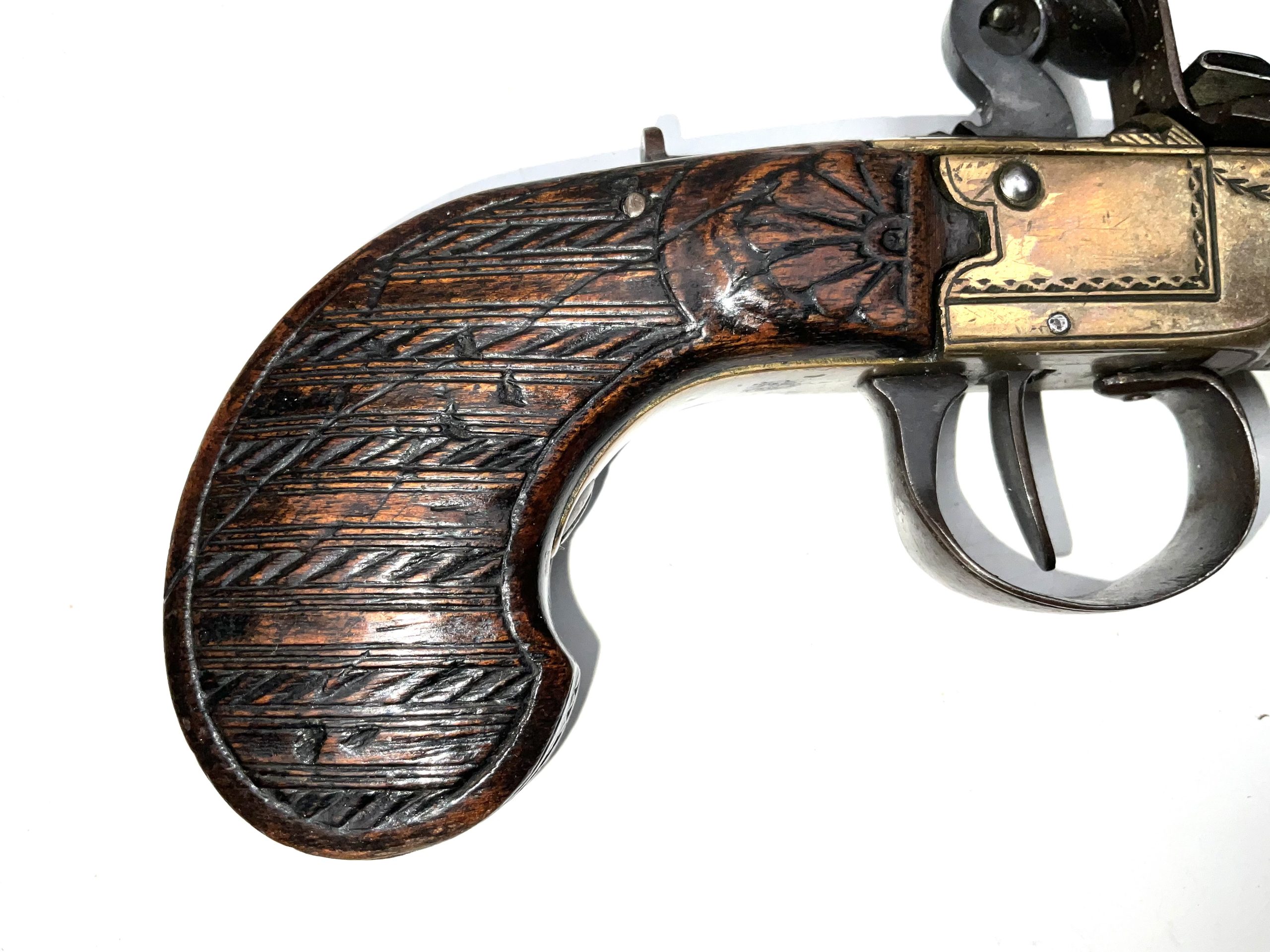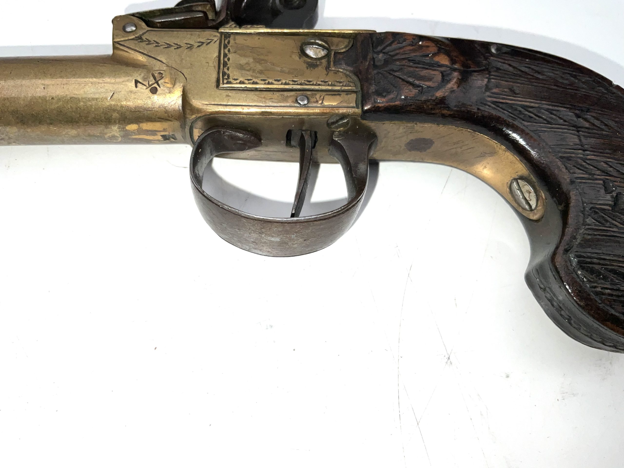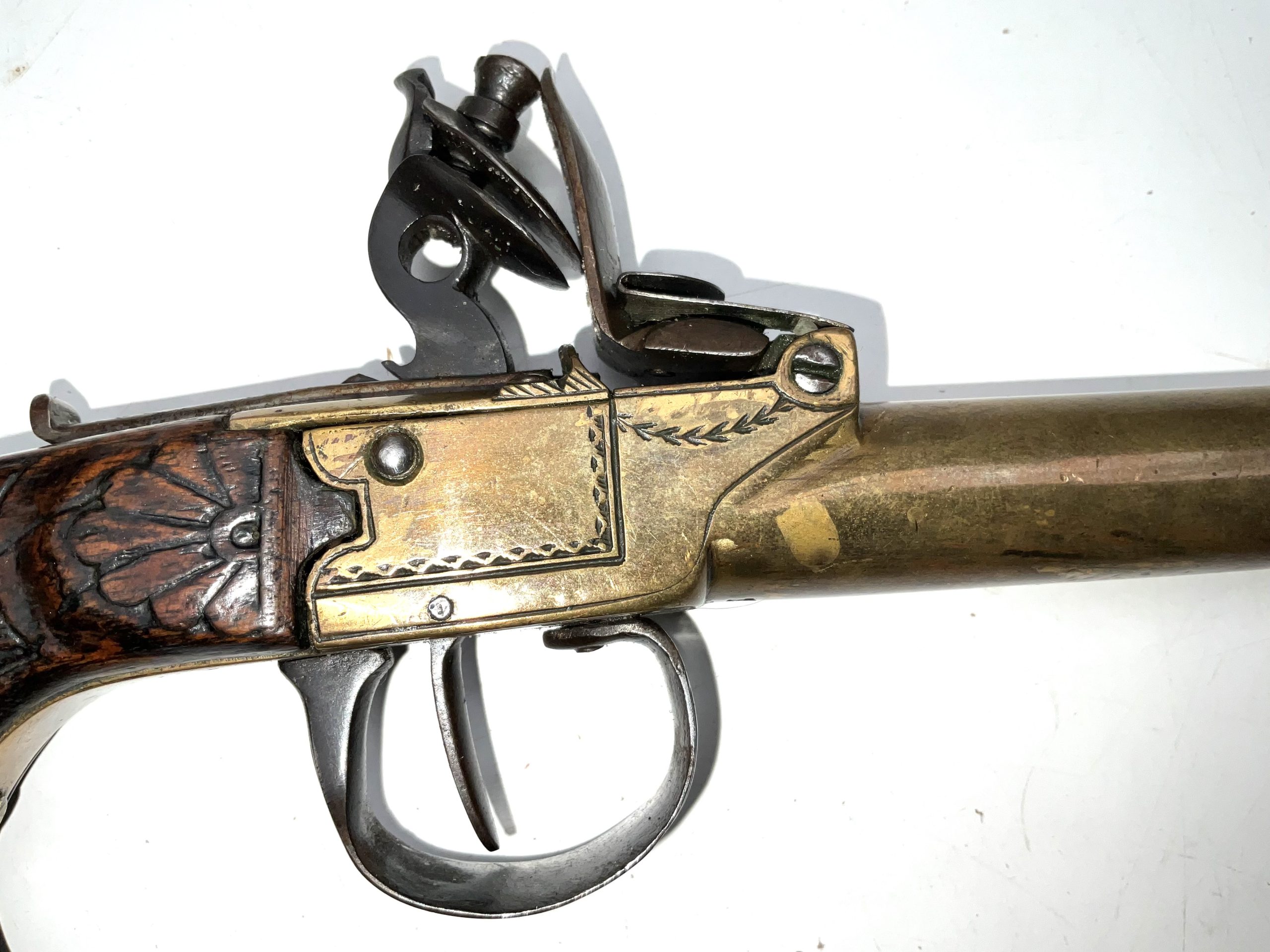 Early 18th century, in good working order and condition 10mm bore working safety on half and full cock, superb carved walnut grip having overall length of 20 cm heights 11 cm depth being 28 mm, offering free UK delivery reference DBSS Tel: +44 7505 165 843 We accept online payments for all our items listed: Bank transfer cash on collection or if wishing over the phone using your debit or credit cards, also doing layby payments plan, or email giving your address details & contact number and we shall send you your items invoice to make payment with your card. Send your request to – john.strong2@gmail.com