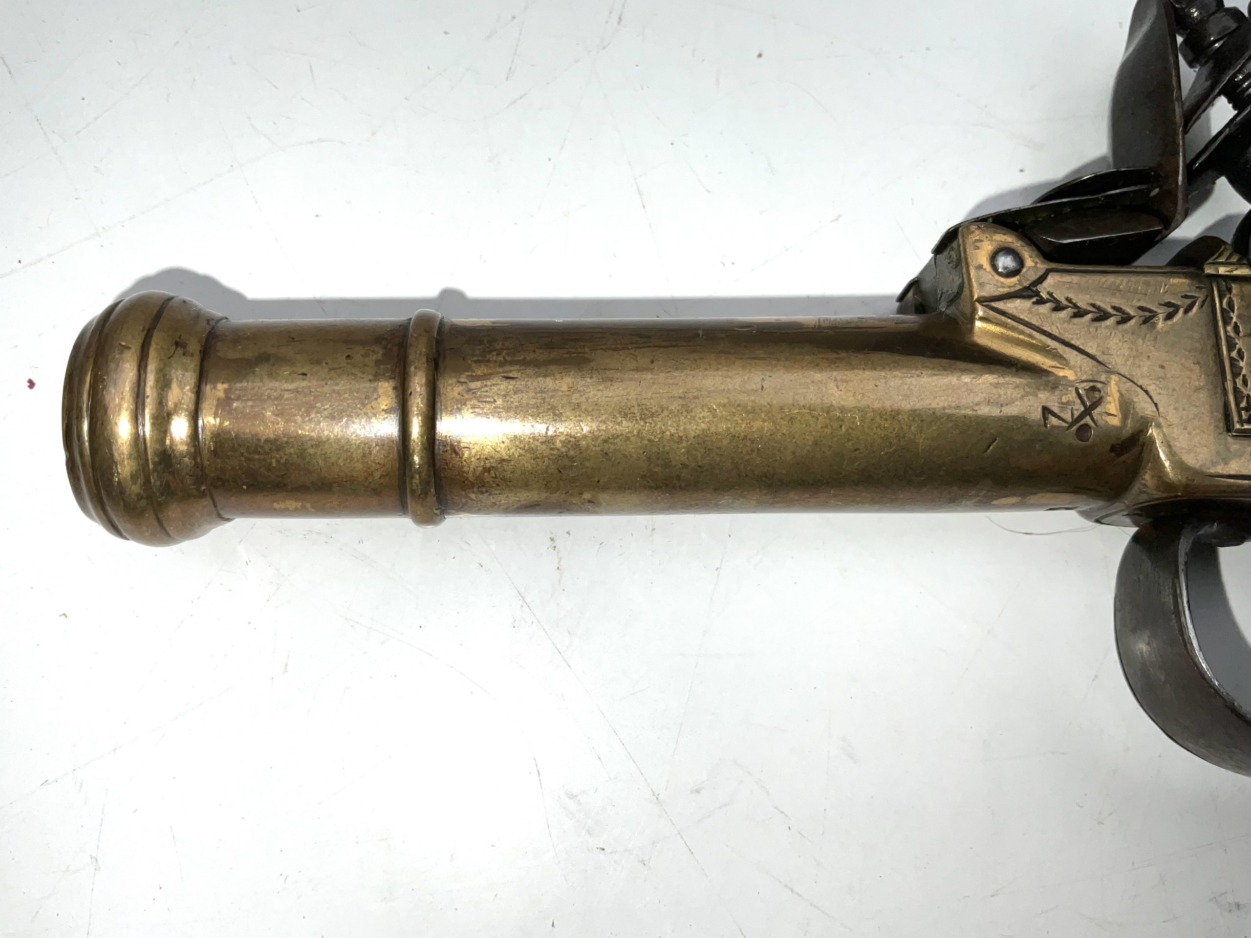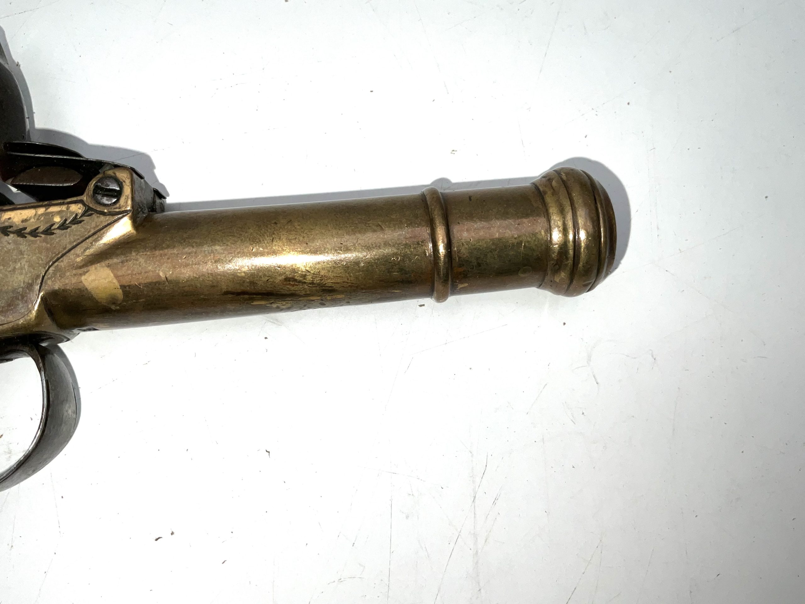 FLINTLOCK BRASS CANNON BARREL OVERCOAT PISTOL