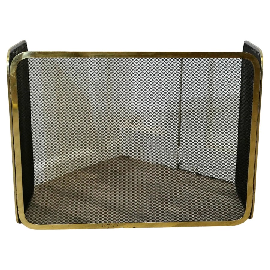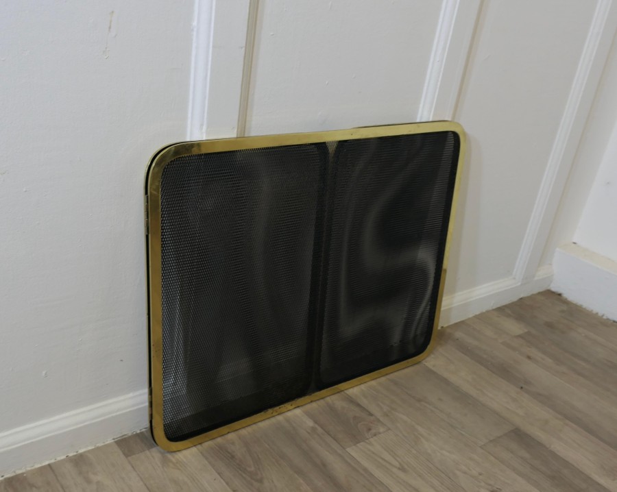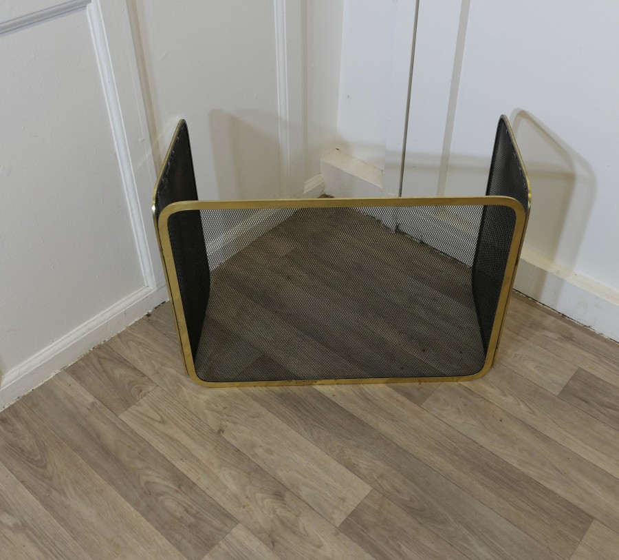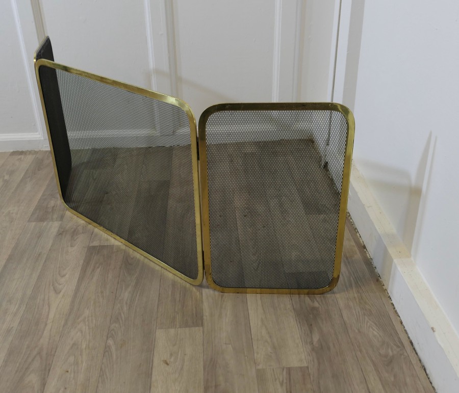 Folding Brass Fire Guard, Spark Guard This very useful spark guard has a brass frame and a fine mesh infill, it has the added advantage that it folds flat for storage, and when opened out it can be shaped to enclose your fire, very useful for a wood burning stove and it can be stored away when not required The guard is in good condition and steady when in use The guard is16” high and 47” long over all when opened flat TZX178 Manufacture Date : 1960 Materials : Brass