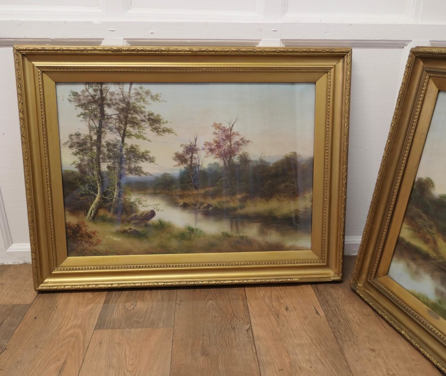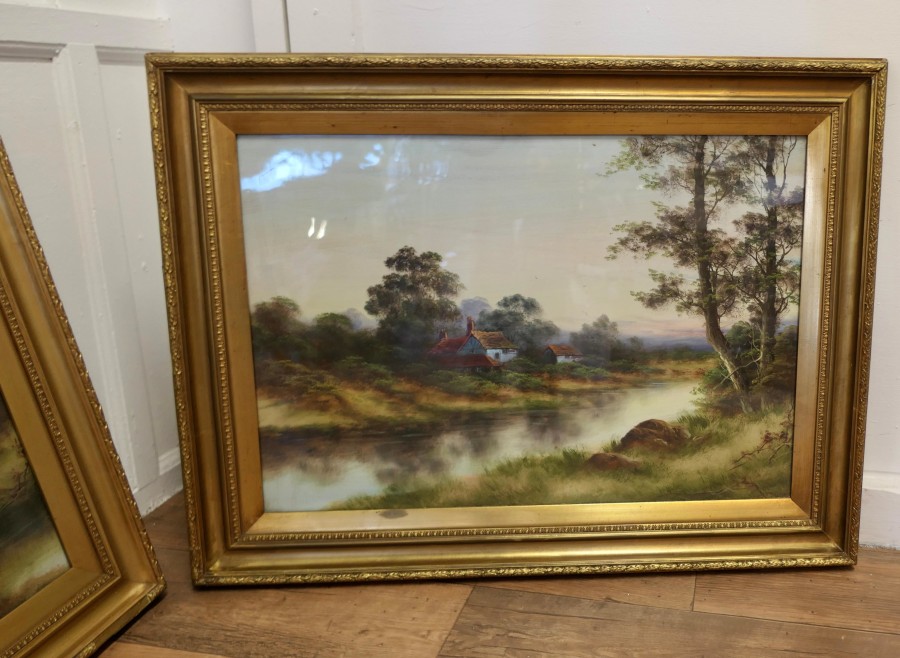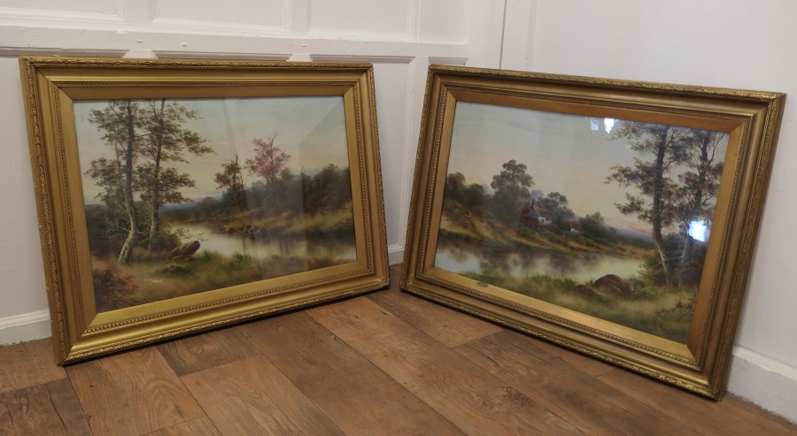 A Framed Pair of Water Colour Paintings, English Country Scenes These are lovely colourful pair, they are tastefully framed behind glass, the frames seem to be the original frames and all though in good condition do have a few signs of their age Not signed The Pictures are 36”wide x 27” high and the Gilt frames are 4” wide MS200. Manufacture Date : 1880 Materials : Paint