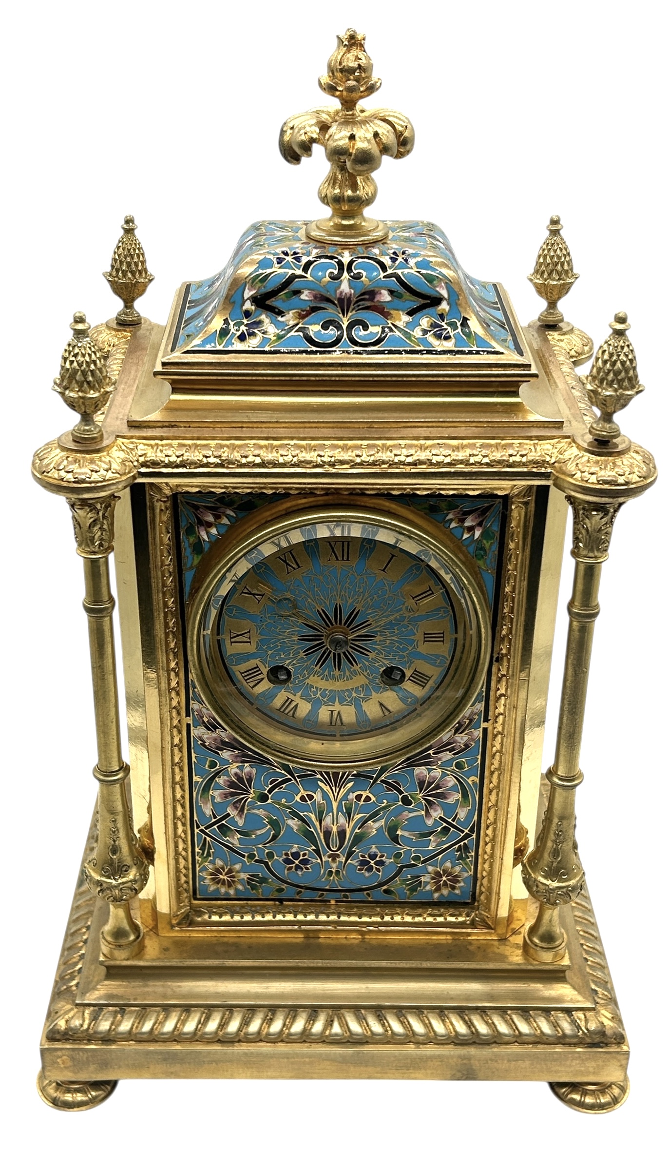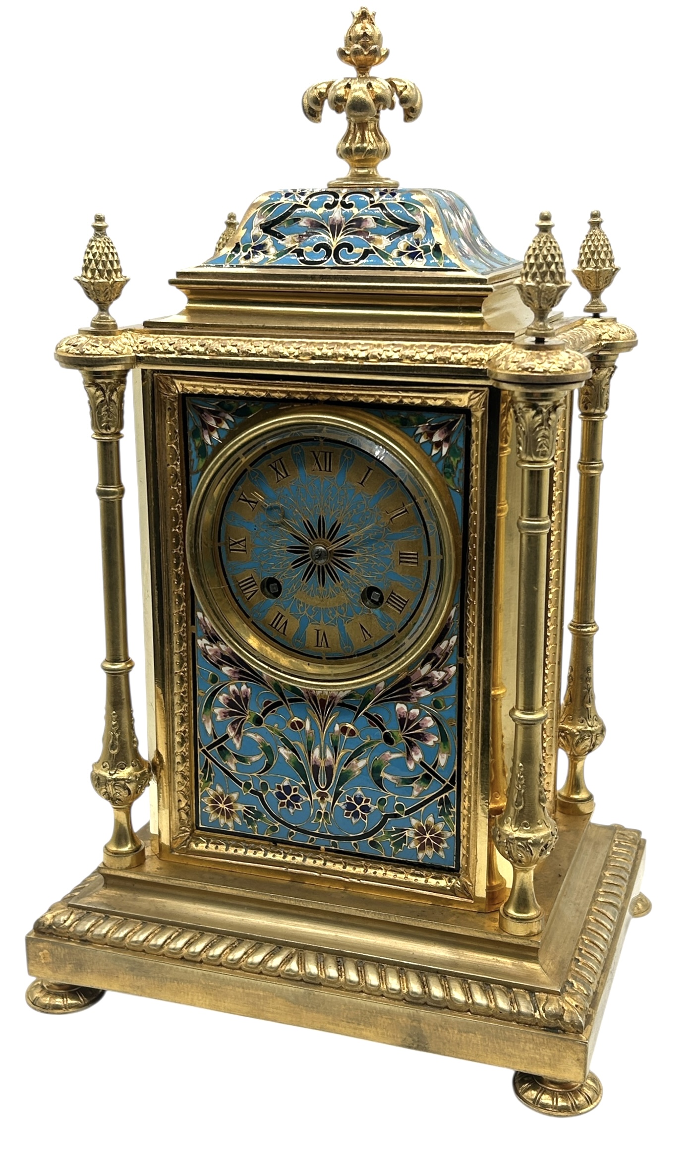 French Bronze Ormolu Champleve Mantel Clock – 8-day striking mantle clock c1870
