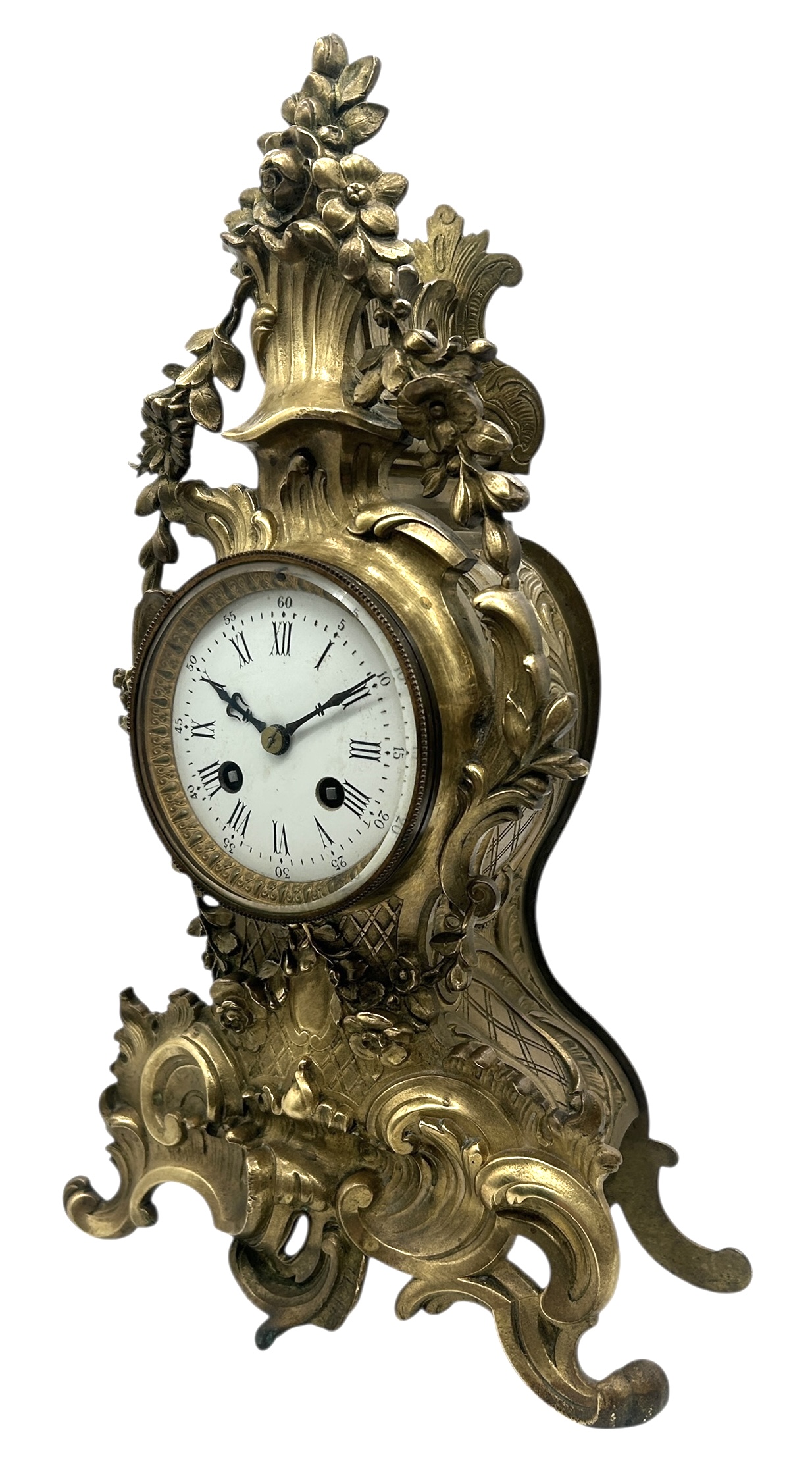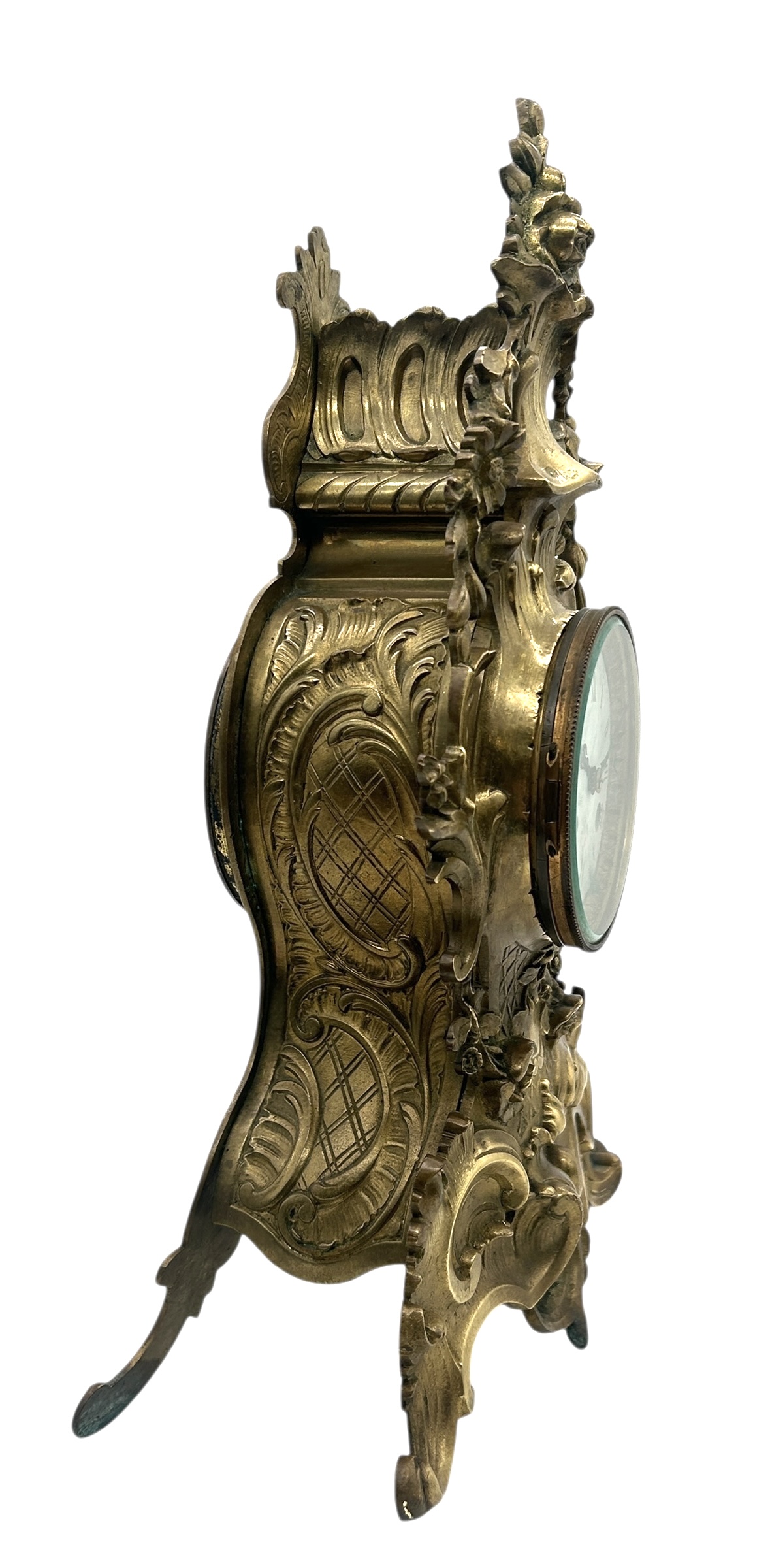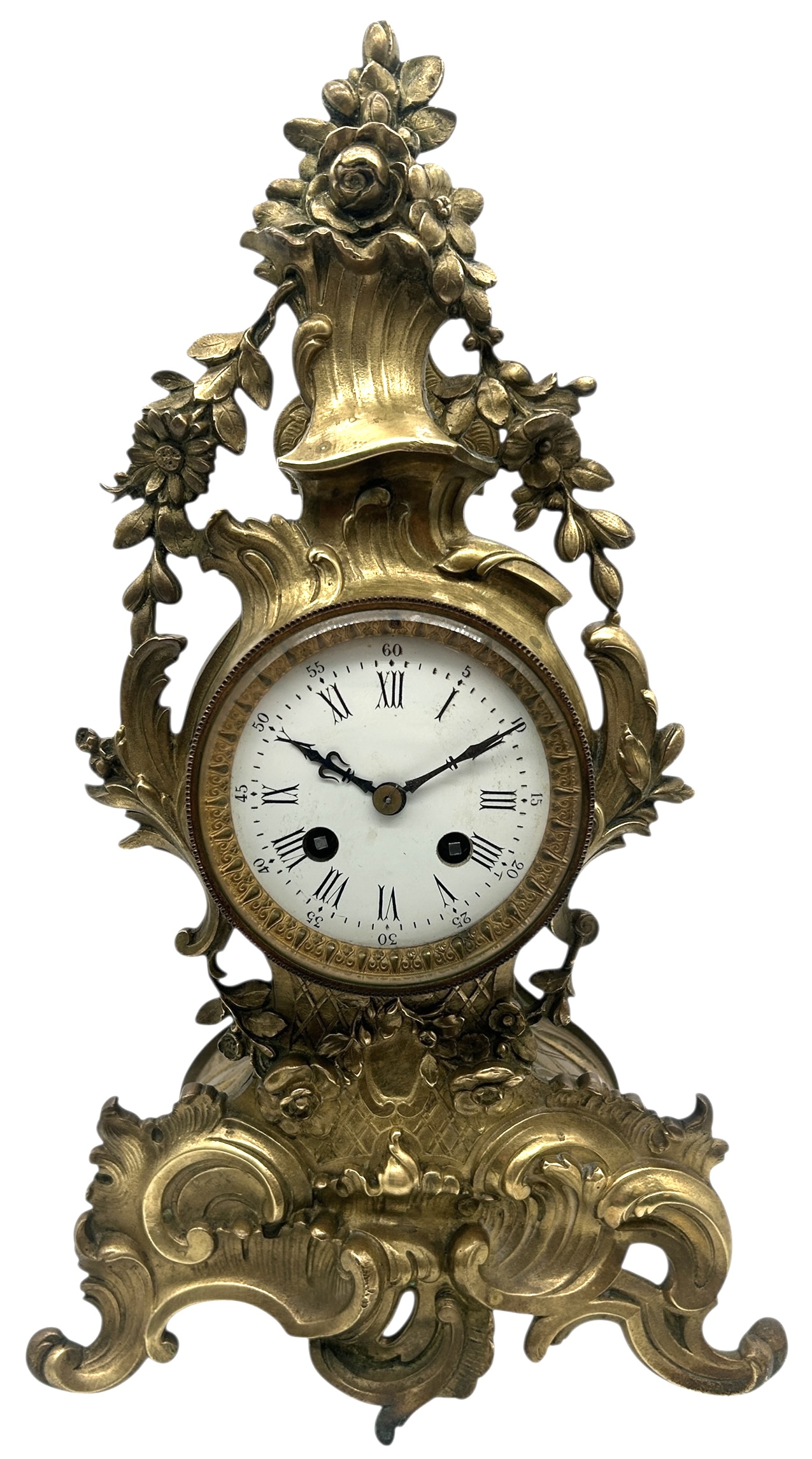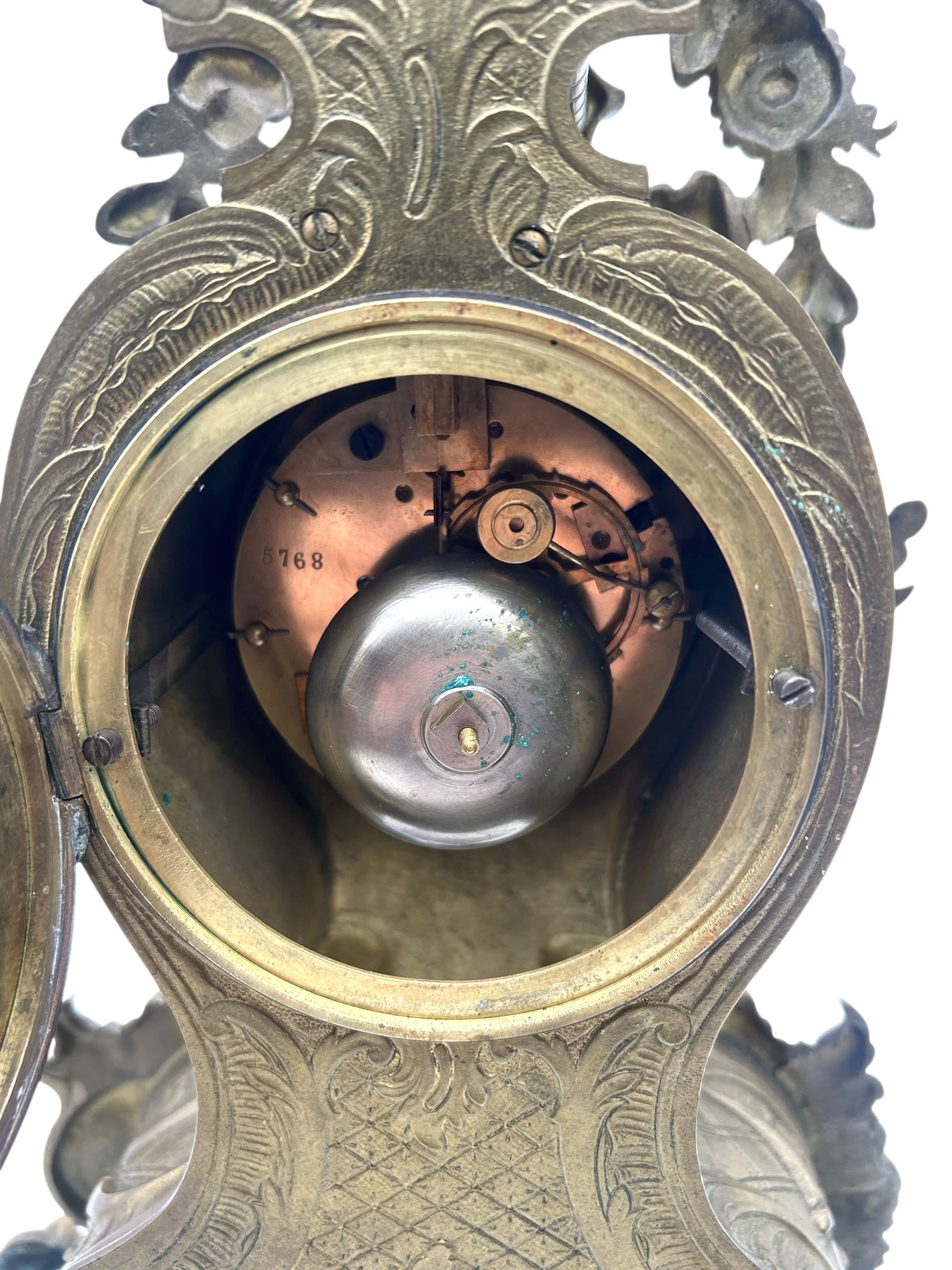 French Bronze Ormolu Scrolling Mantel Clock – 8-day striking mantle clock c1890