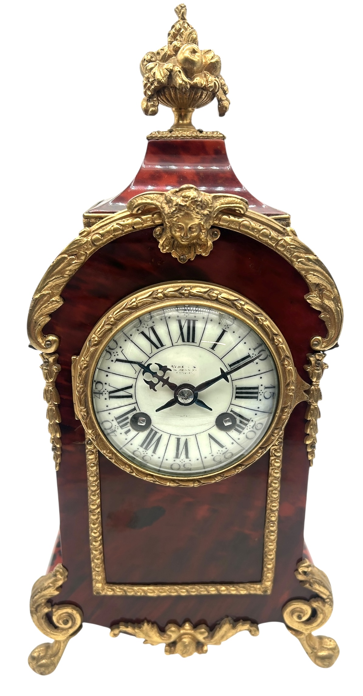 French shell mantel clock – Ormolu mounts Fruit Basket Finial Top Circa 1860