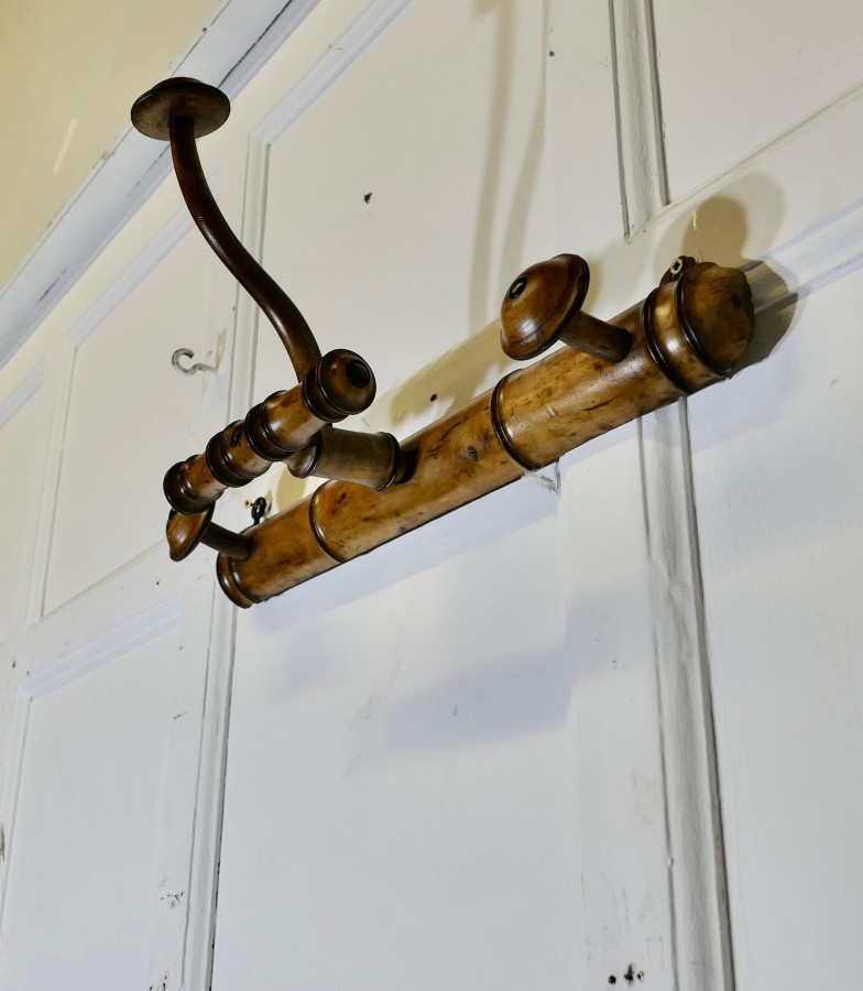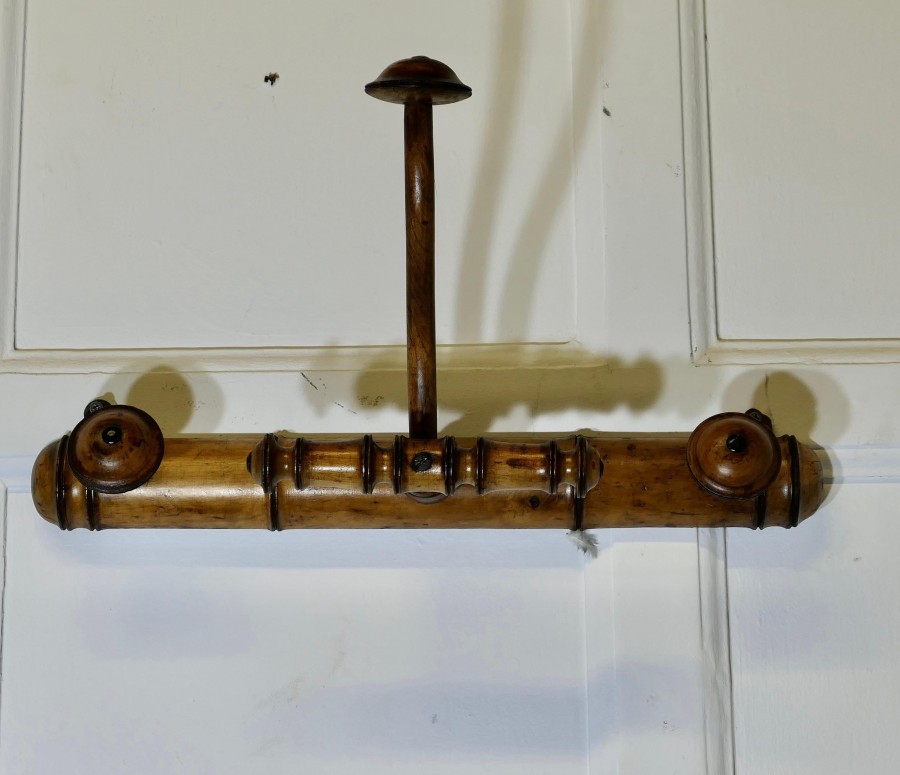 French Simulated Bamboo Hat and Coat Wall Rack A Very attractive Coat Rack, made in beech to simulate bamboo, the rack has a tall branch at the centre and another coat hook at each side A Great piece and in good condition The Rack is 19” high and 10” long and it stands out 9” from the wall TZX171 Manufacture Date : 1880 Materials : Beech