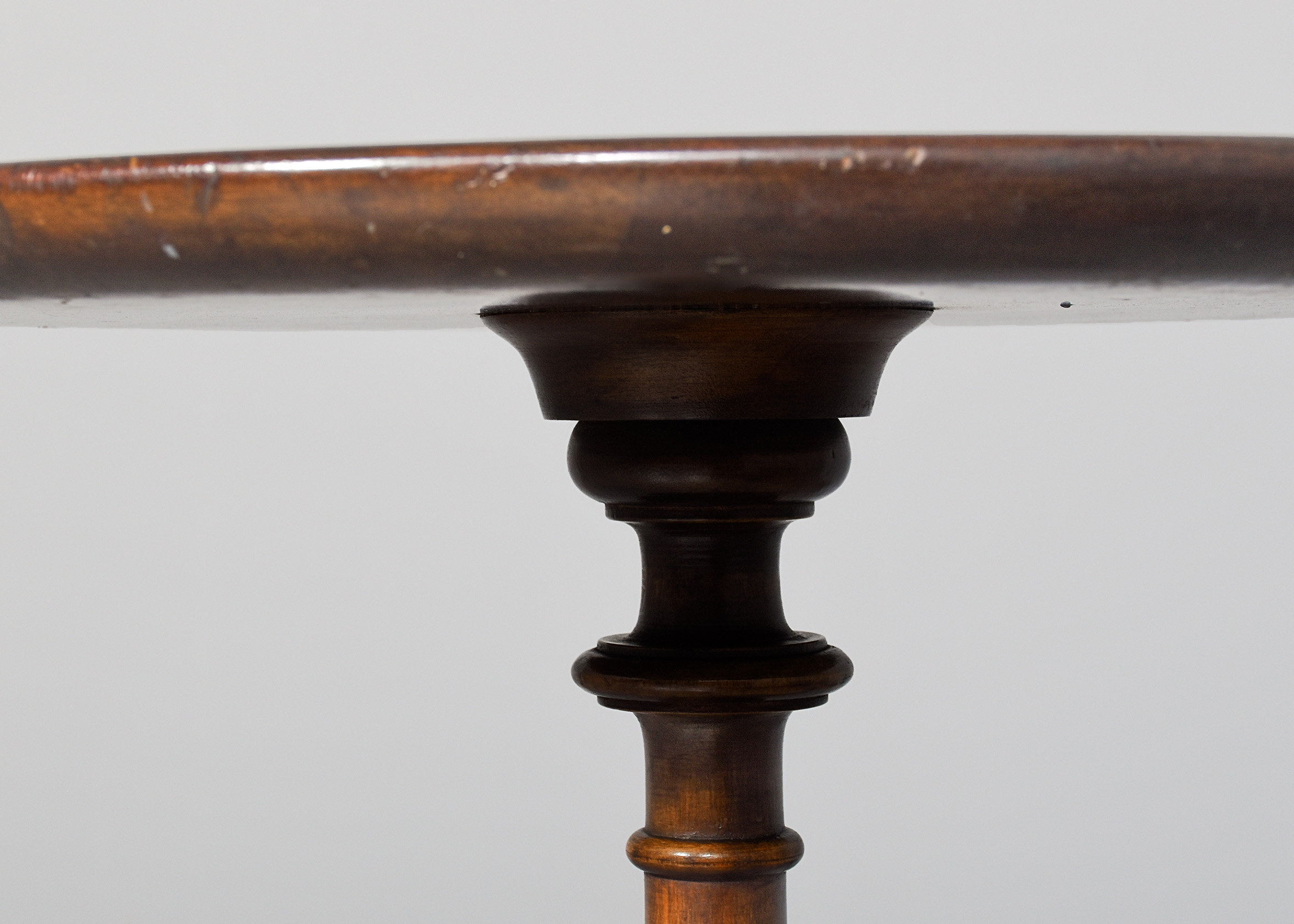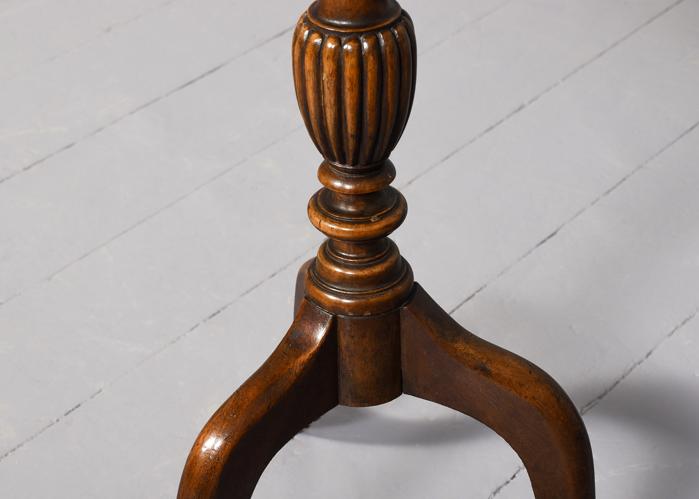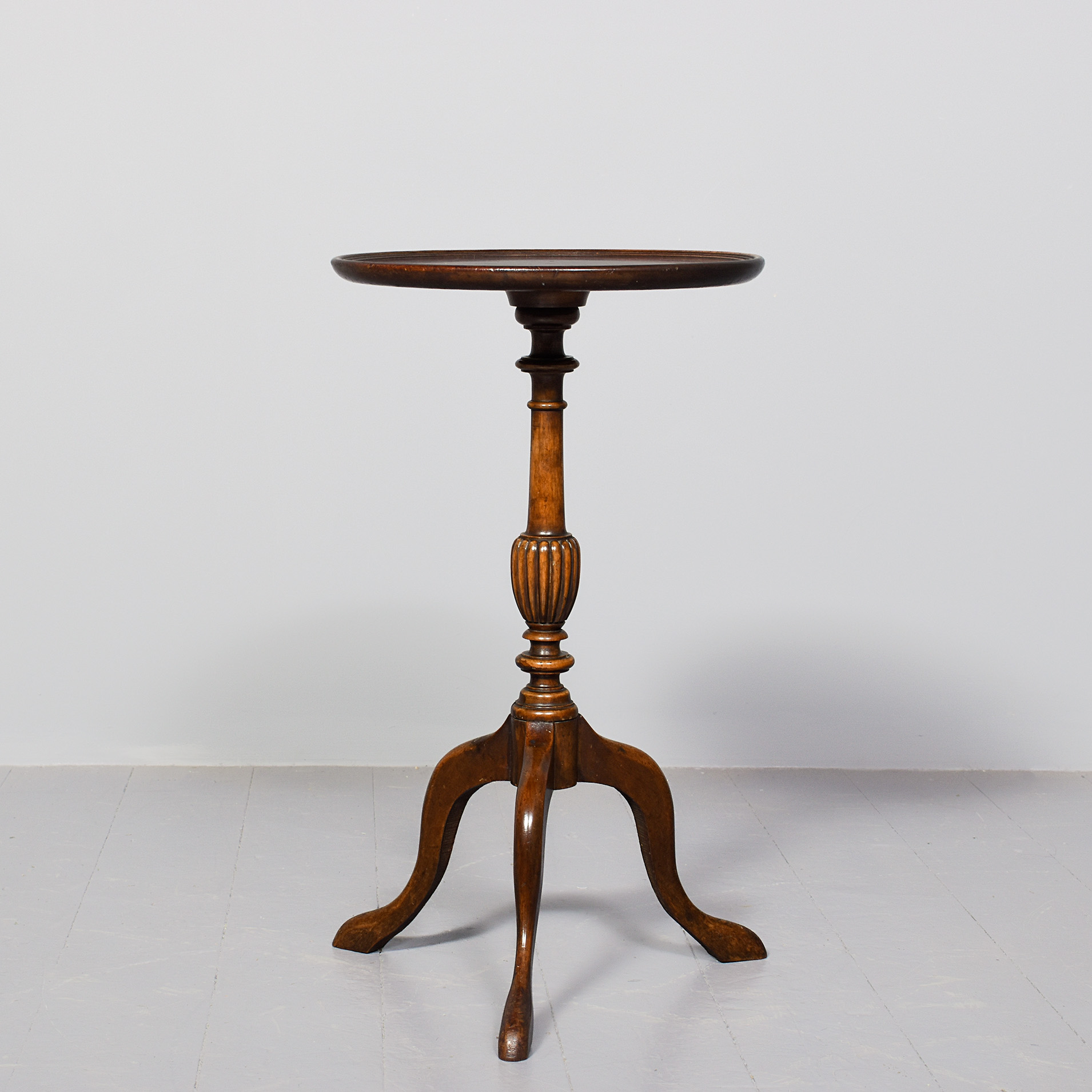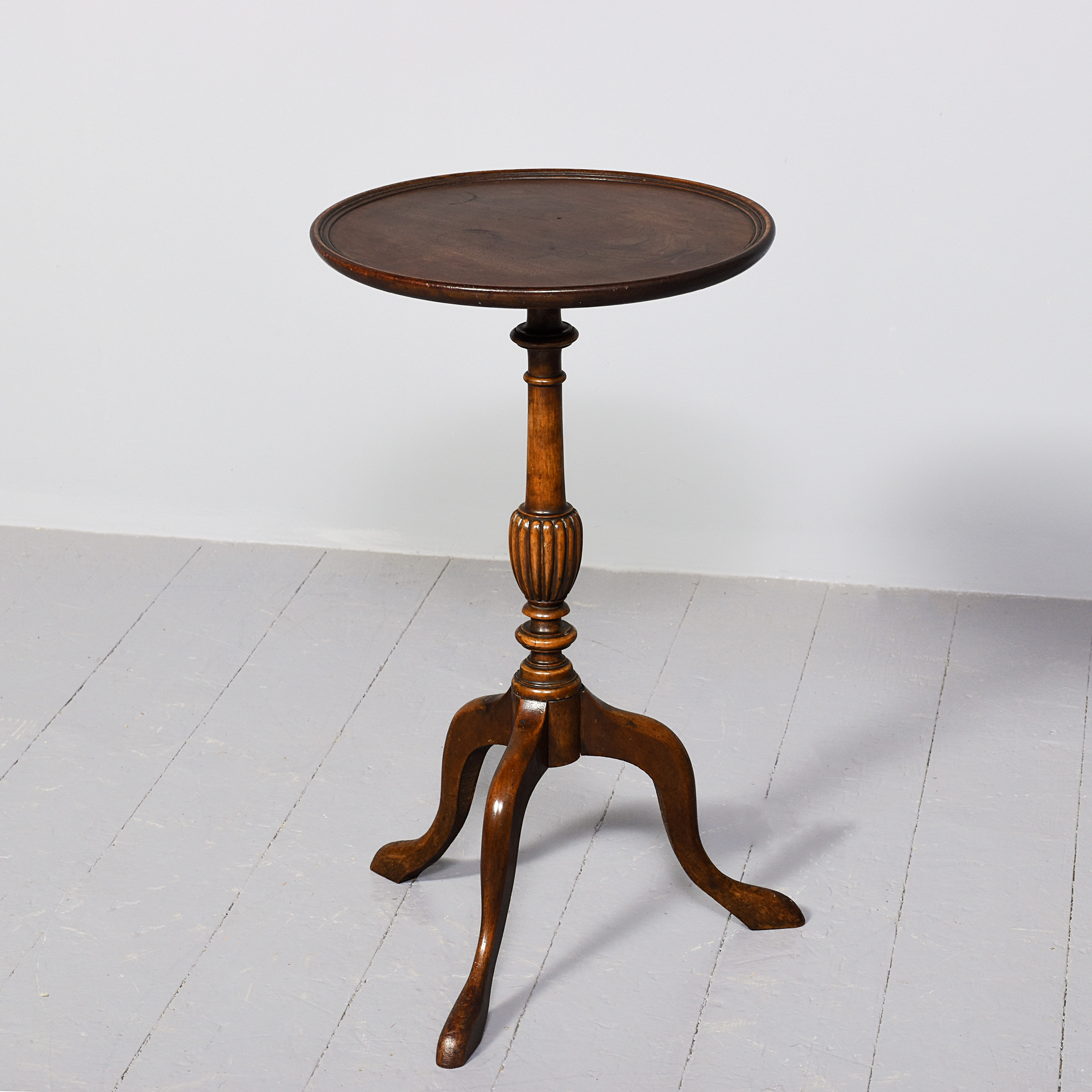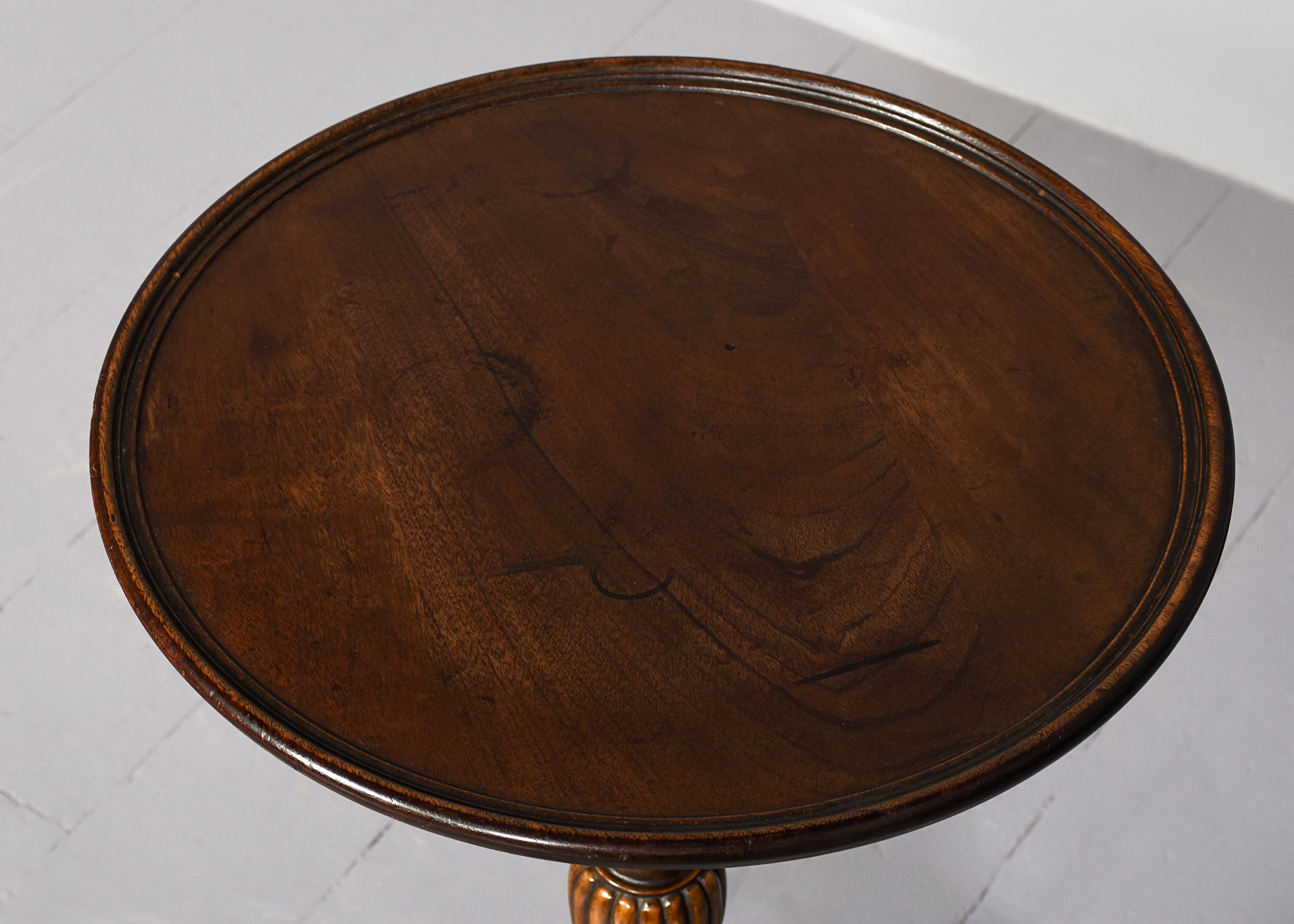 Circa 1920. George 3rd style mahogany tripod occasional or wine table. The top with a moulded rim supported on a stem with ring turnings and fluting over cabriole legs with pad feet.