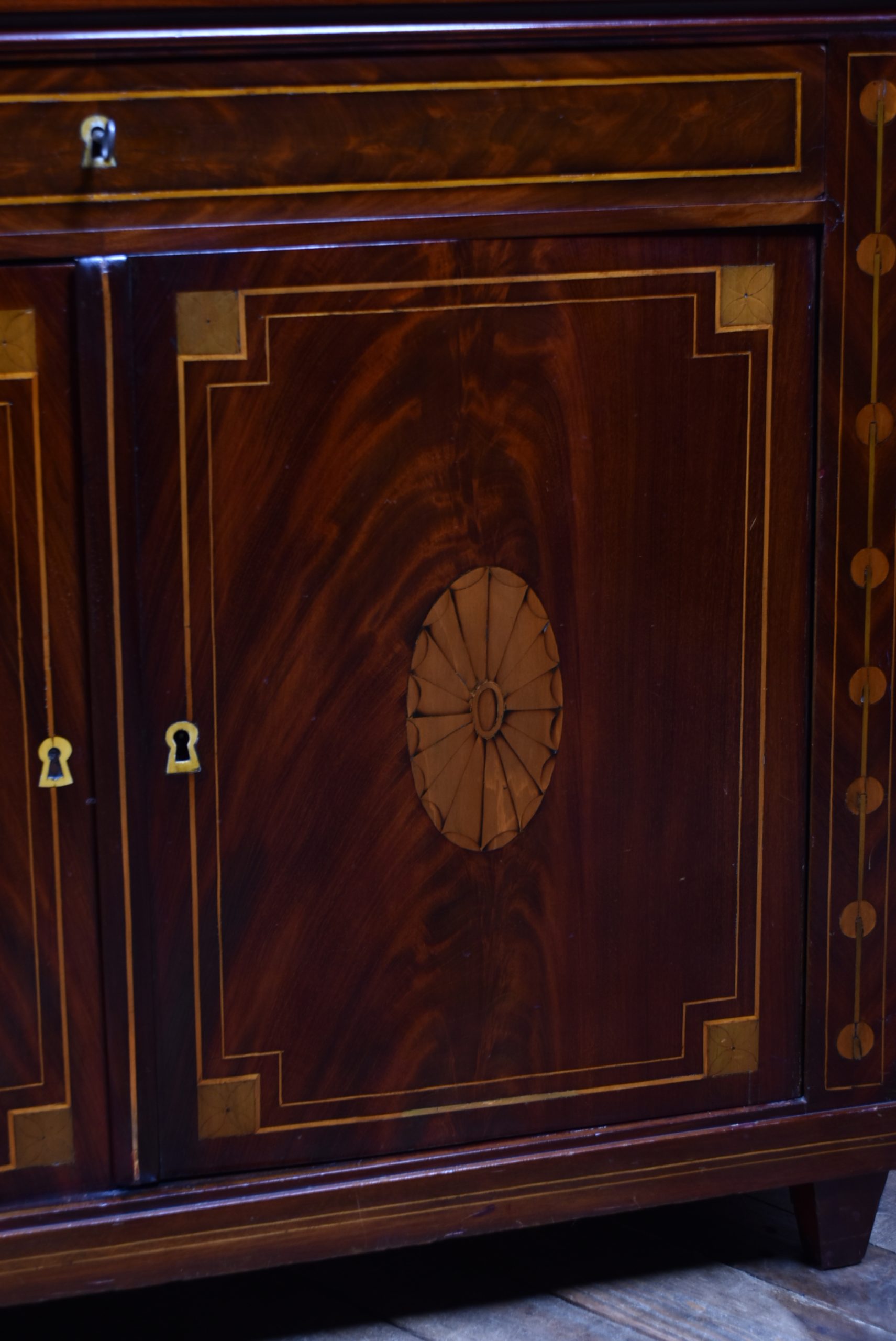 Here at Sinclair’s Antiques and Interiors we do our utmost best to ensure all our items are described and photographed to show any flaws or damage such as shrinkage splits, losses or lifts to veneer, repairs or marks. However, giving the age and the fact that each piece will have had years of polishing to create its own individual character, we cannot describe every minor mark separately and therefore recommend you either visit our warehouse or request extra photographs.