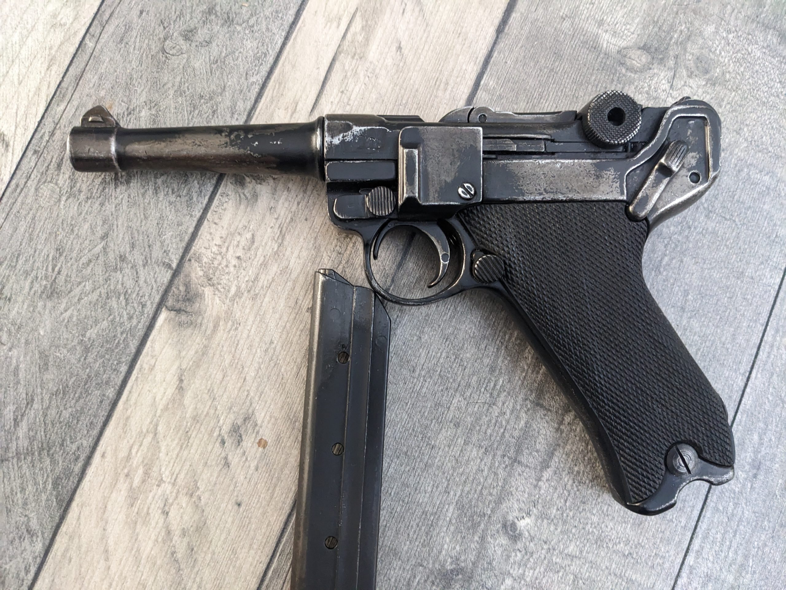 German luger possibility a prop gun the gun is a very realistic copy fully metal it does dry fire please note that you must be over 18 to purchase and you will need id contact me for more information