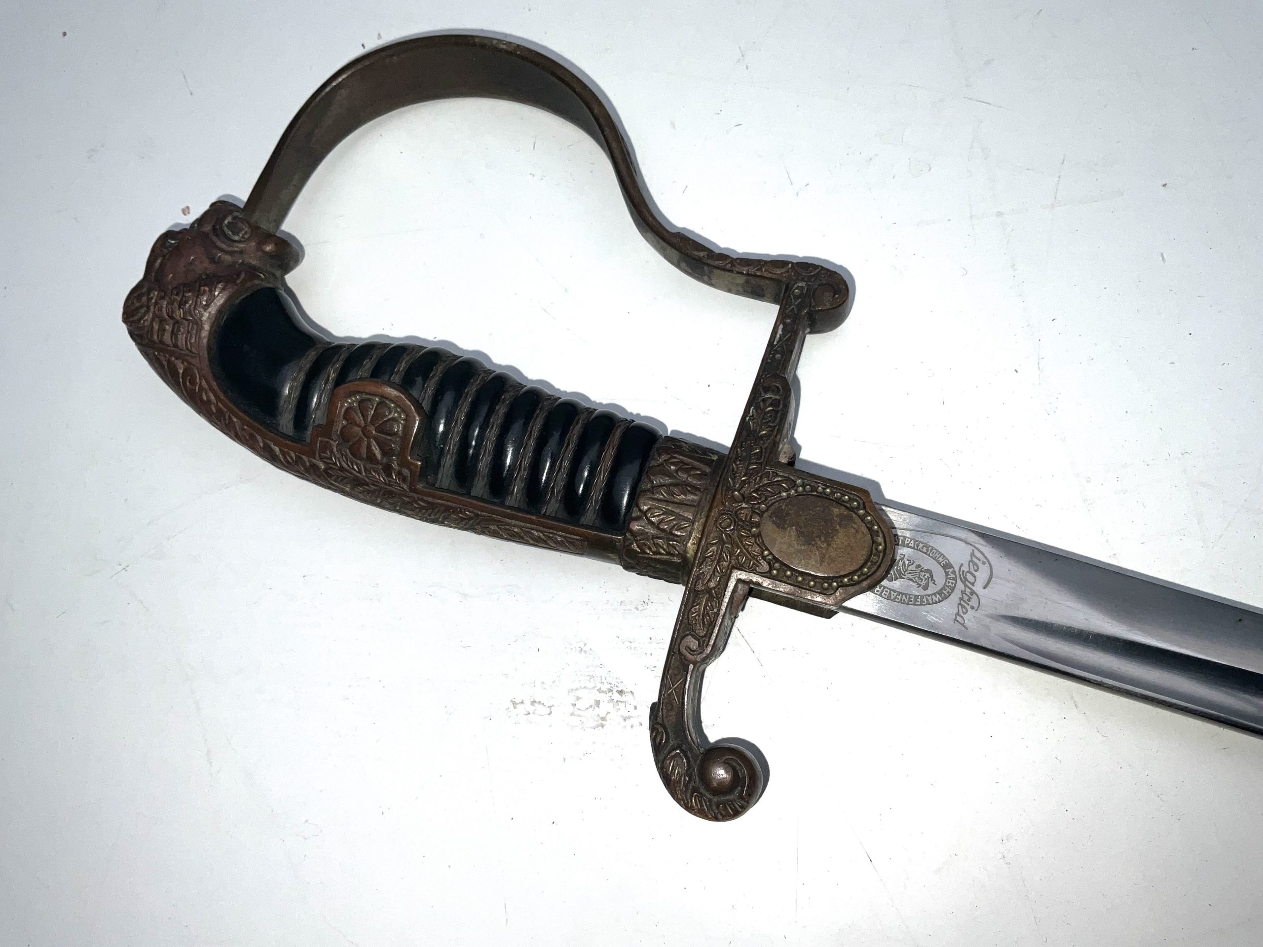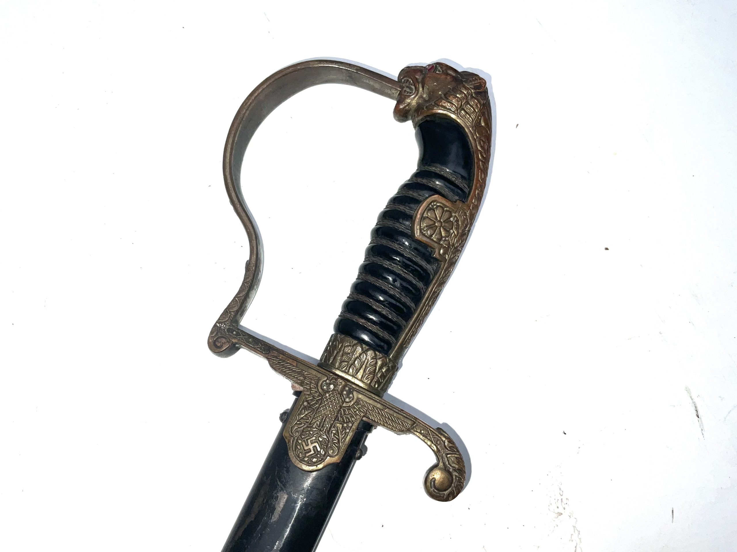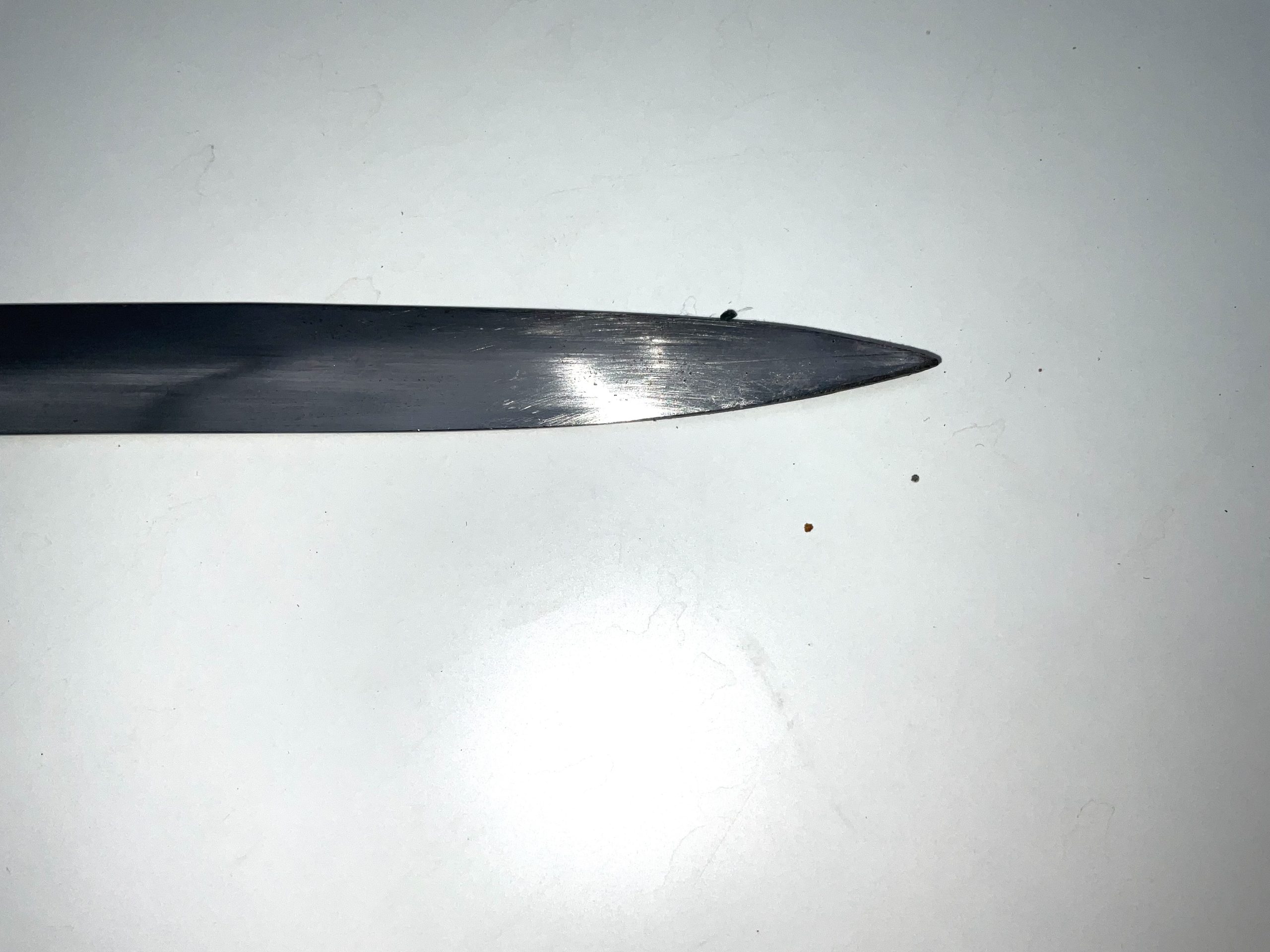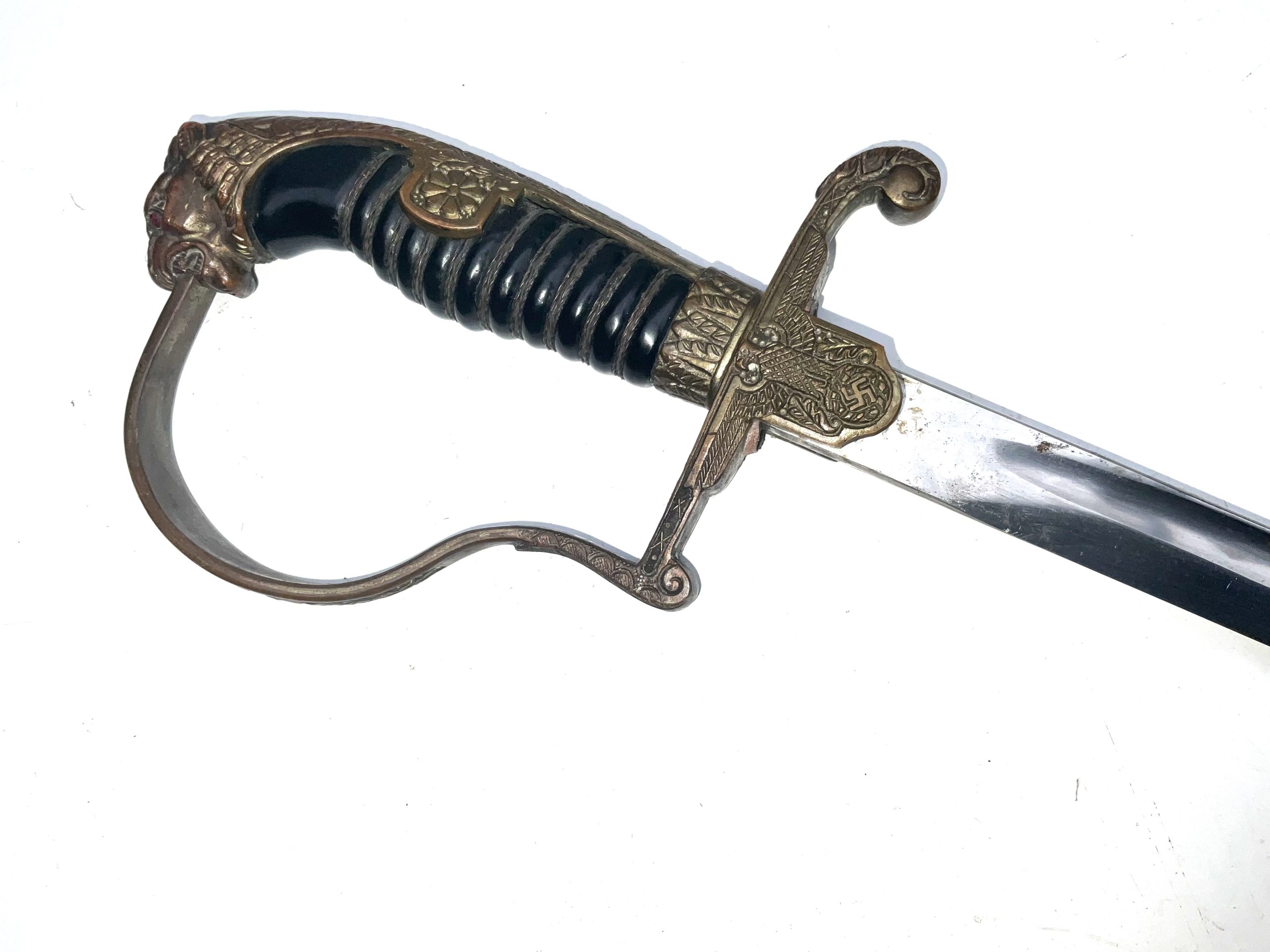 This sword features a slightly curved single-edged 30 3/8″ (77 cm) blade with 3/4 length fuller, marked on the ricasso in an elaborate cartouche depicting Siegfried wielding his hammer, surrounded by the words “ERNST PACK & SOHNE M.B.H. WAFFENFABRIK”, over “SOLINGEN/WAFFEN”. offering free UK delivery reference DBSD2 Tel: +44 7505 165 843 We accept online payments for all our items listed: Bank transfer cash on collection personal cheques or if wishing over the phone using your debit or credit cards, also doing layby payments plan, or email giving your address details & contact number and we shall send you your items invoice to make payment with your card. Send your request to – john.strong2@gmail.com