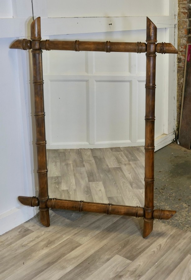 Heavy French Art Deco Bamboo Wall Mirror This is a very attractive heavy weight piece, this large mirror is framed with a chunky faux bamboo frame, the mirror has a solid wooden back and it can be hung either portrait or landscape The mirror is 35” x 29” and in good antique condition NG57 Manufacture Date : 19th CENTURY Materials : Beech