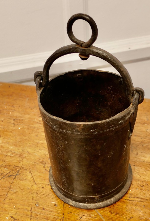 Heavy Iron Bucket. This is a lovely small bucket, this charming piece has riveted construction and with a swing handle The cauldron is in good well aged condition, it is 7” in diameter and 9” high not including the handle MS178. Manufacture Date : 1940 Materials : Iron