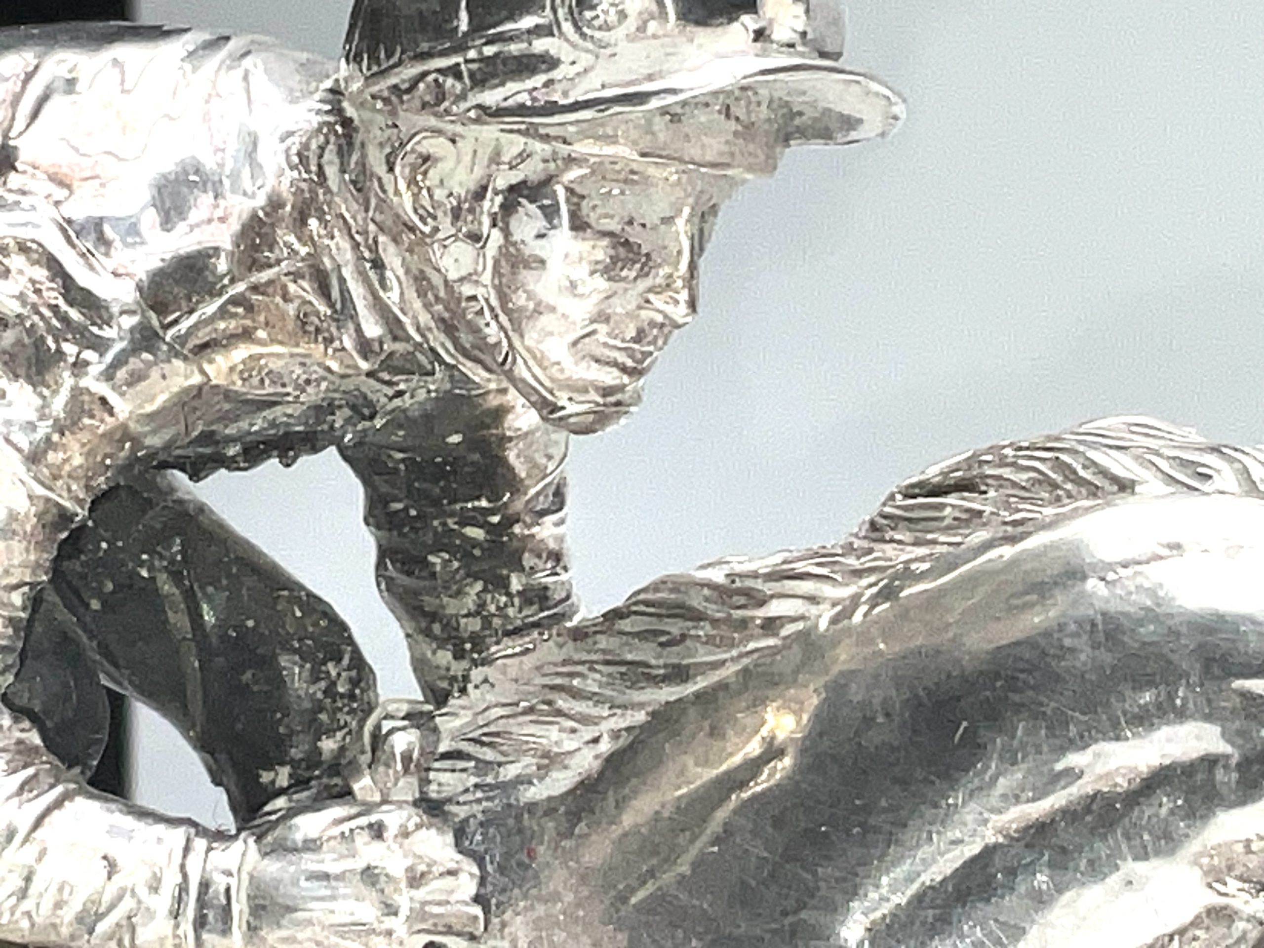 925 silver overall condition is superb depicting Papyrus ridden by jockey Steve Donoghue length being 28 cm depth 10 cm height of 25 cm, offering free delivery Worldwide reference FRC Tel: +44 7505 165 843 We accept online payments for all our items listed: Bank transfer cash on collection or if wishing over the phone using your debit or credit cards, also doing layby payments plan, or email giving your address details & contact number and we shall send you your items invoice to make payment with your card. Send your request to – john.strong2@gmail.com