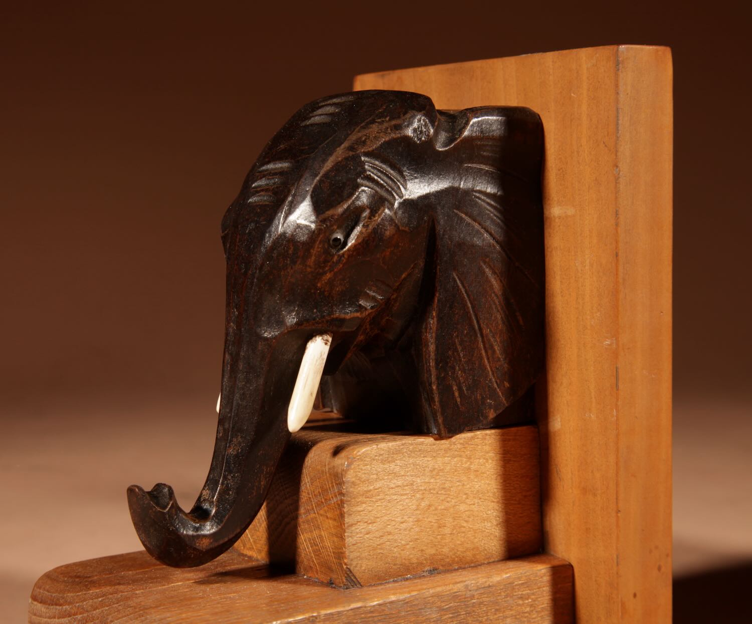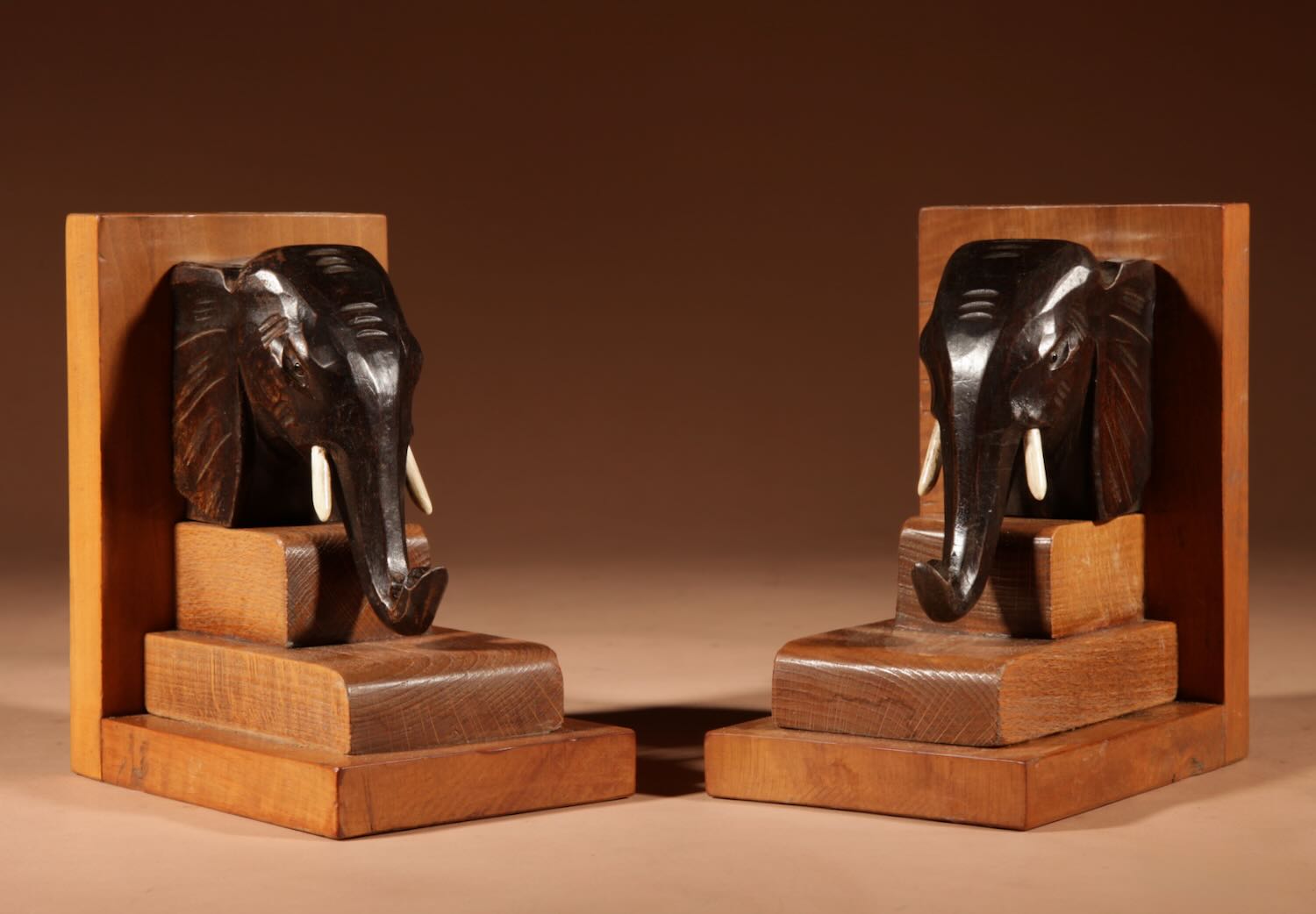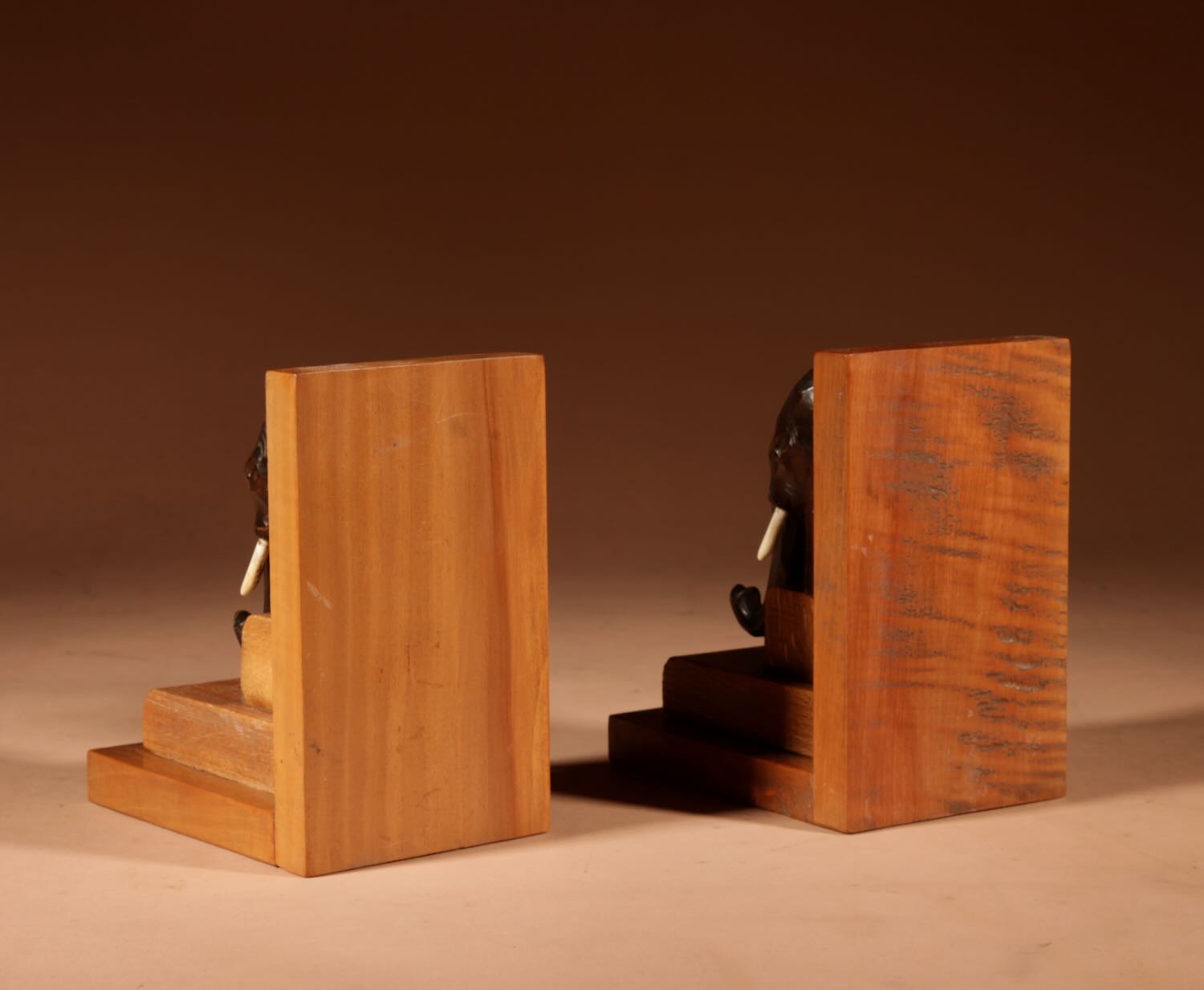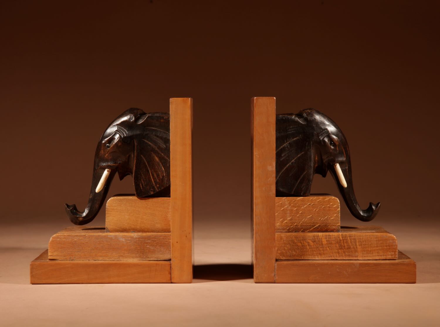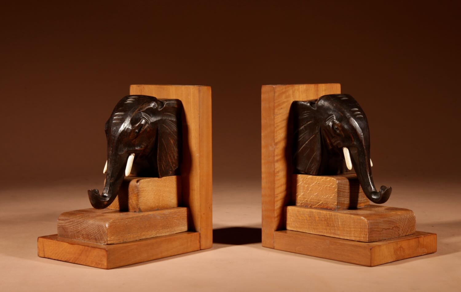 Impressive Black Forest Amusing Pair Of Elephant Carved Wooden Bookends Circa 1900-20.