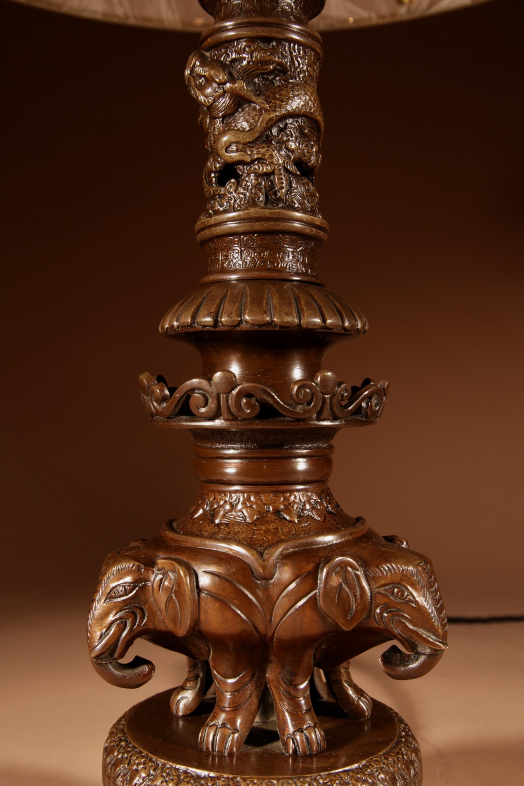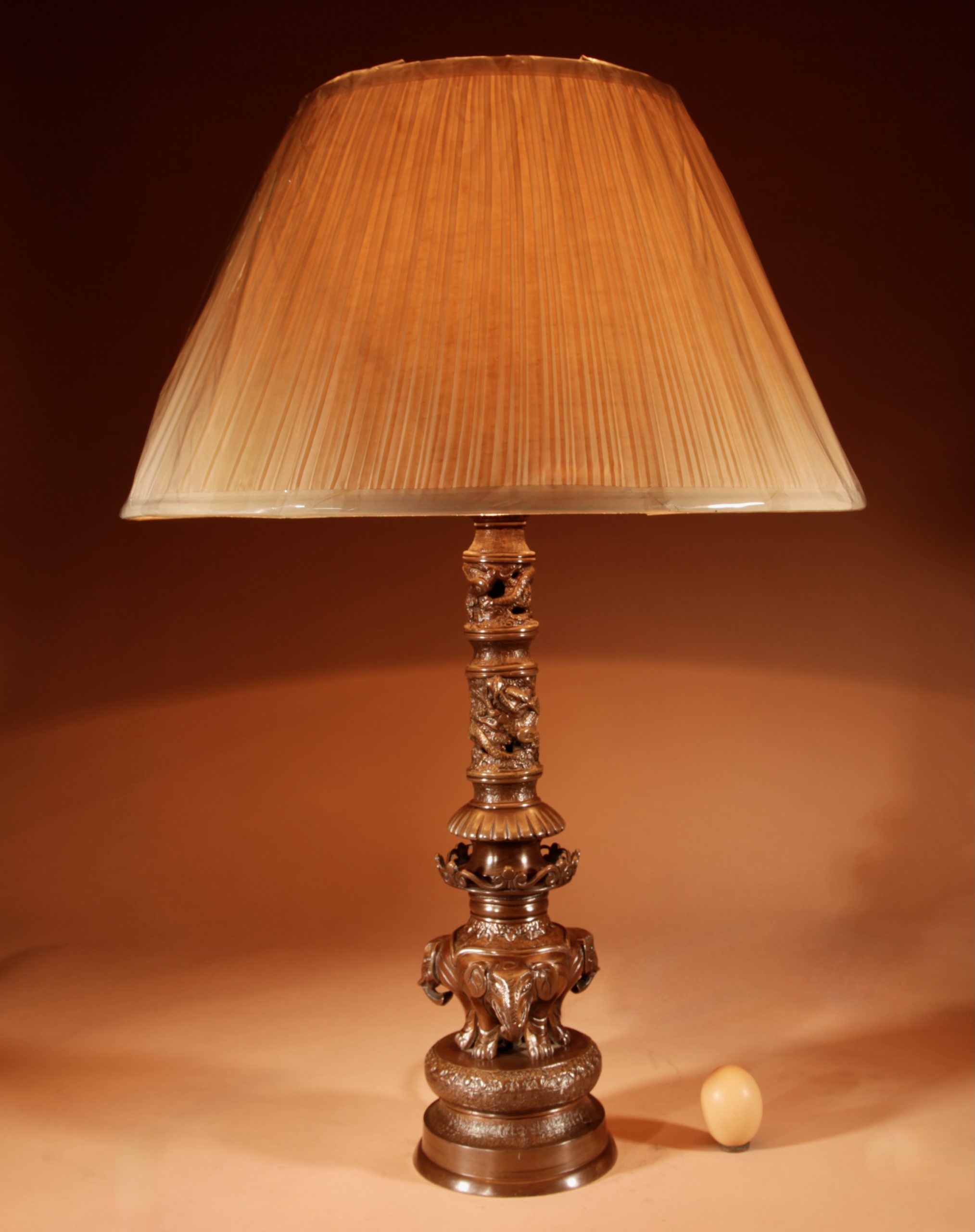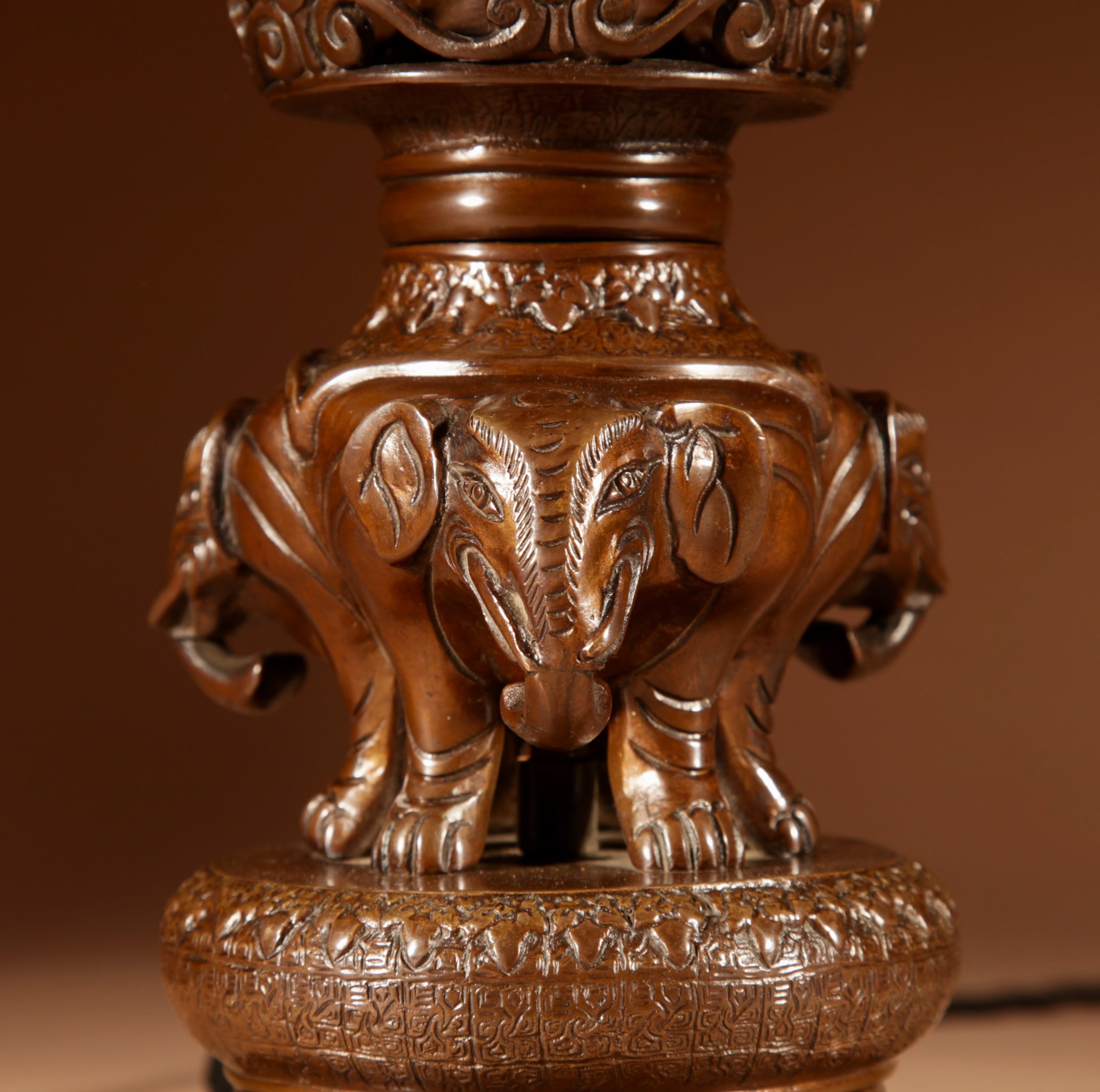 Impressive Original Bronze Japanese Elephant Table Lamp, Meiji Period 1868-1912