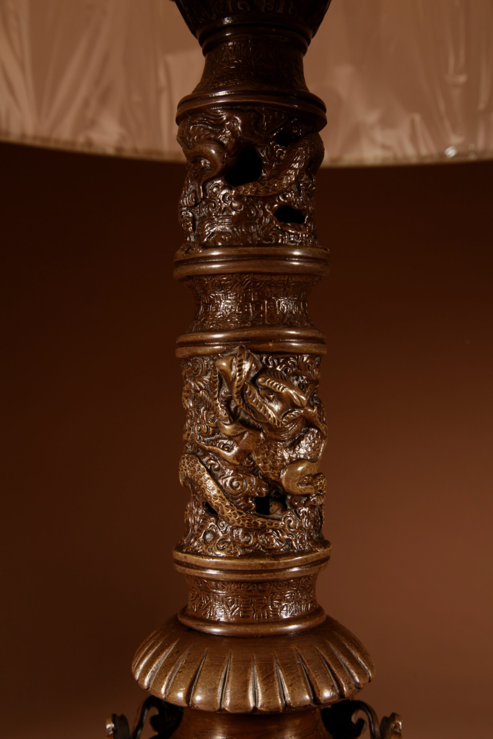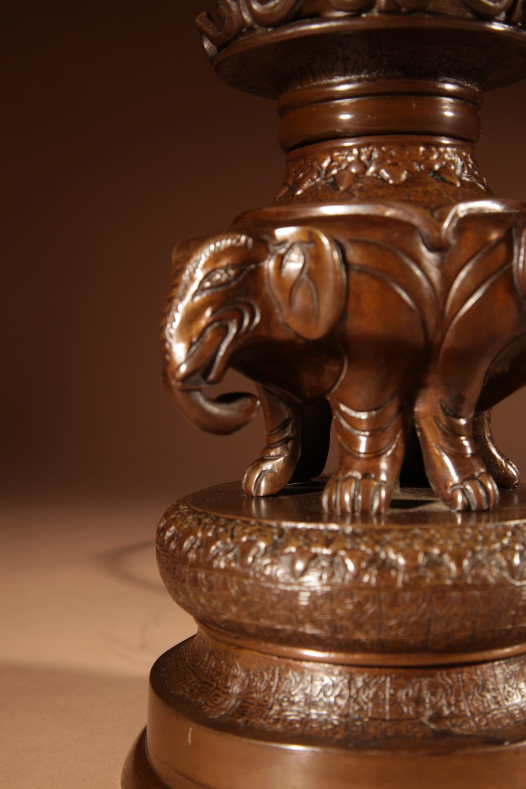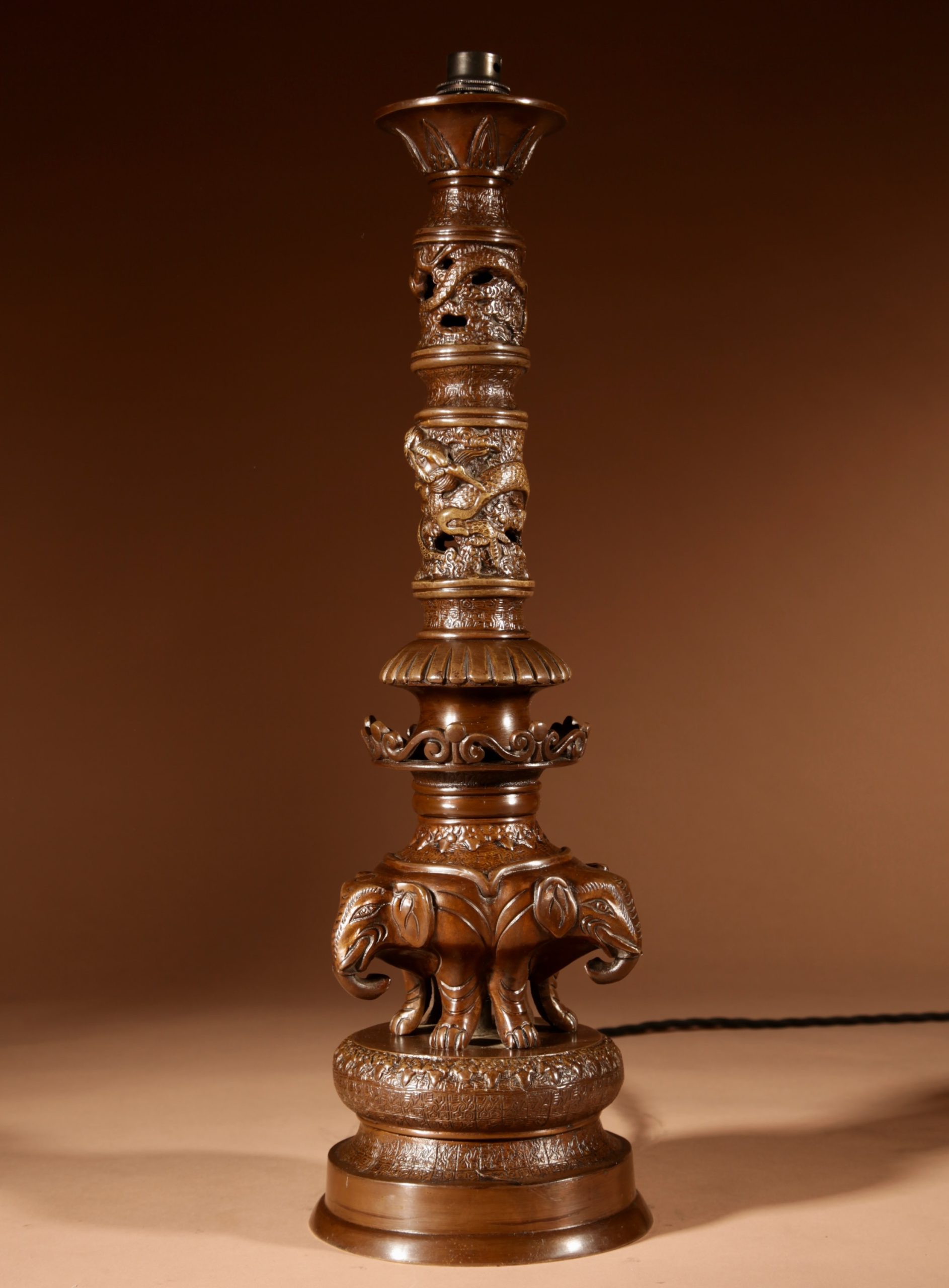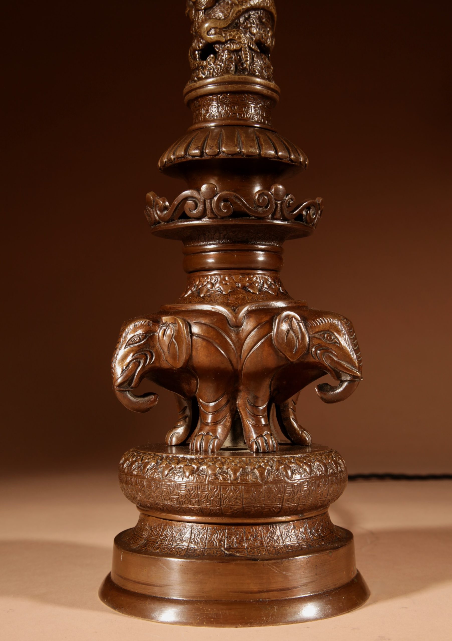Impressive Original Bronze Japanese Elephant Table Lamp, Meiji Period 1868-1912