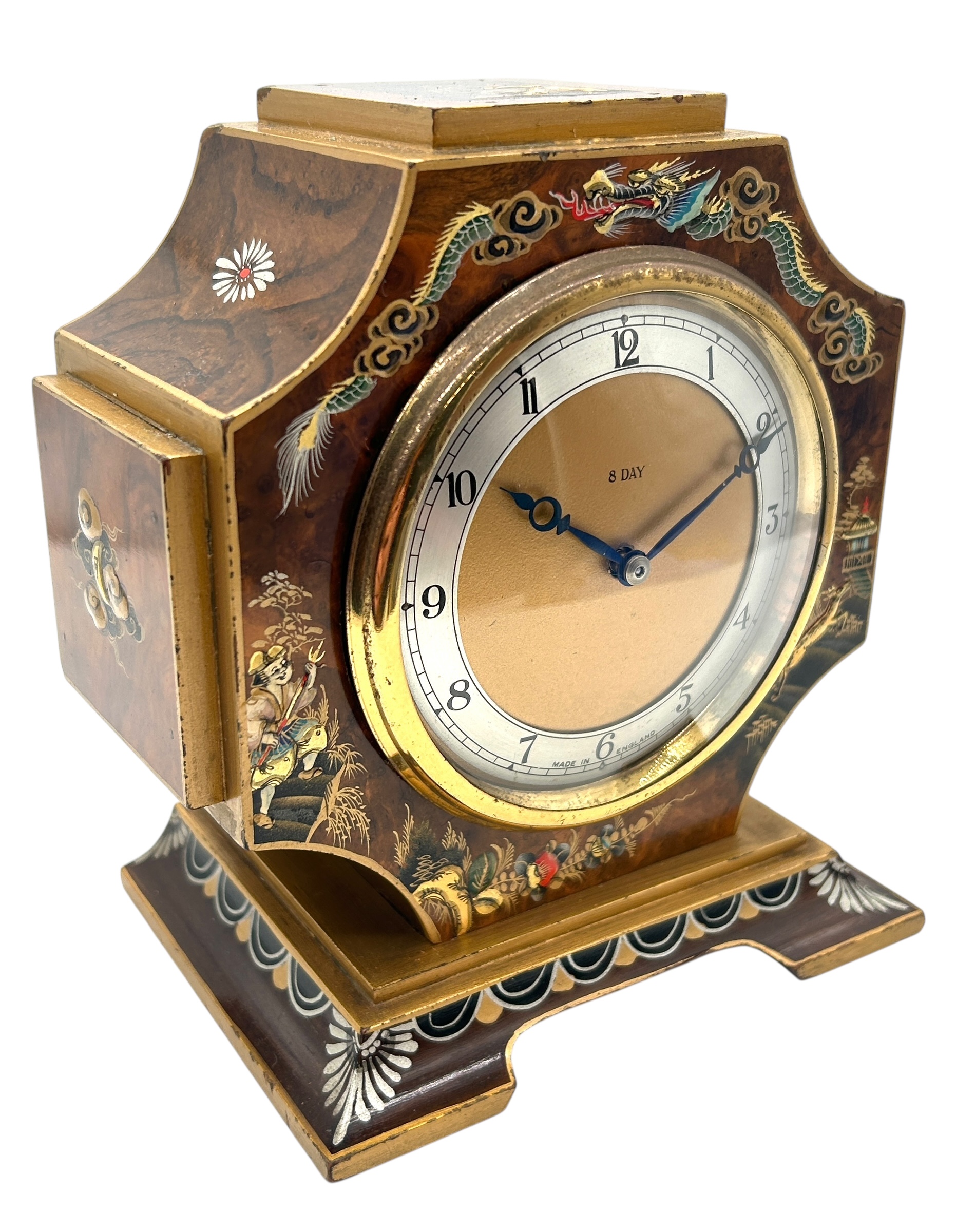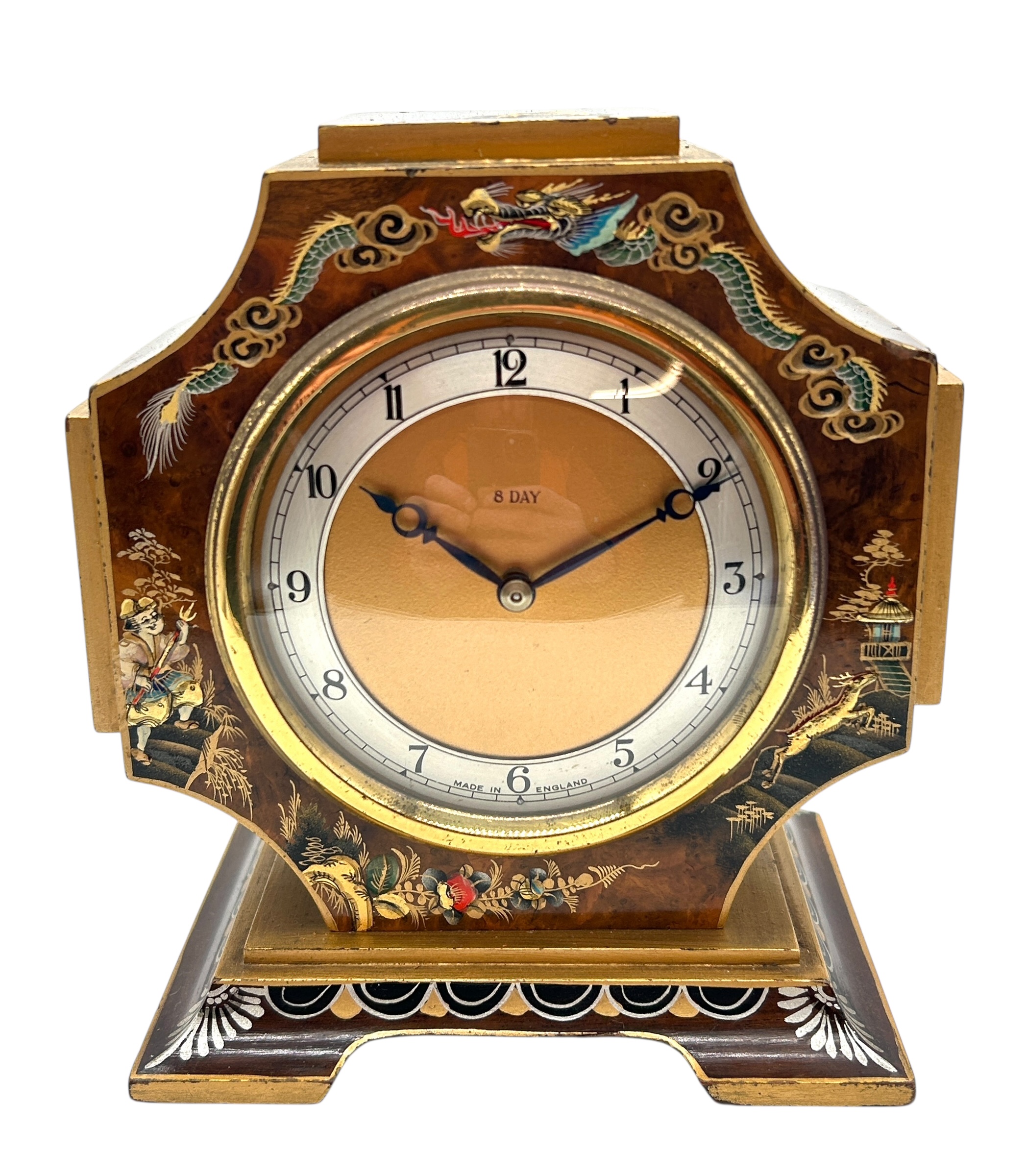 Interesting Chinoiserie Mantel Clock – Gilt Gold Decoration 8-day Clock