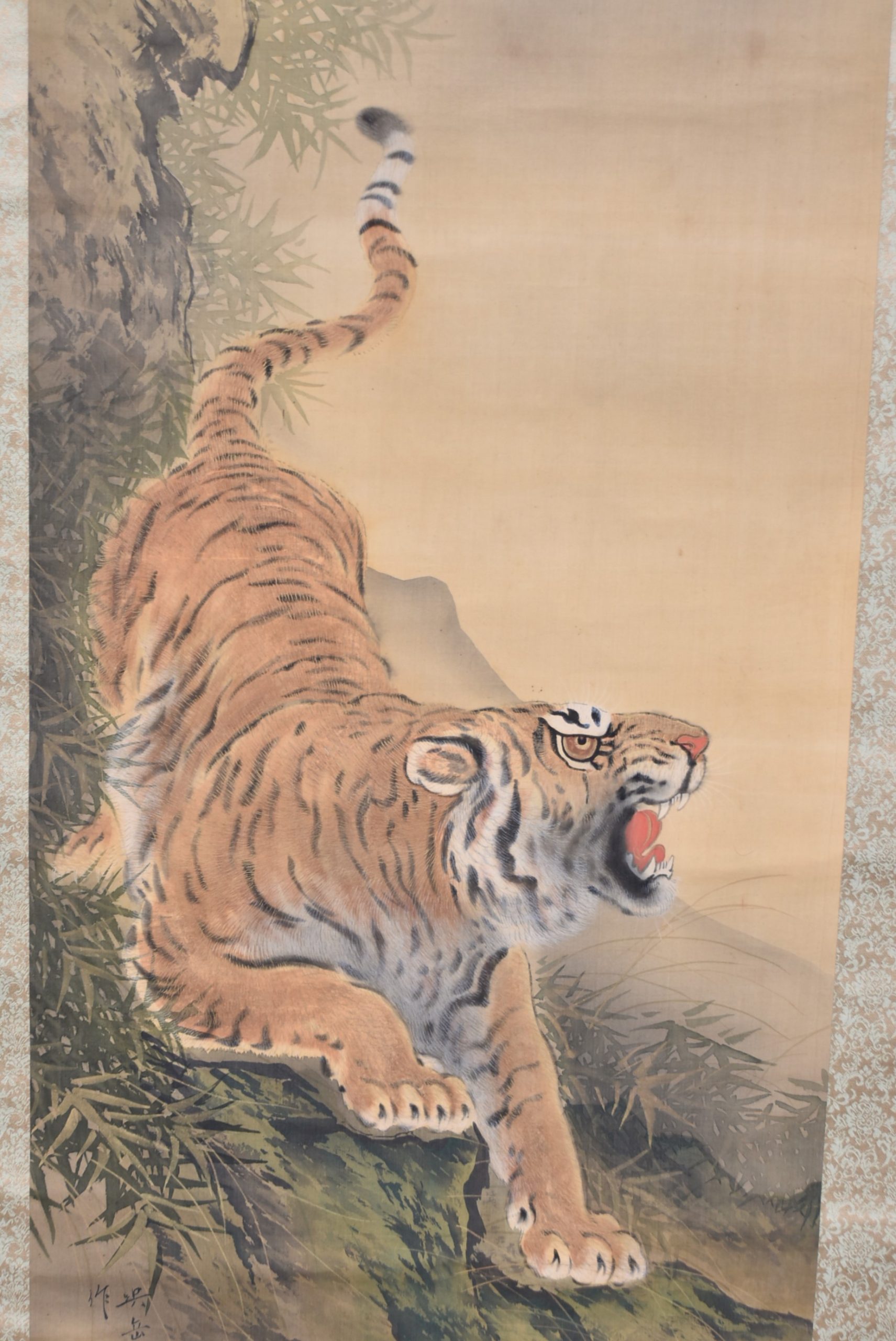 Japanese Silk Scroll – Tiger In Moonlit Landscape By Sakuba SAI3869