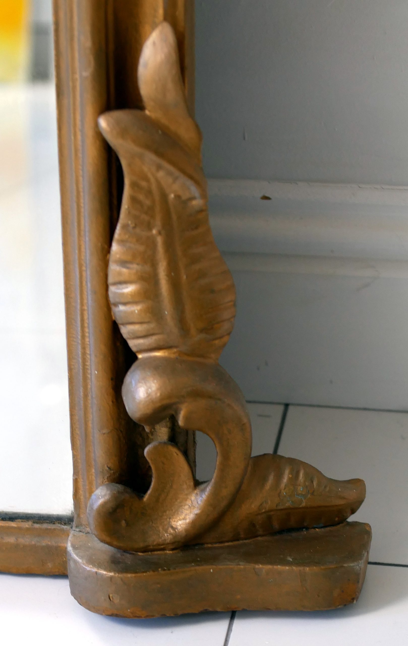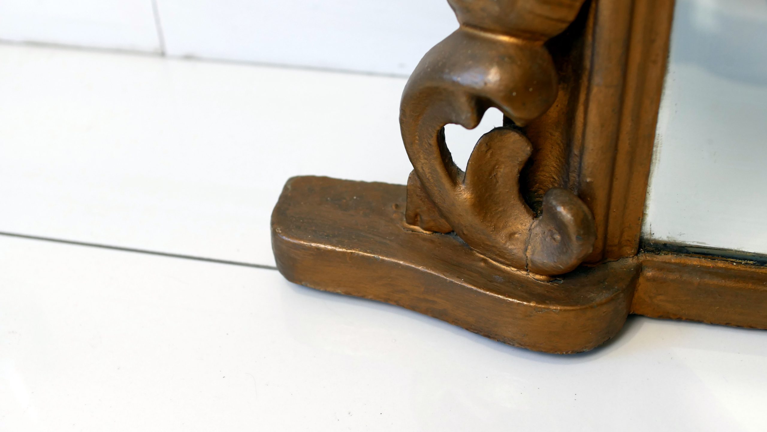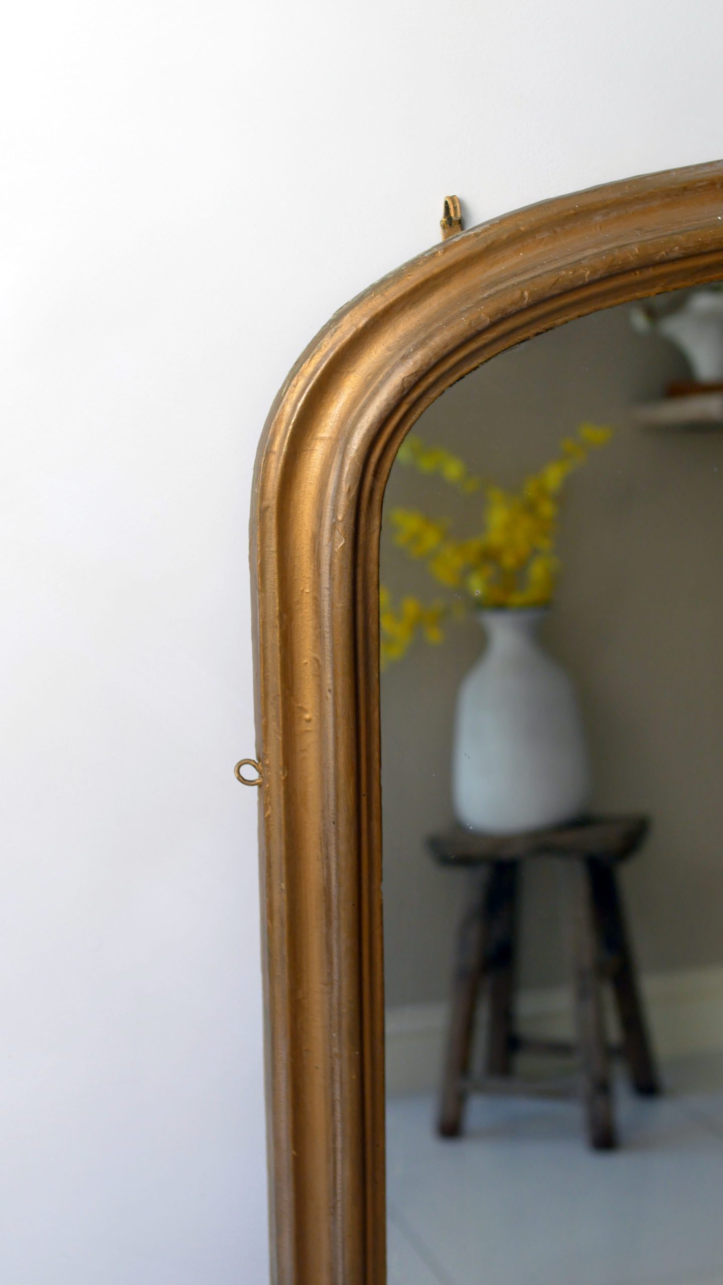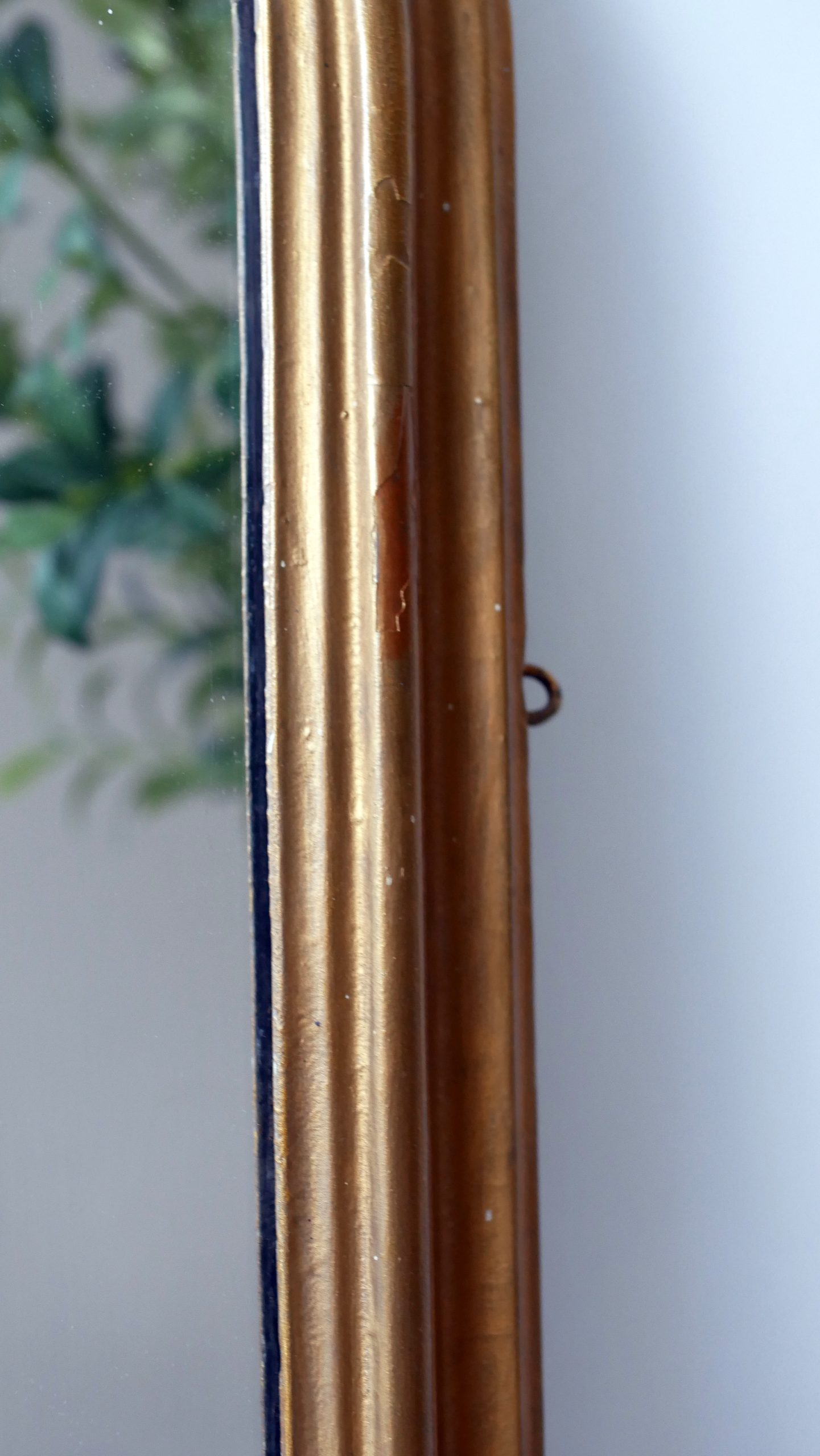 Reflections of Grandeur: A Substantial 19th Century Victorian Gilt Overmantel Mirror – Capture the light and the legacy of the Victorian era with this commanding Gilt Overmantel Mirror. This is a piece of significant scale, designed to act as the soul of a room—expanding the sense of space while adding a layer of prestigious, old-world warmth.Timeless Victorian SophisticationDating from the mid-to-late 19th century, this mirror features the classic Arched Top (or “Gilt Arch”) silhouette that defined the opulent drawing rooms of the period.Golden Lustre: The frame retains a rich, authentic gilt finish, offering a soft, burnished glow that only time and careful preservation can produce. Elegant Scrollwork Base: The mirror is anchored by beautifully carved acanthus leaf corbels at the base. These intricate flourishes provide a weighted, architectural foundation that transitions seamlessly onto a marble mantel or a grand console.Exceptional Scale: Its substantial height and width make it a transformative element, perfect for bouncing natural light across a room and creating a feeling of lofty, airy grandeur.A Focal Point for the Modern Heirloom Home While historically placed above a fireplace, a mirror of this magnitude offers endless possibilities for contemporary “Quiet Luxury” interiors:The Hallway Anchor: Lean it against a wall in a spacious entryway to create an immediate sense of arrival and depth.The Bedroom Statement: Place it opposite a window to double the view and brighten a suite with golden-hour reflections. The Dressing Room Luxury: Its generous proportions make it a practical yet stunning full-scale mirror for a high-end dressing area.