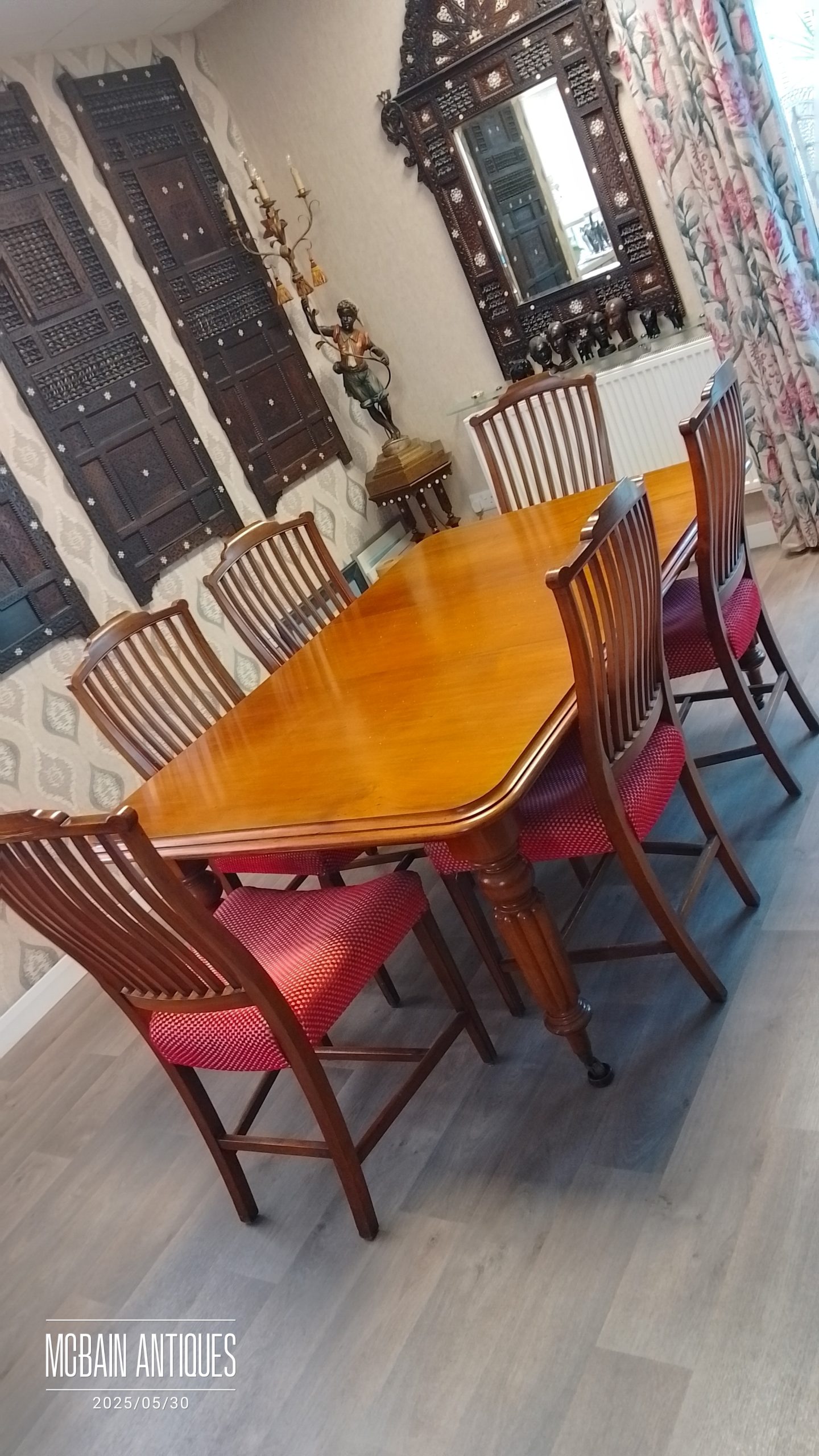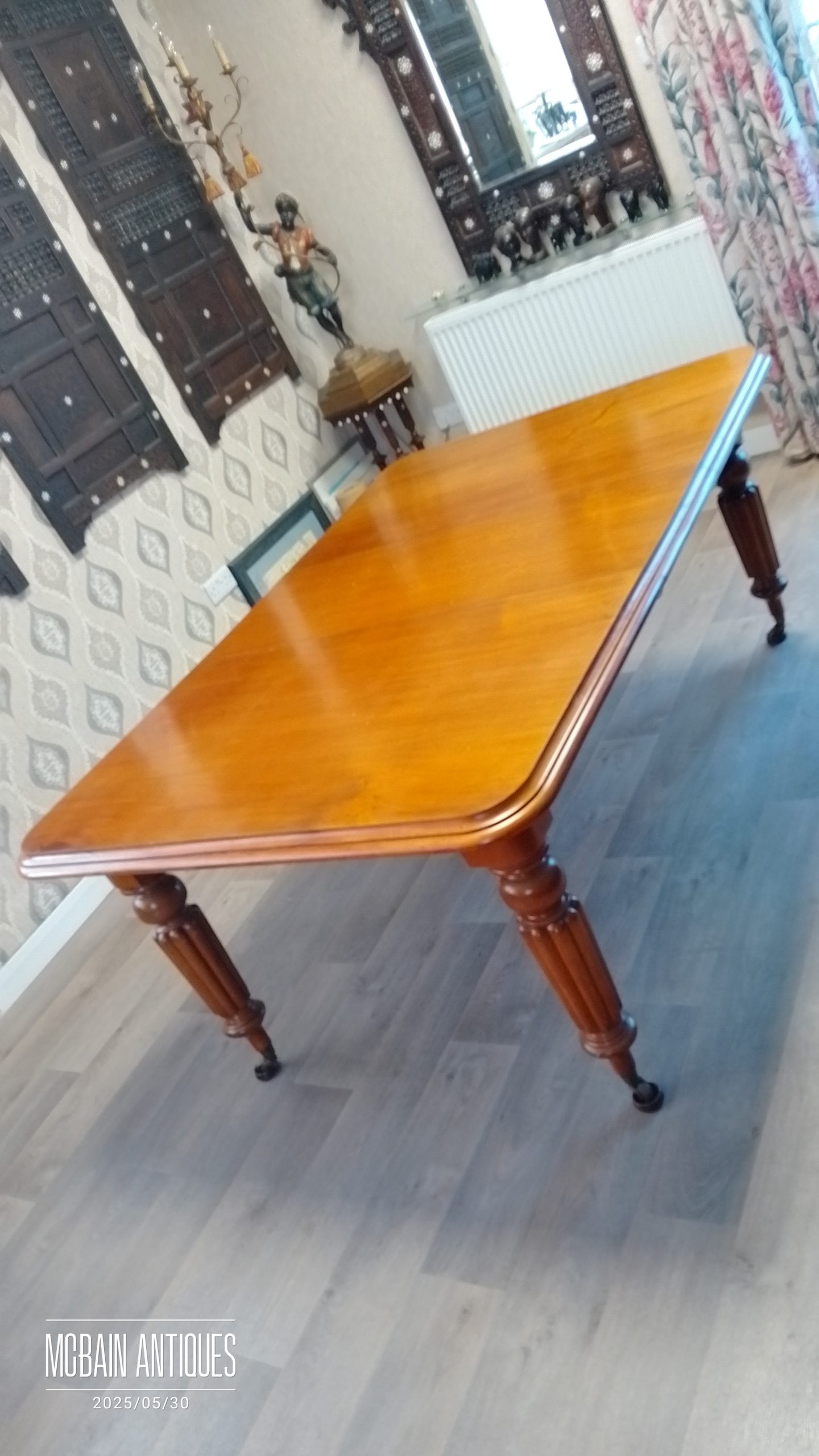 Good large Victorian mahogany extending dining table with three leaves on a fluted leg pull out base.