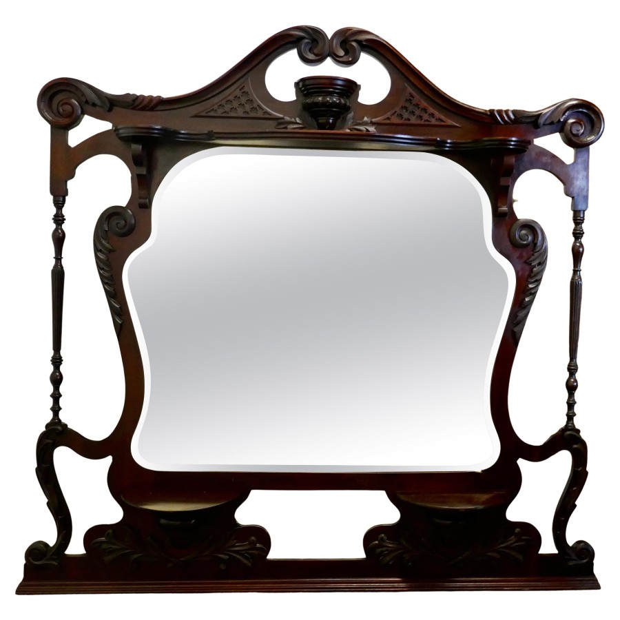 Large Chinese Chippendale Overmantel This is a very attractive large piece, it has 2 mirrors set in a superb carved frame, with shelves, columns and decorative cut outs The Mirror is in good attractive condition and decorated with blind fretwork in the Chinese chippendale style, it is 57” tall, 59” wide and 10” NV179 Manufacture Date : 19th Century Materials : Walnut