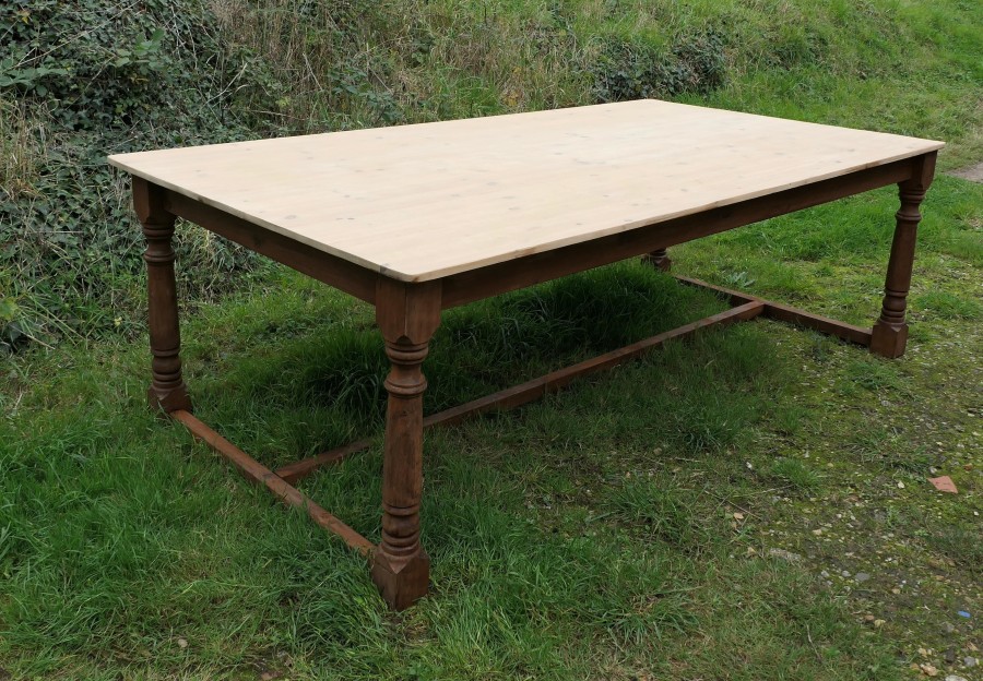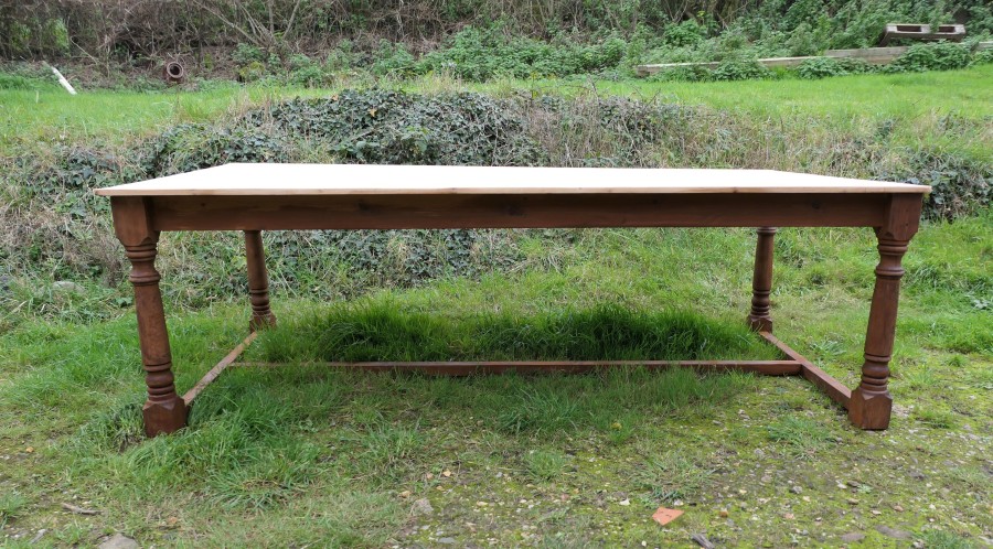 Large Farmhouse Pine Table This is a good looking Pine table, the pine top is very clean with little signs of a previous life. The table is in very good condition, it is sound and does not wobble there are no loose joints or splits and will stand up to no end of future use The table is 48” wide, it is 93” long, it is 30” high and 26” under knee and will seat up to 14 diners TZX188 Manufacture Date : 1970 Materials : Pine
